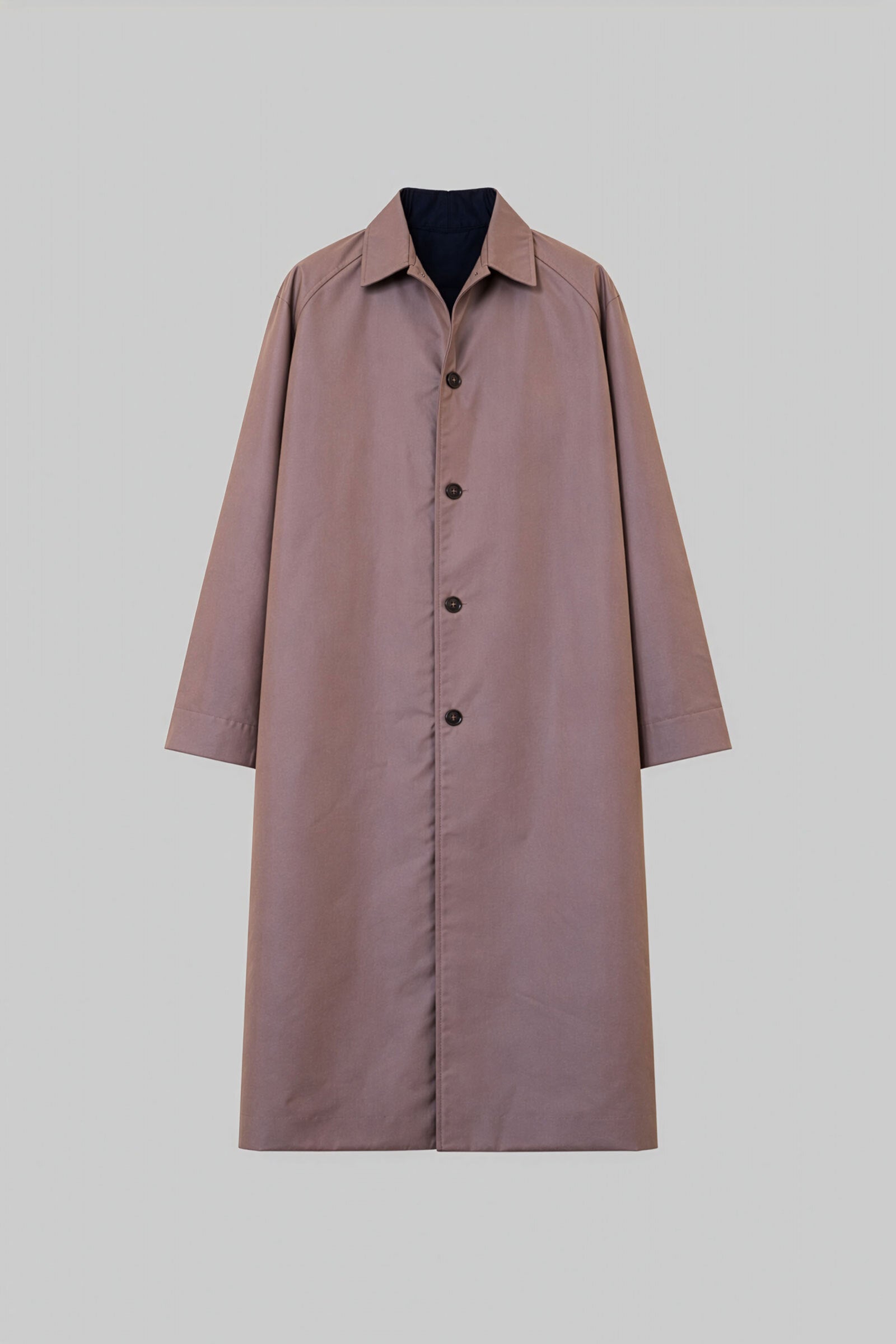 Cut in our iridescent Yuki Cotton, The Yuki Car Coat features a slightly oversized silhouette with a classic pointed collar, horn button front closure, back slit detail, and side pockets. Throw it on monochromatically with The Barb Set in Malbec.