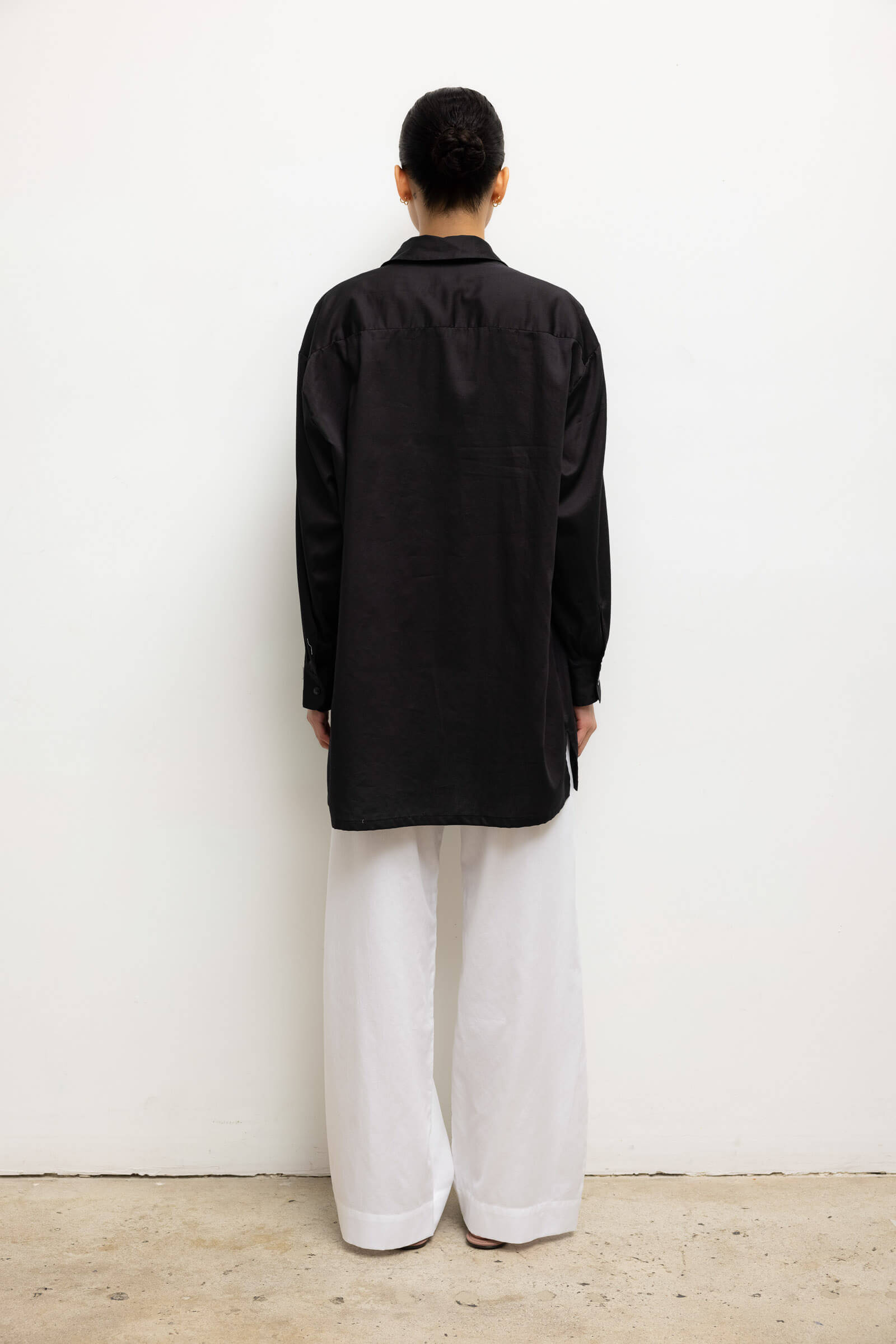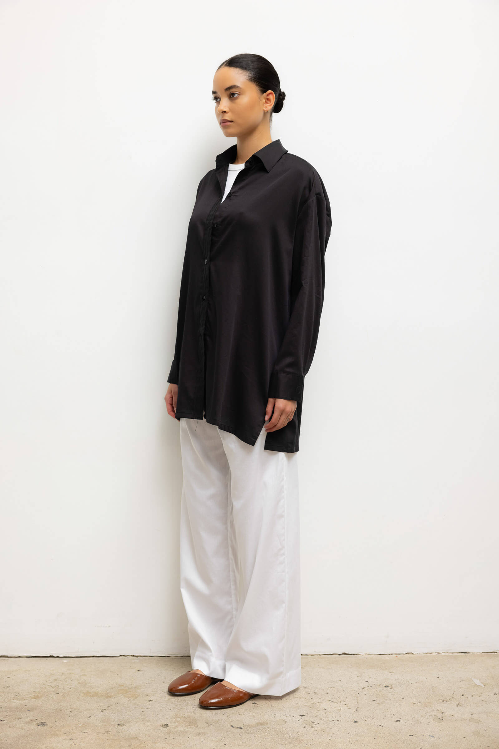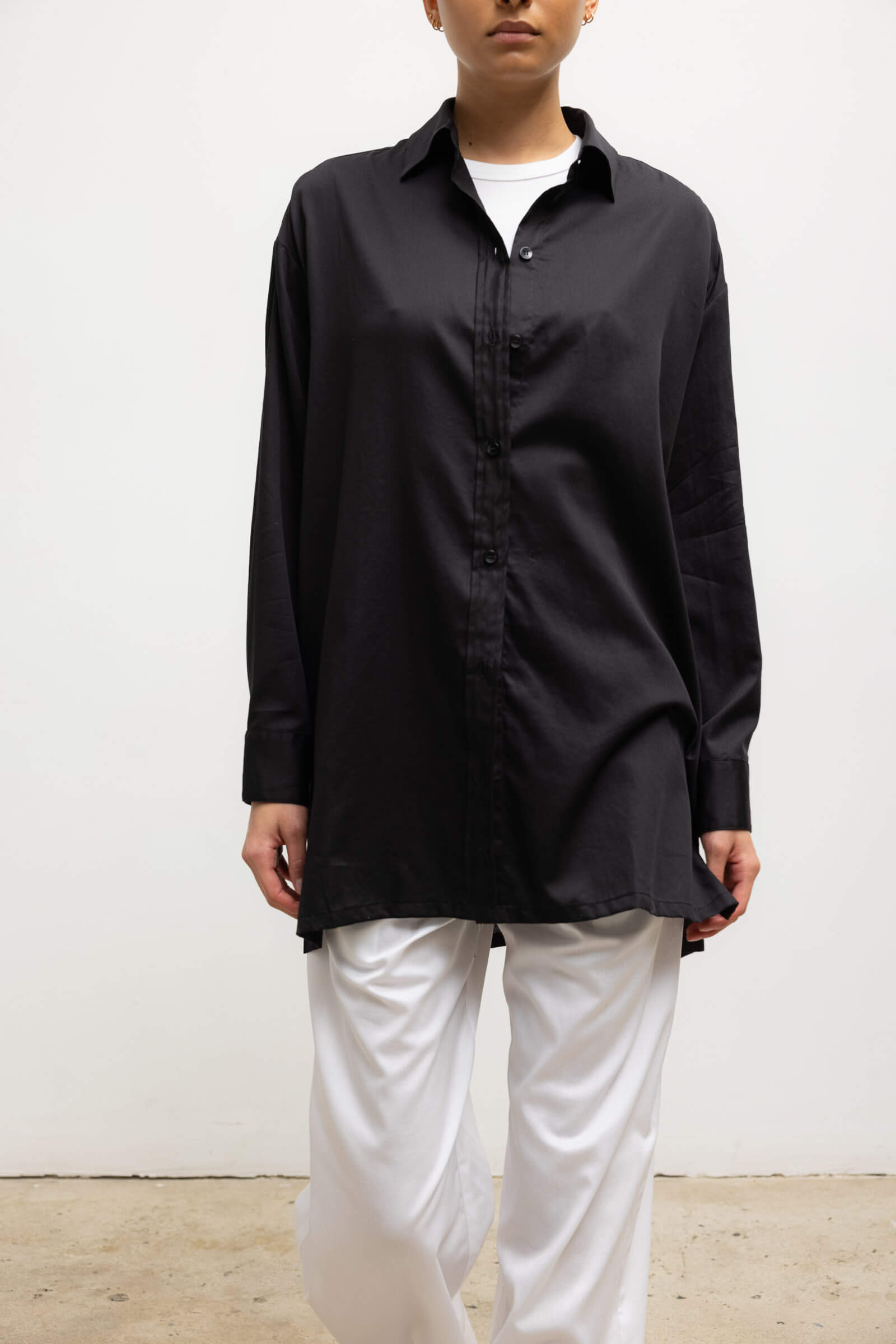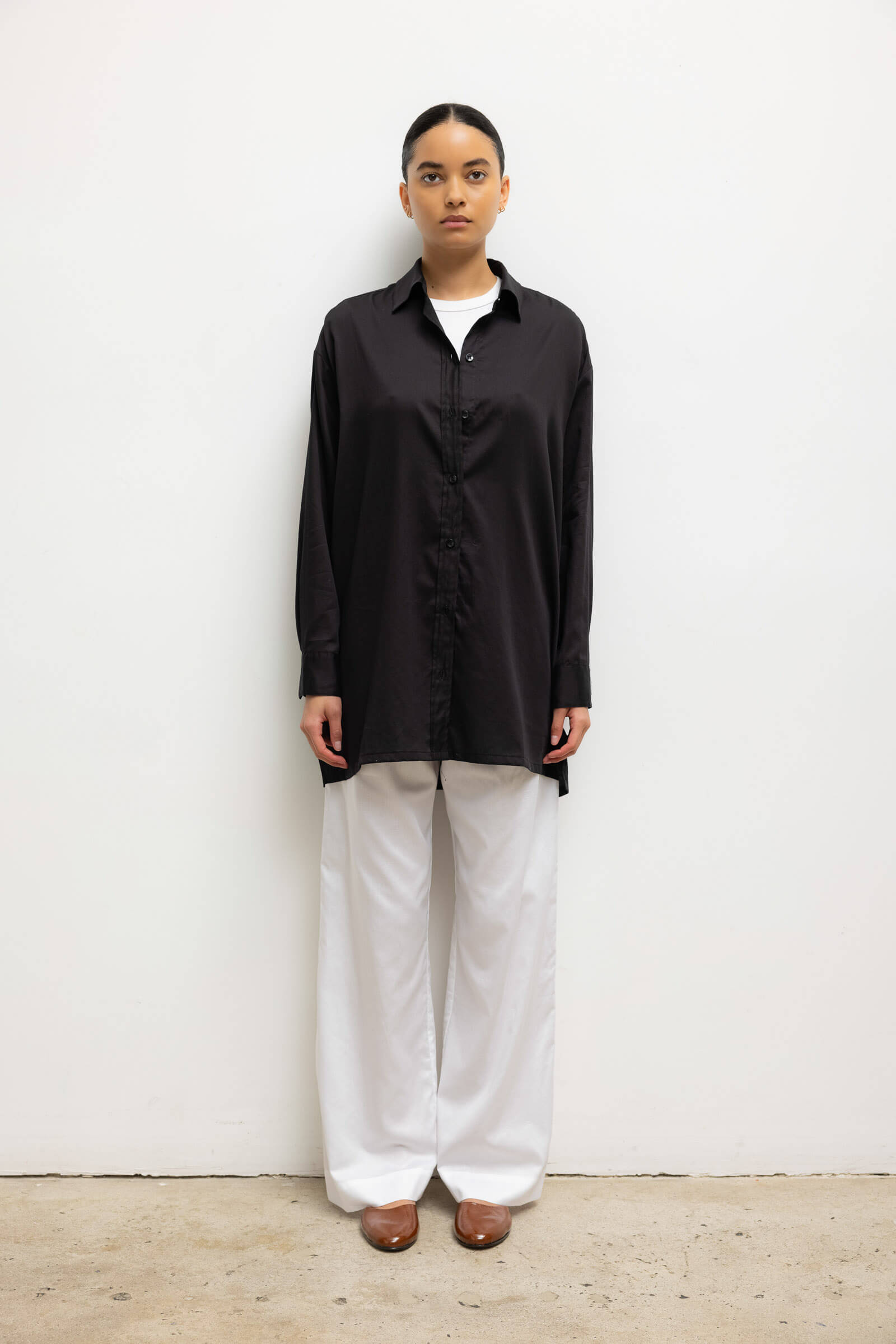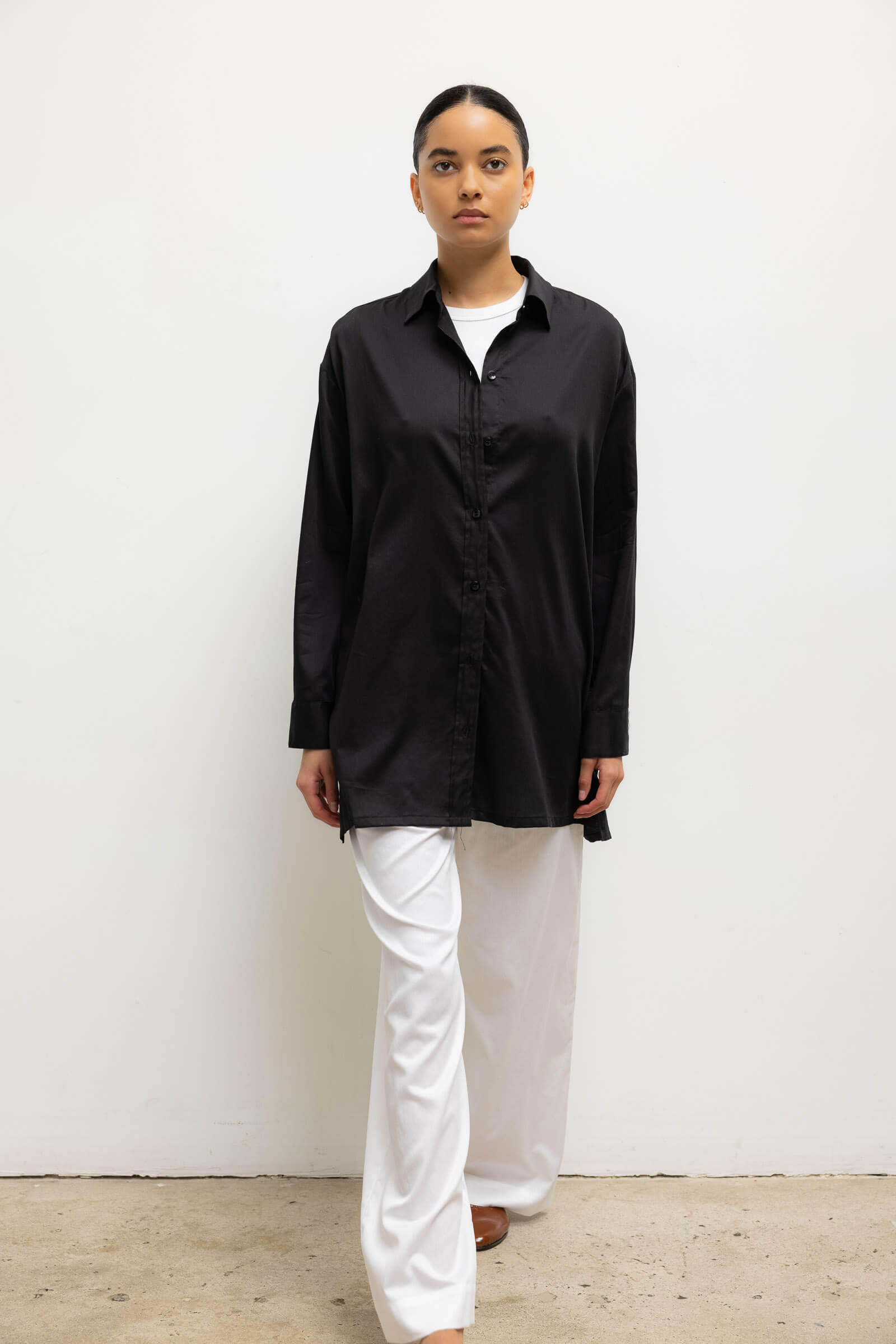 Crafted in our crisp and light Yoko Cotton, the Yoko Oversized Button Down is an oversized silhouette with drop shoulders, an exposed button placket, and a slightly elongated length.