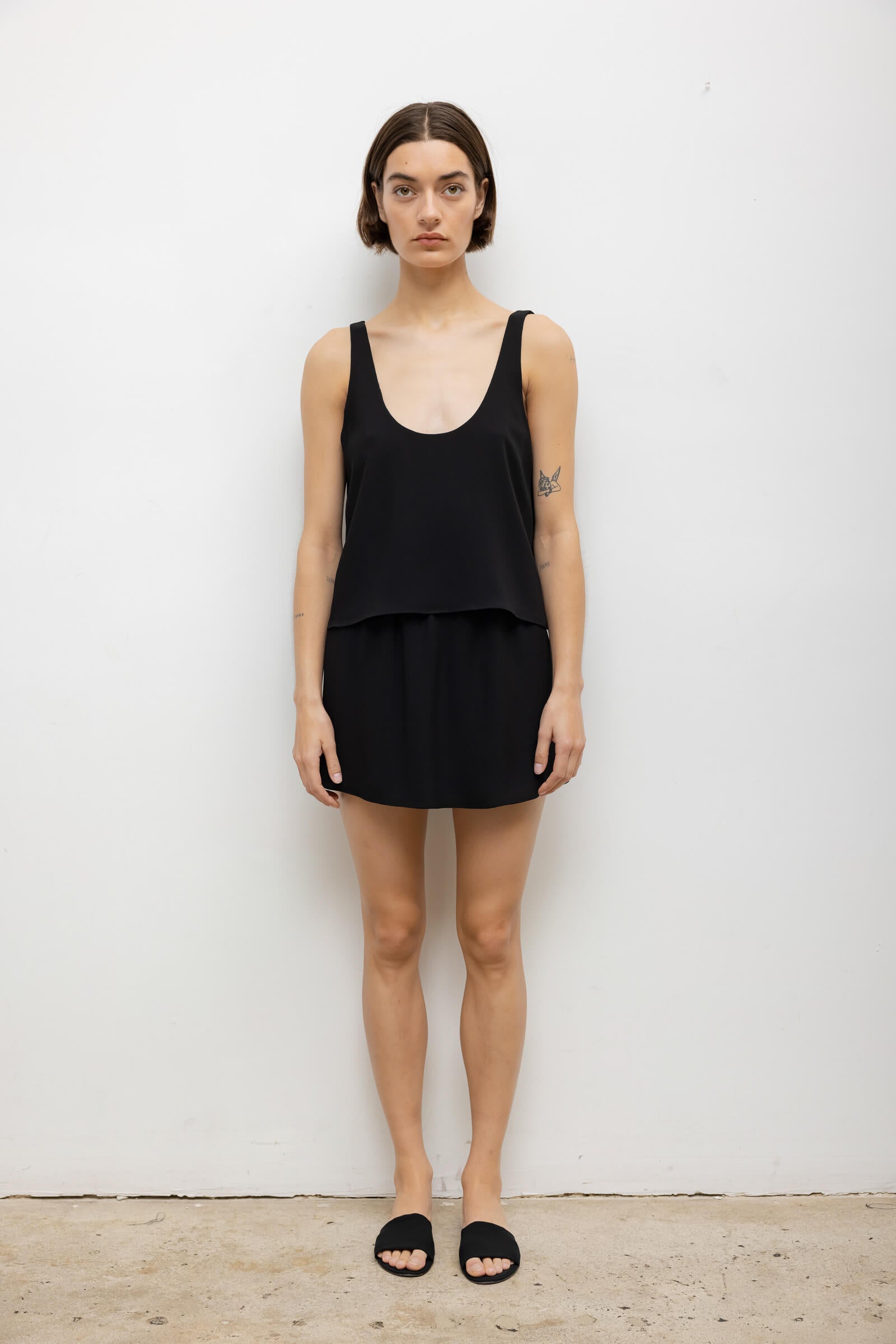 Cut in our Japanese-crafted Ari Light Woven Crepe, The Ari Mini Skirt features a softly gathered elastic waistband and a cropped, slightly A-line silhouette. Make it a matching set with The Ari Scoop Tank.