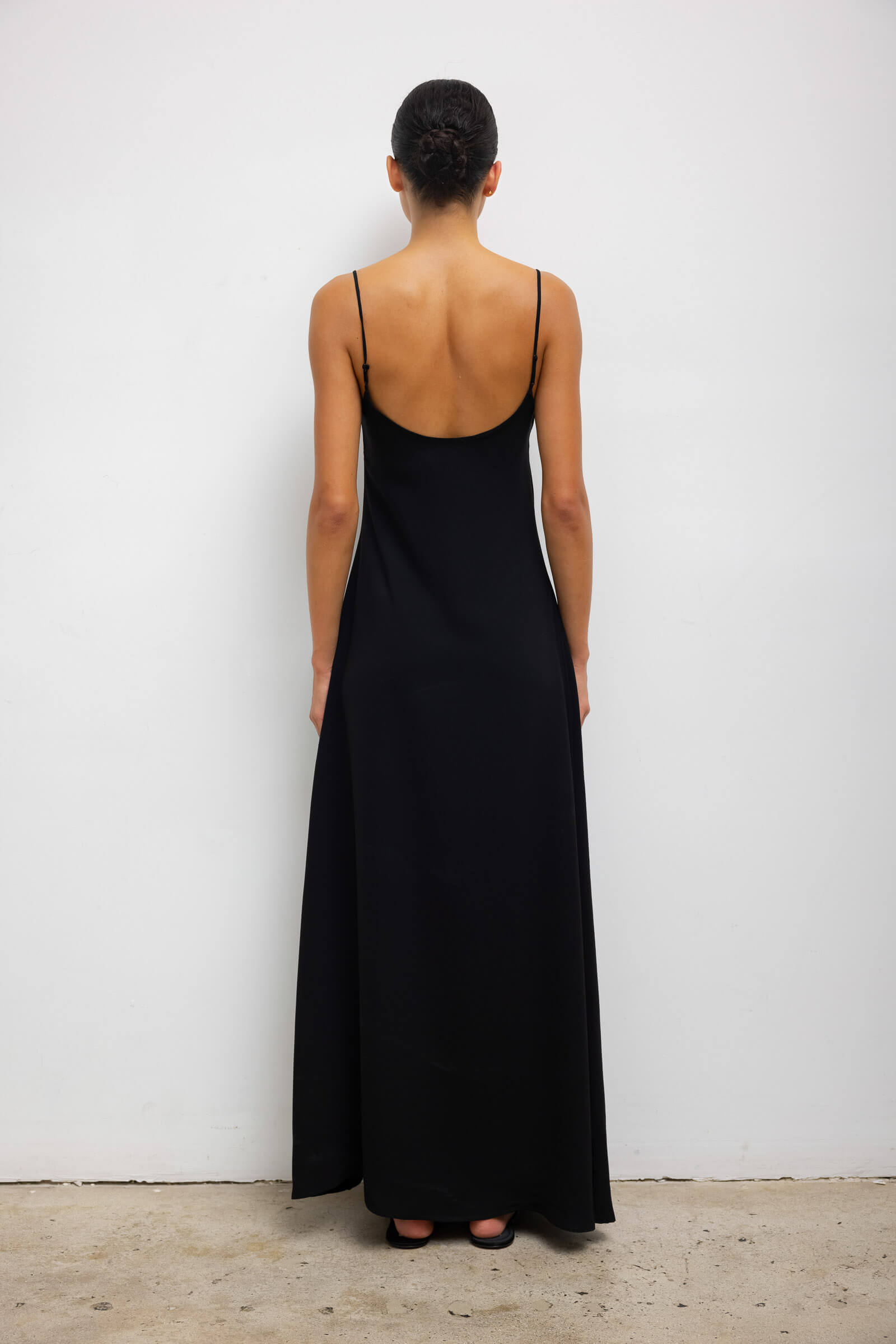 Cut in our Japanese-crafted Ari Light Woven Crepe, The Ari Scoop Neck Maxi Dress is a dramatic full length dress featuring adjustable spaghetti straps and a softly scooped neckline.