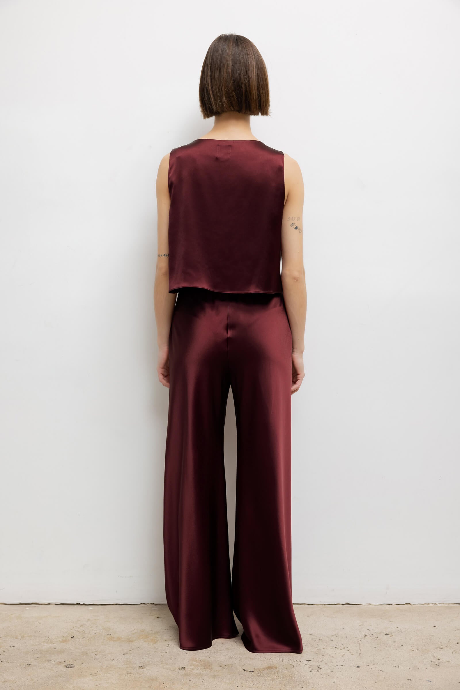Cut in our best-selling Japanese-crafted Barb Satin, The Barb Bias Pant is an easy, pull-on style pant that perfectly drapes to flatter the form. Make it a matching set with any Barb top or pare it down with The Pointelle in monochromatic Dark Berry.
