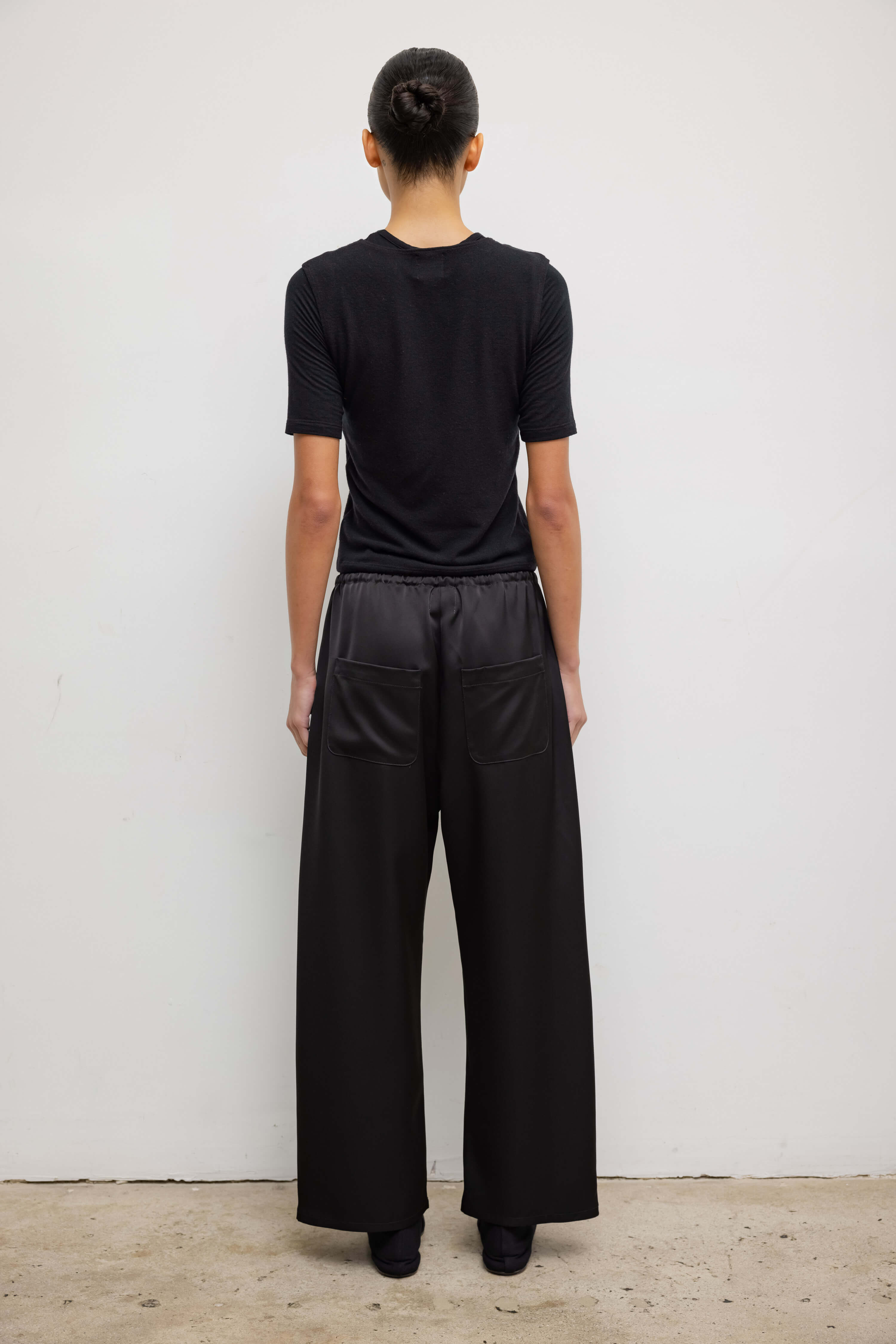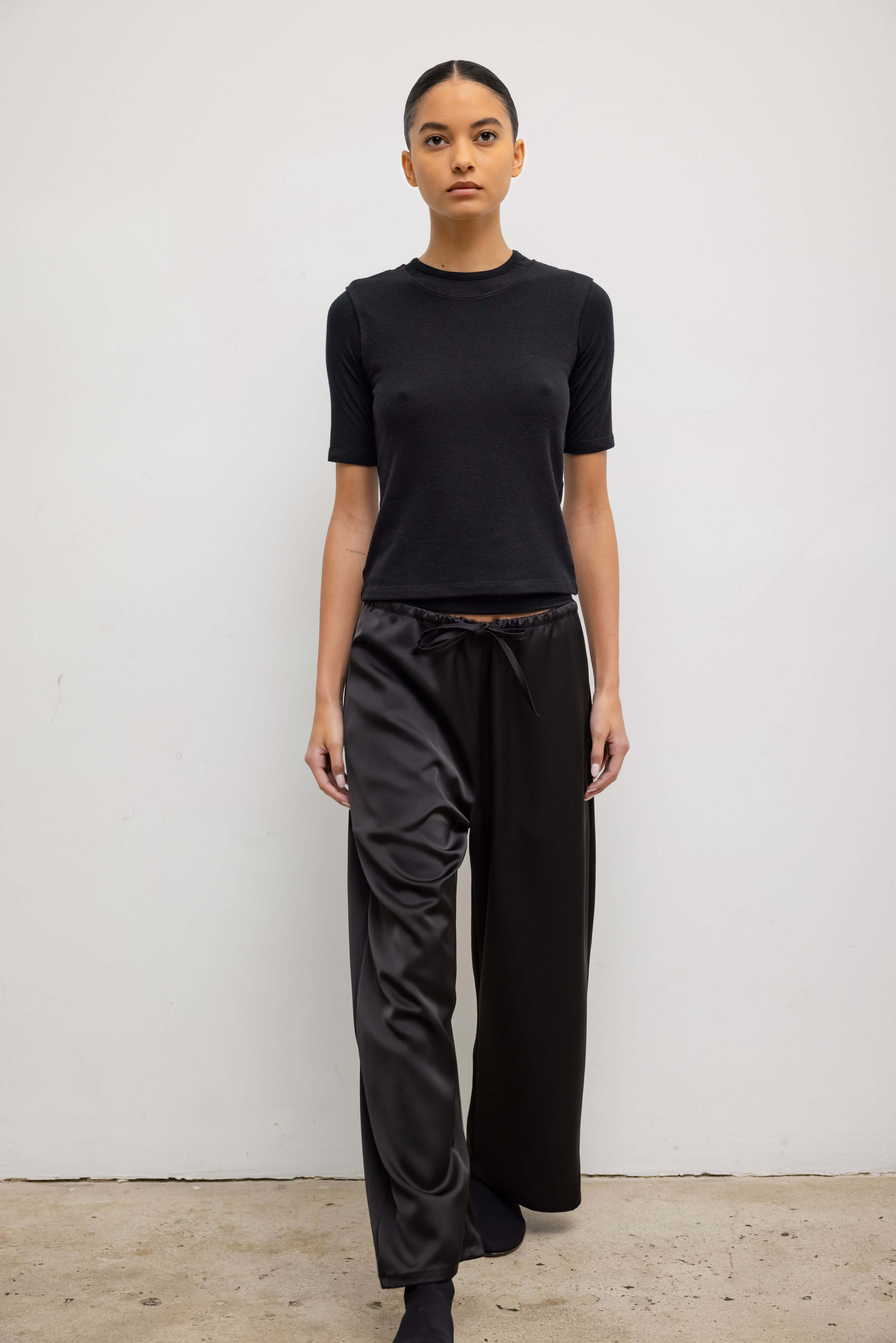 Cut in our Japanese-crafted satin, The Barb Crop Drawstring Pant is the perfect everyday pant silhouette, featuring an adjustable drawstring waistband, side and back pockets, and a relaxed, cropped length.