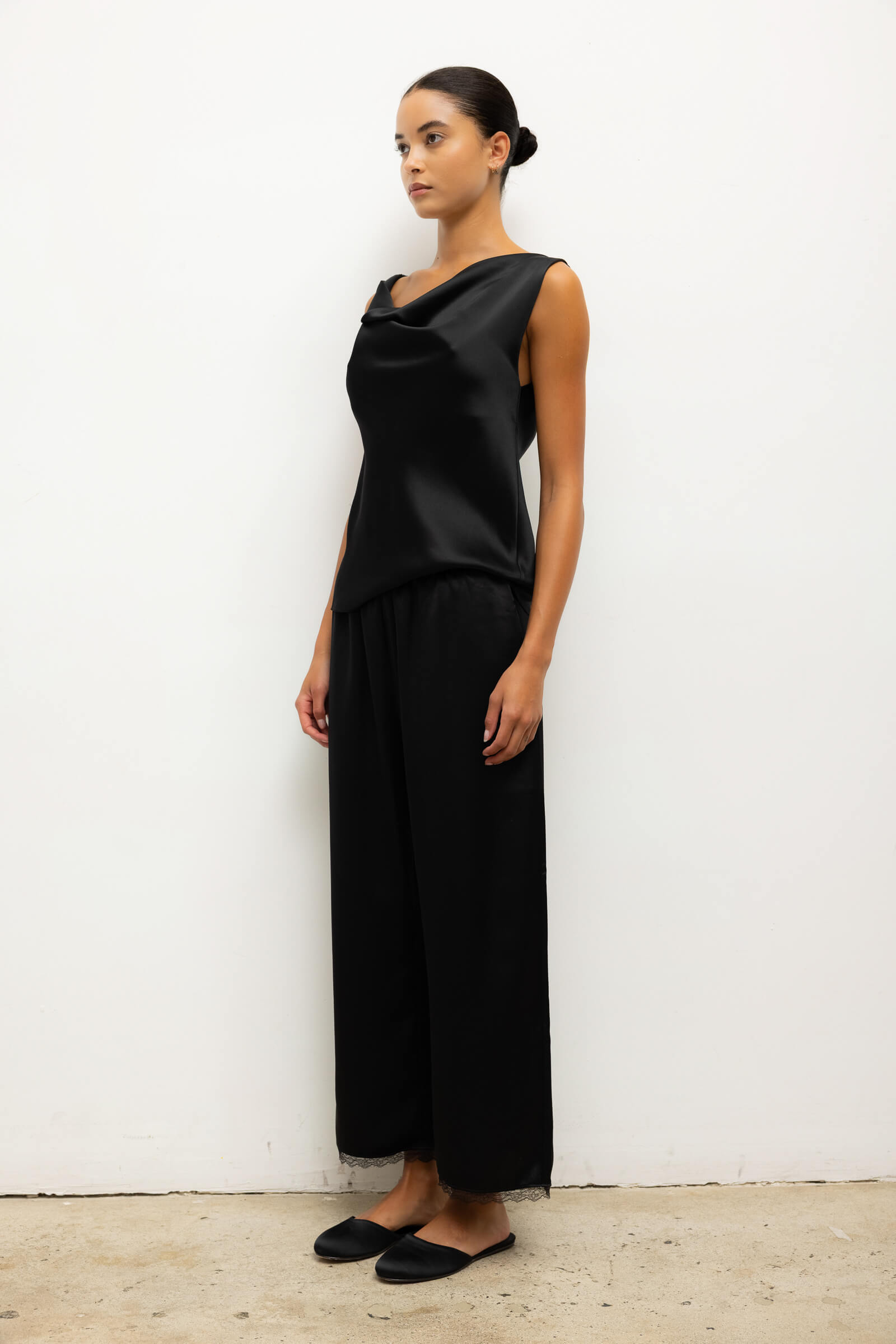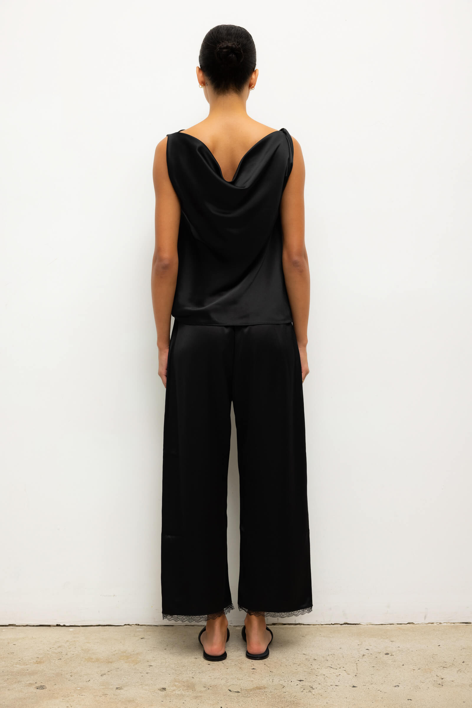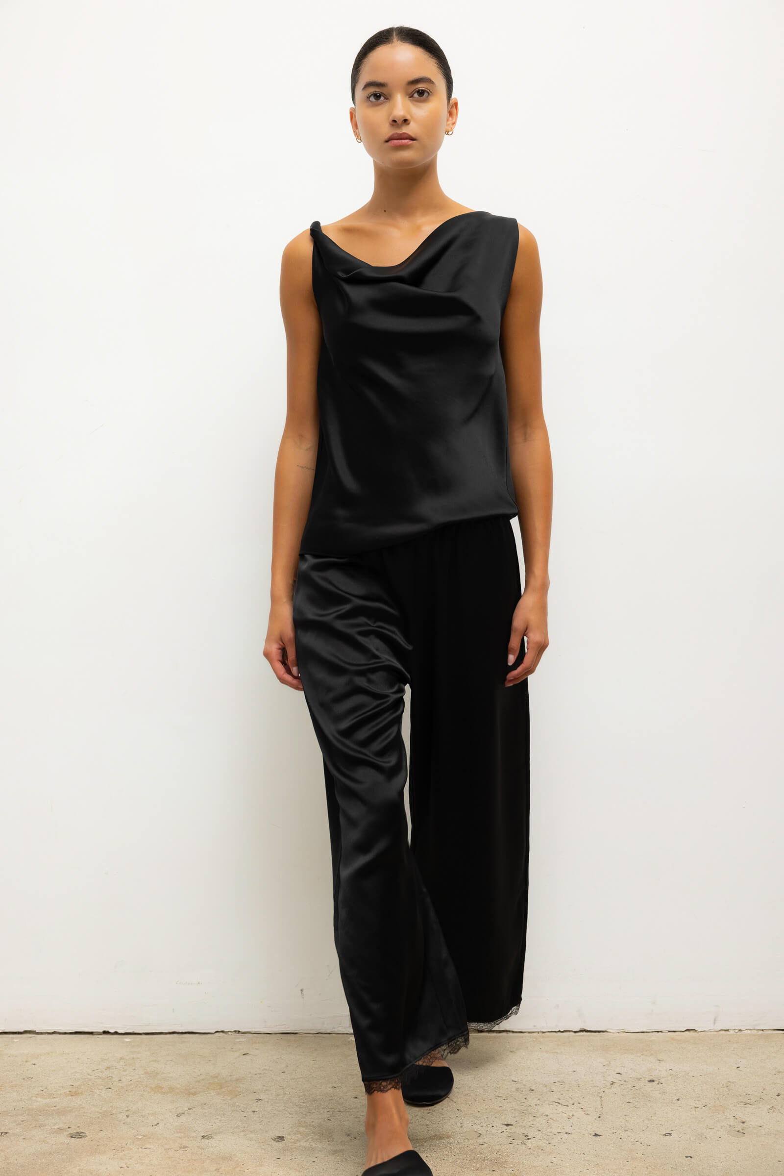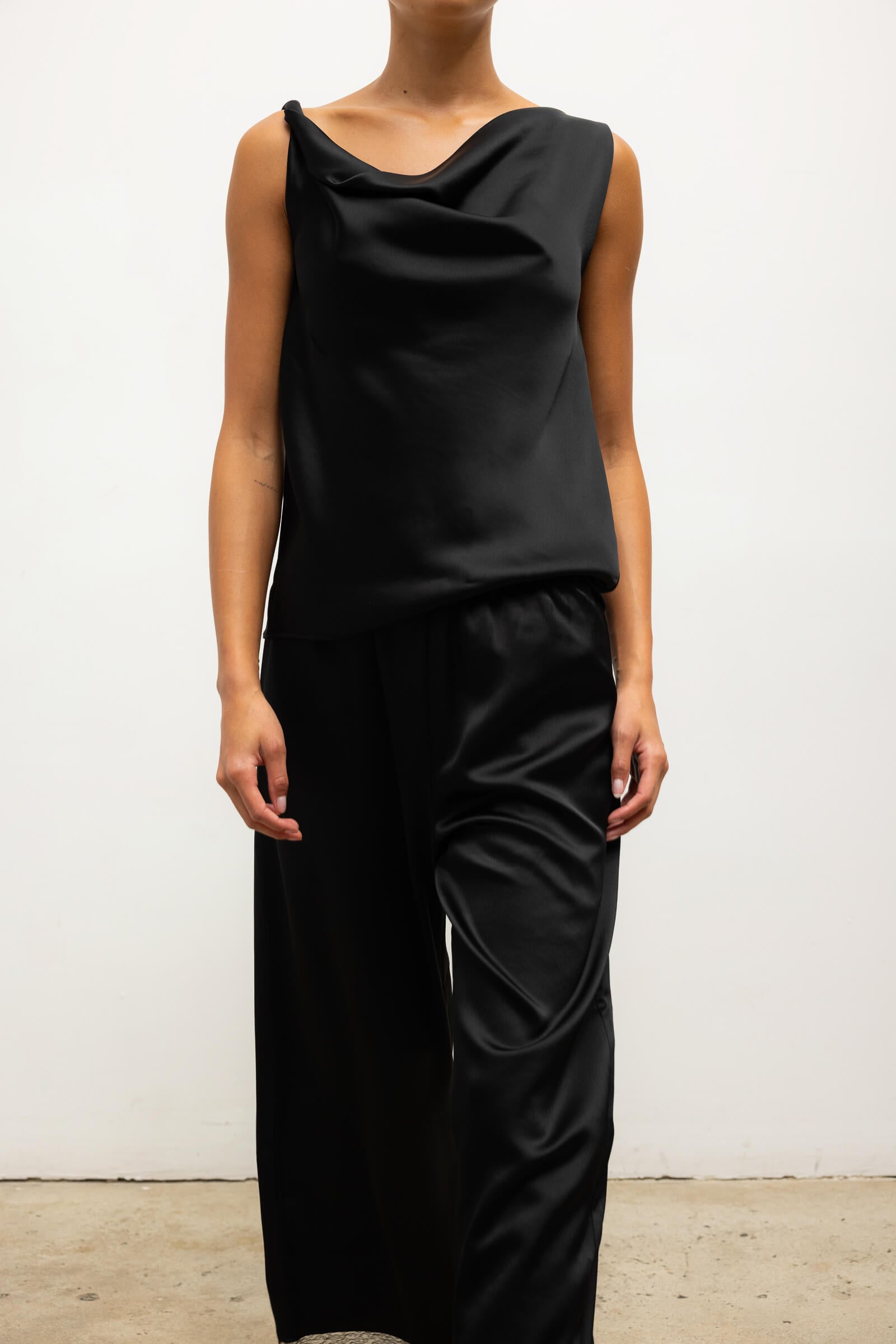 Cut in our best-selling, Japanese-crafted Barb Satin, The Barb Shell is a sleeveless top featuring twisted asymmetrical shoulders that drape perfectly. Make it a matching set with any Barb bottom.