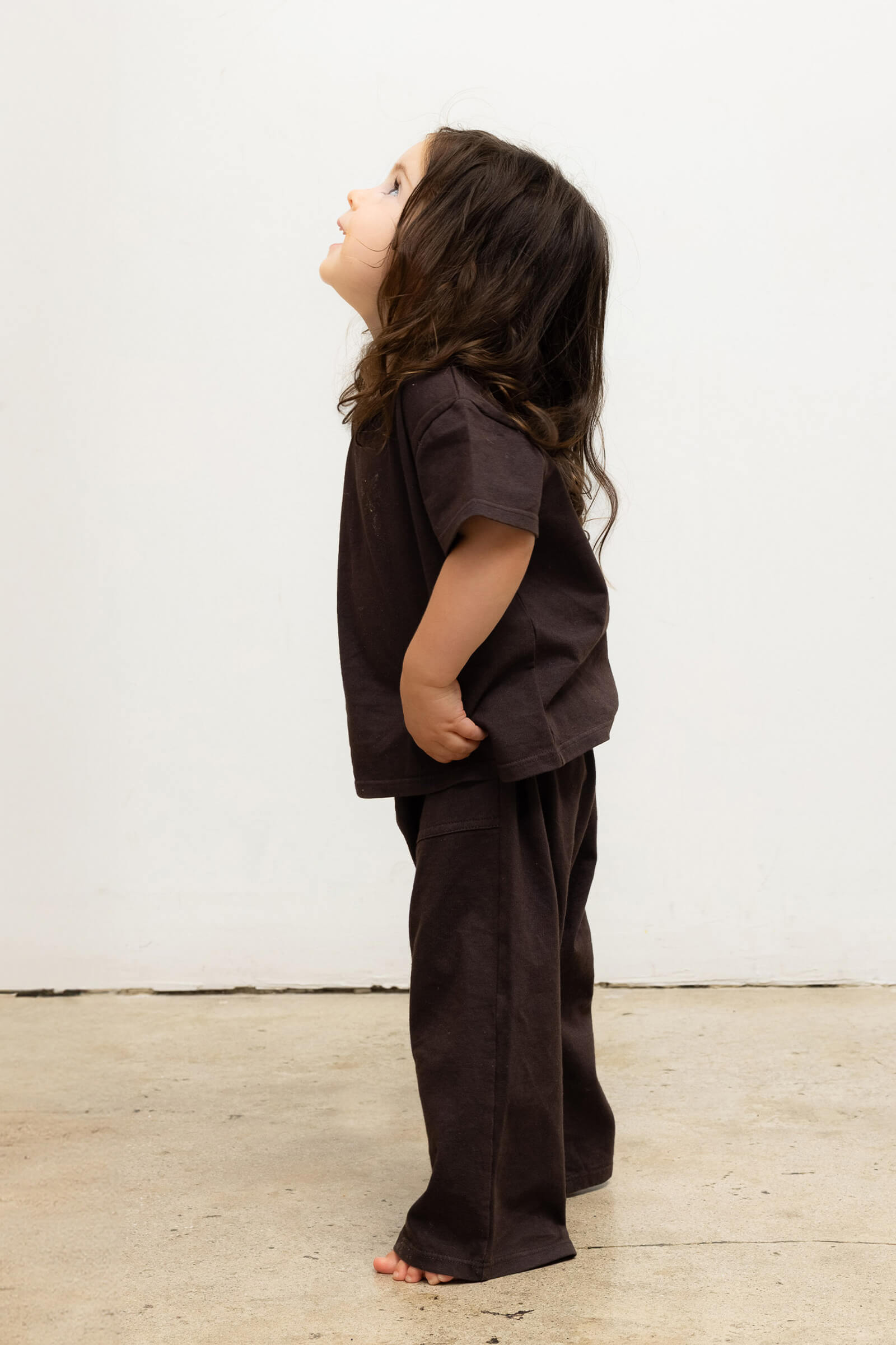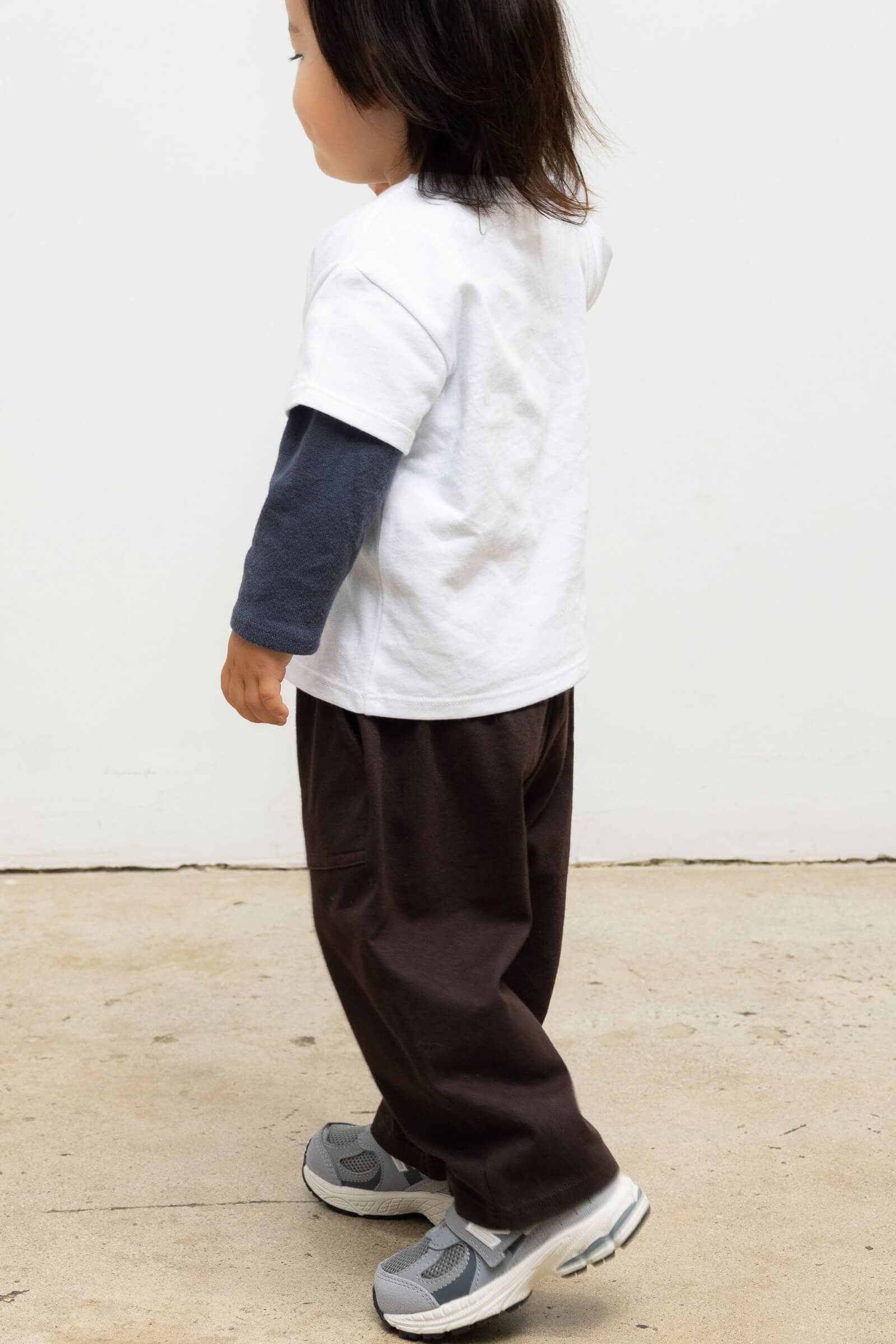 Our beloved Margo Tapered Pocket Pant — shrunken down to match with your mini. These are easy, pull-on style pants with tiny side pockets and a comfortable elastic waistband. Make it a matching set with The Bebe Margo Tee.