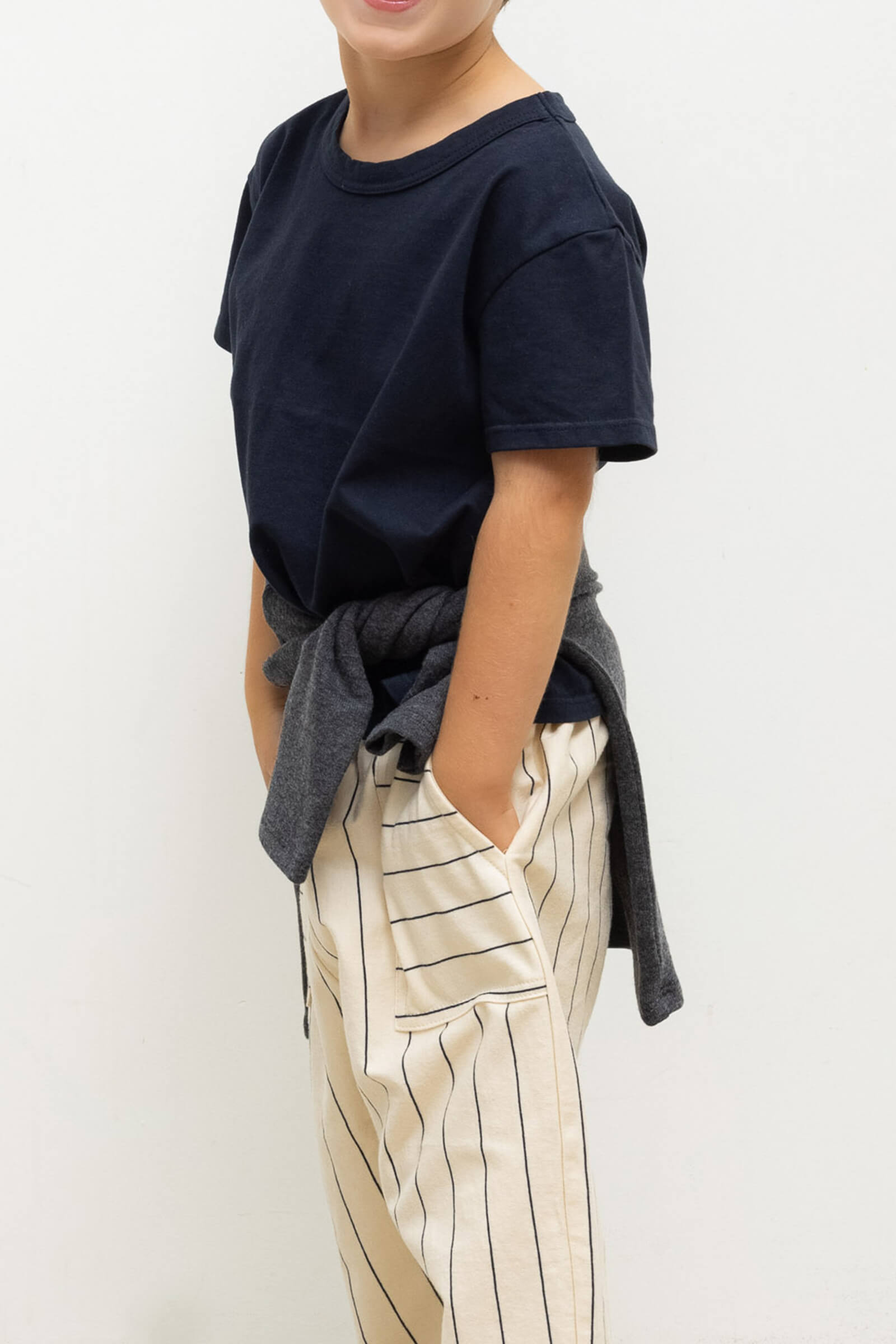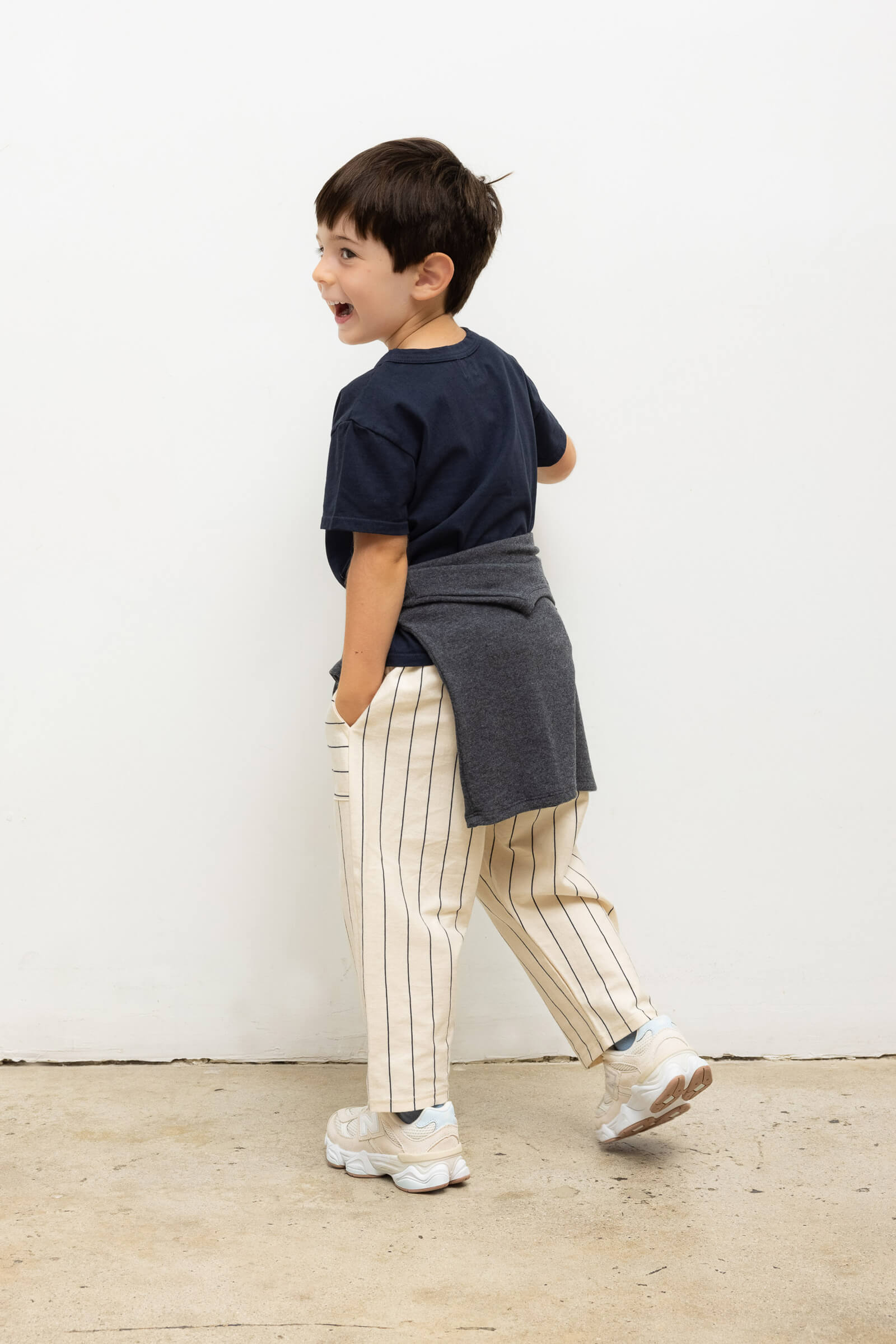 Our beloved Margo Tapered Pocket Pant — shrunken down to match with your mini. These are easy, pull-on style pants with tiny side pockets and a comfortable elastic waistband. Make it a matching set with The Bebe Margo Tee.