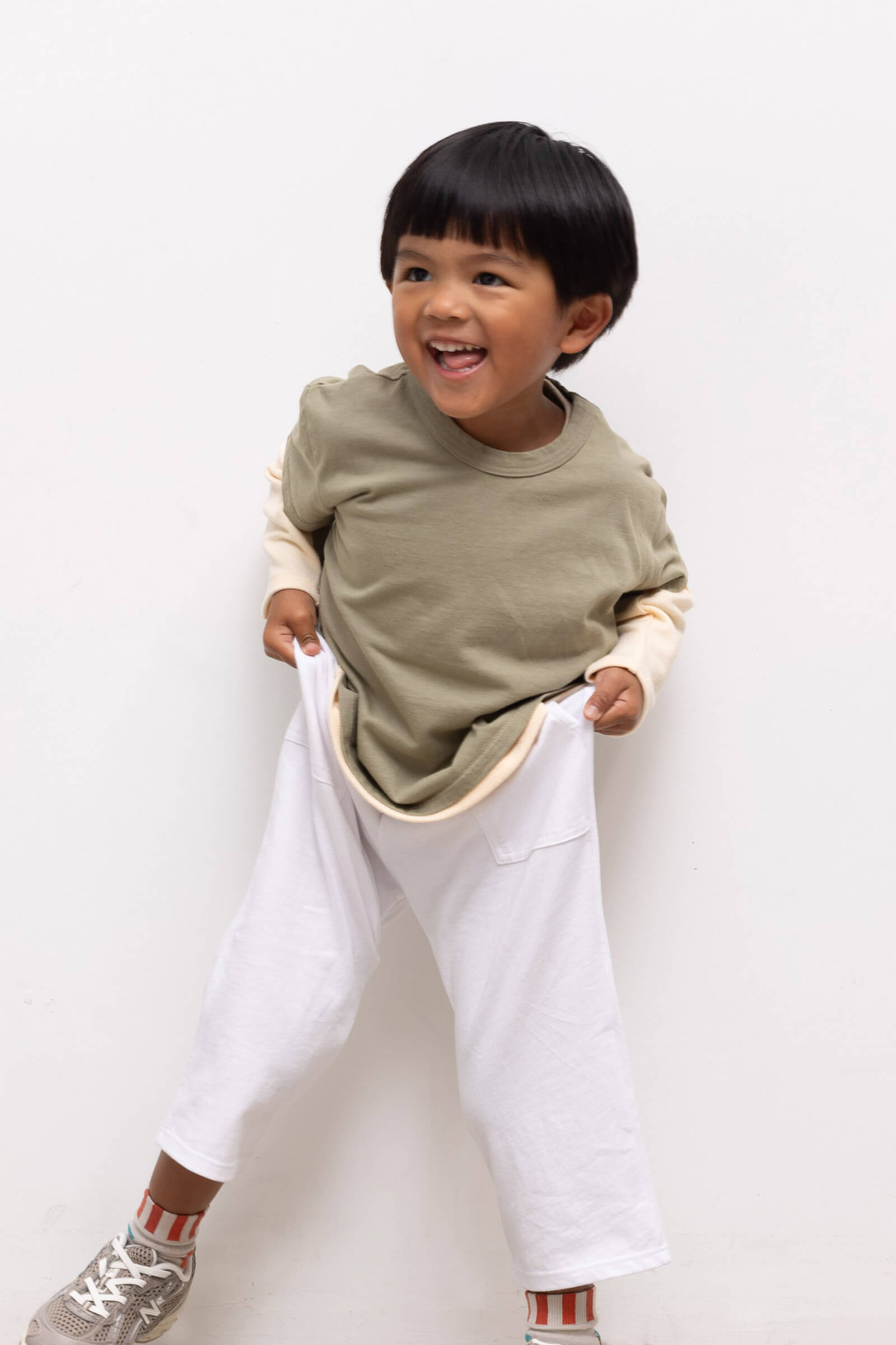 Our beloved Margo Tapered Pocket Pant — shrunken down to match with your mini. These are easy, pull-on style pants with tiny side pockets and a comfortable elastic waistband. Make it a matching set with The Bebe Margo Tee.