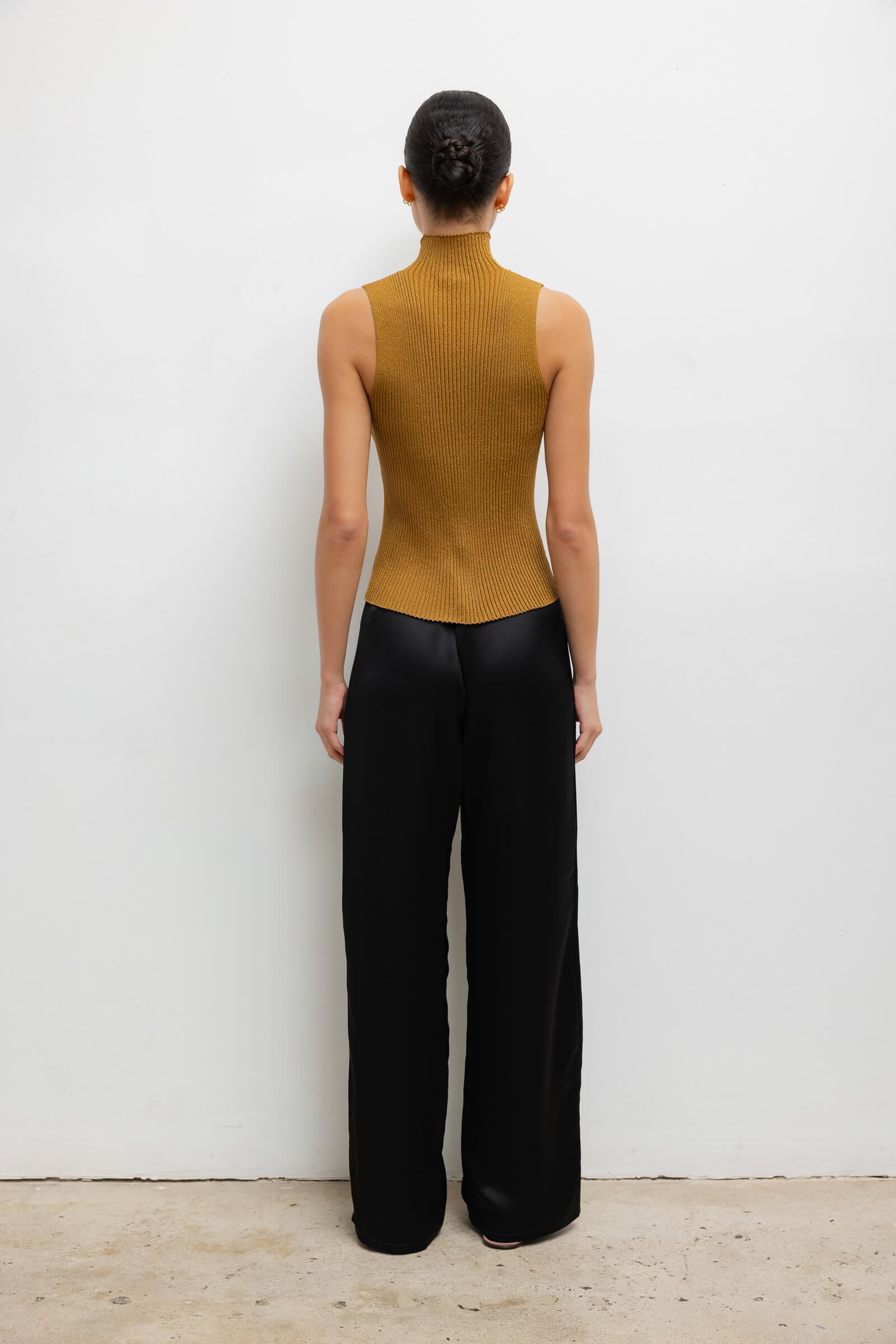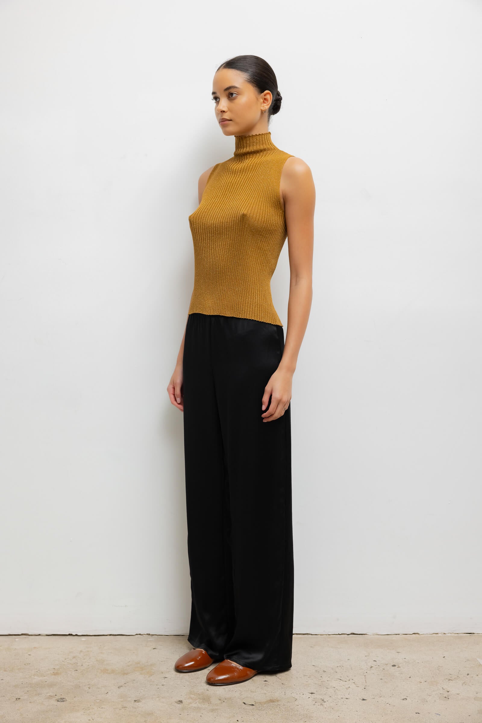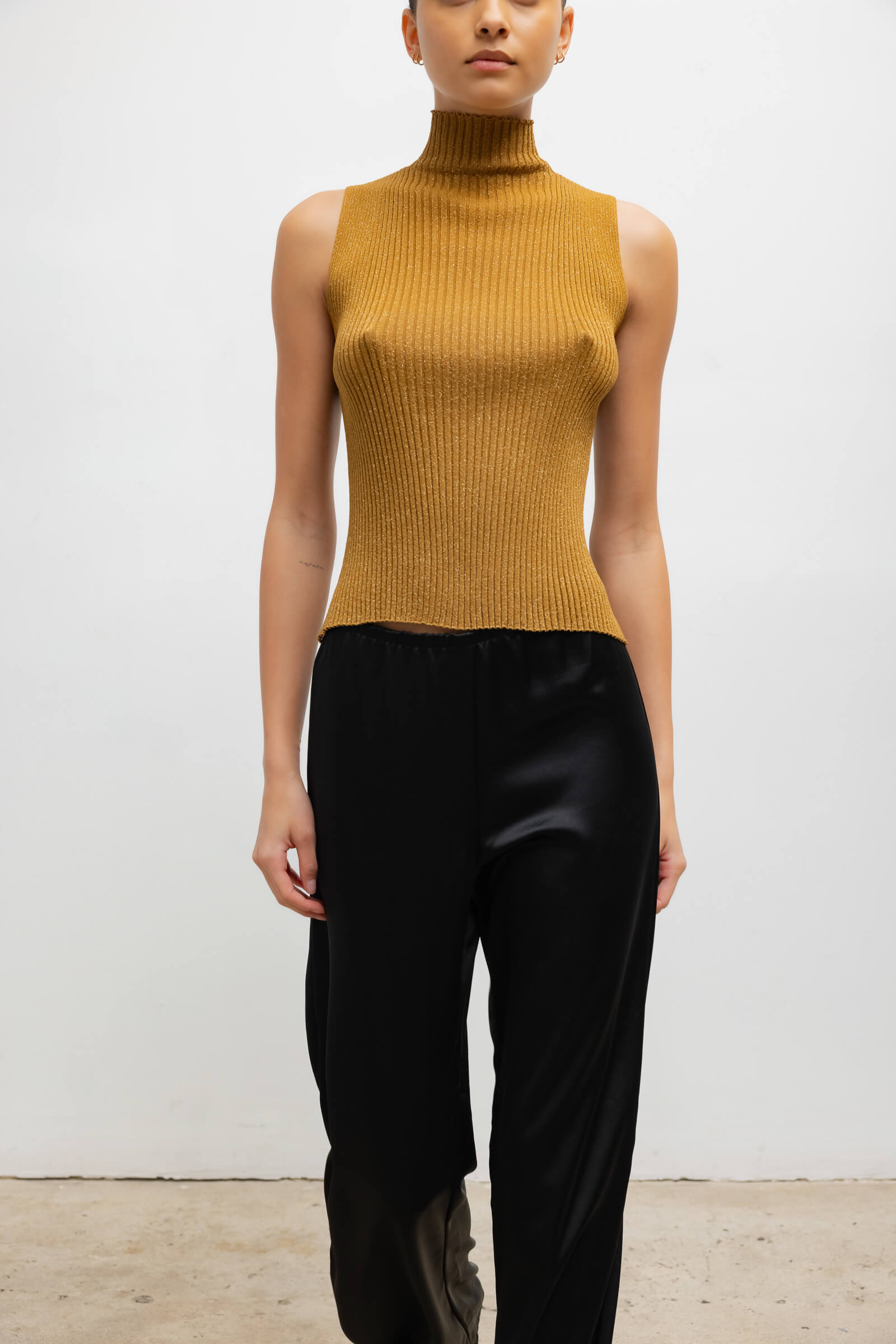 Knit in our extra fine Blake Lurex, The Blake Sleeveless Turtleneck adds a touch of luxurious shimmer to an set. Featuring a high neck, subtle rib, and a fitted shape. We're mixing this with The Barb Set for a night out look.
