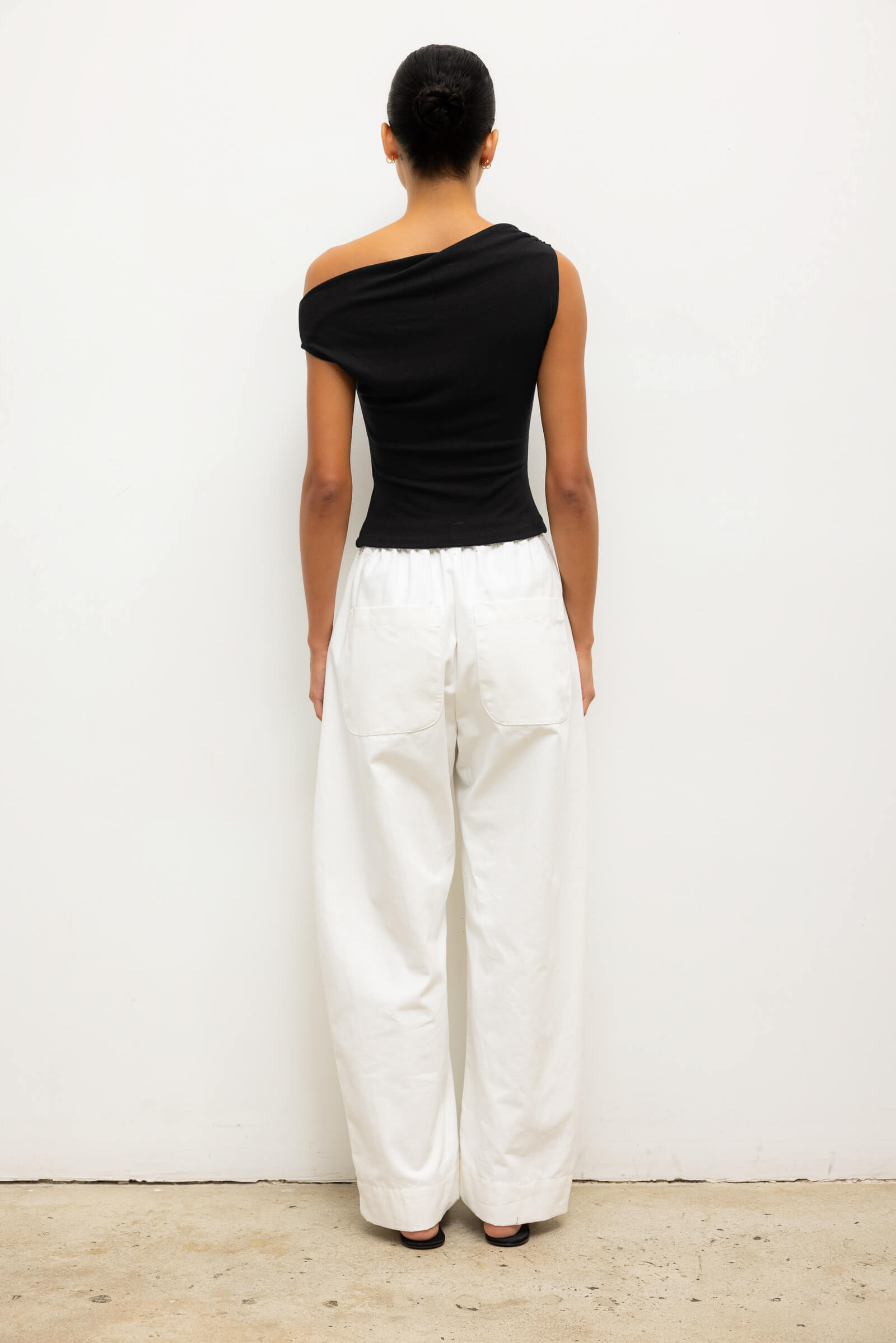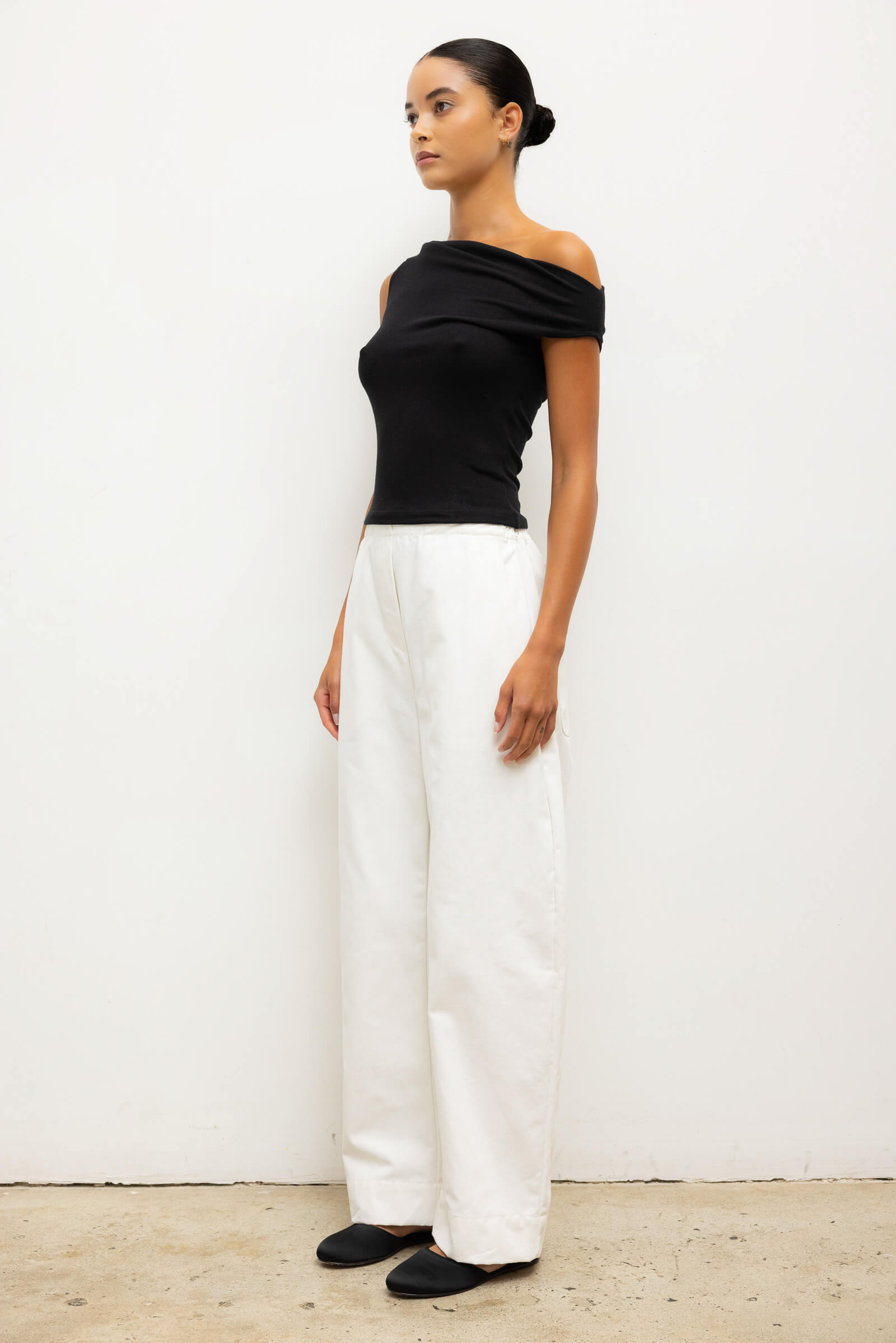 Cut in our new brushed Chloe Canvas, The Chloe Barrel Pant features a flattering rounded leg, cropped length, and a comfortable elastic waistband for all day wear. Make it a matching set with The Chloe Zip Jacket.