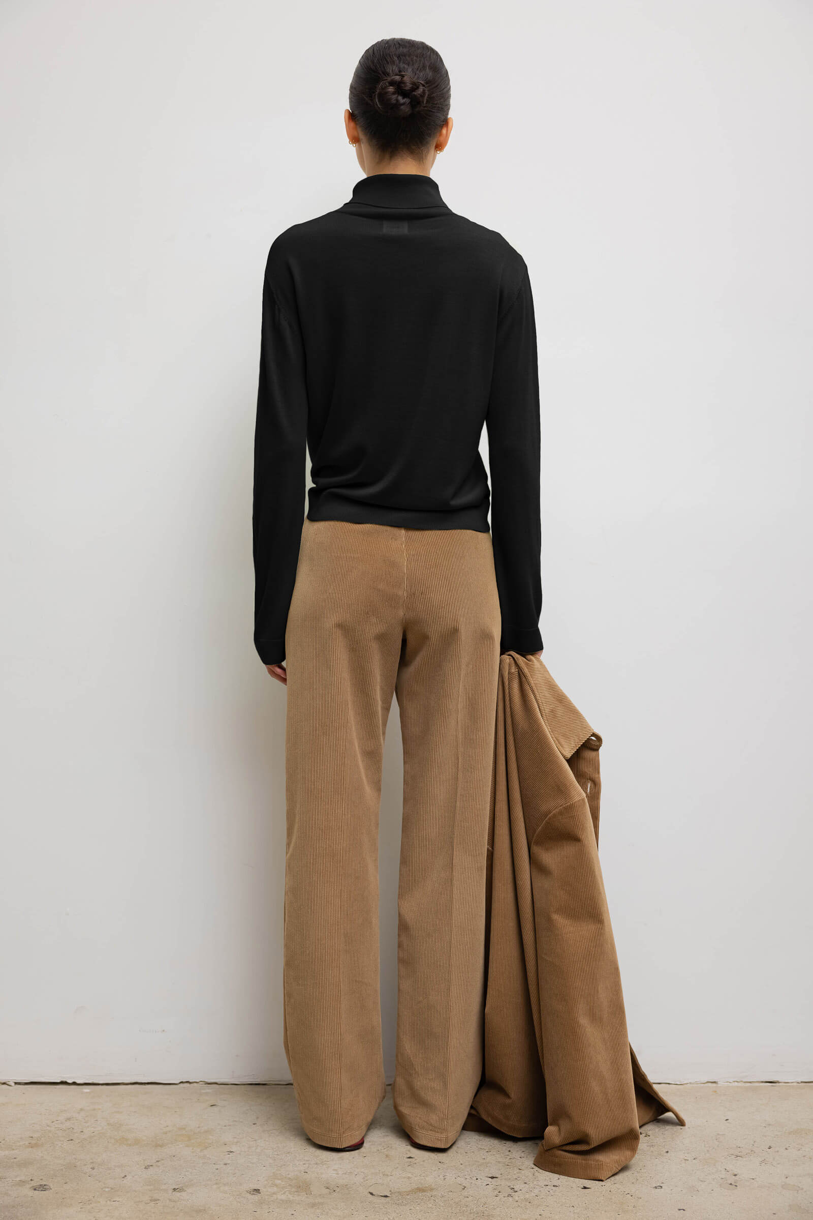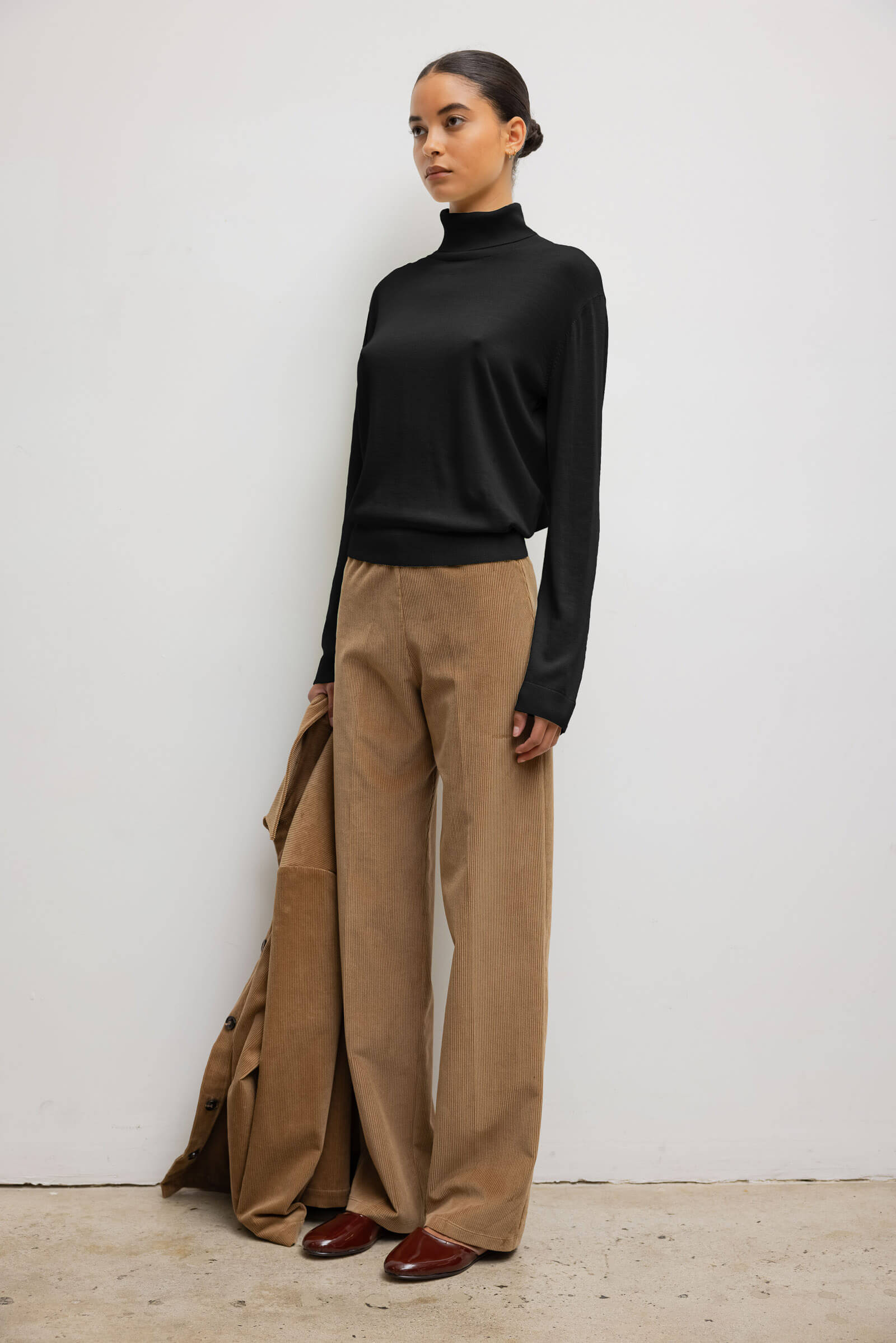 Knit in our ultra lightweight, 100% merino wool James Knit, The James Turtleneck is the quintessential layerable turtleneck, featuring a fold over neck, full length sleeves, and delicate ribbed finishes. Wear it by itself or underneath heavier knits and outwear.