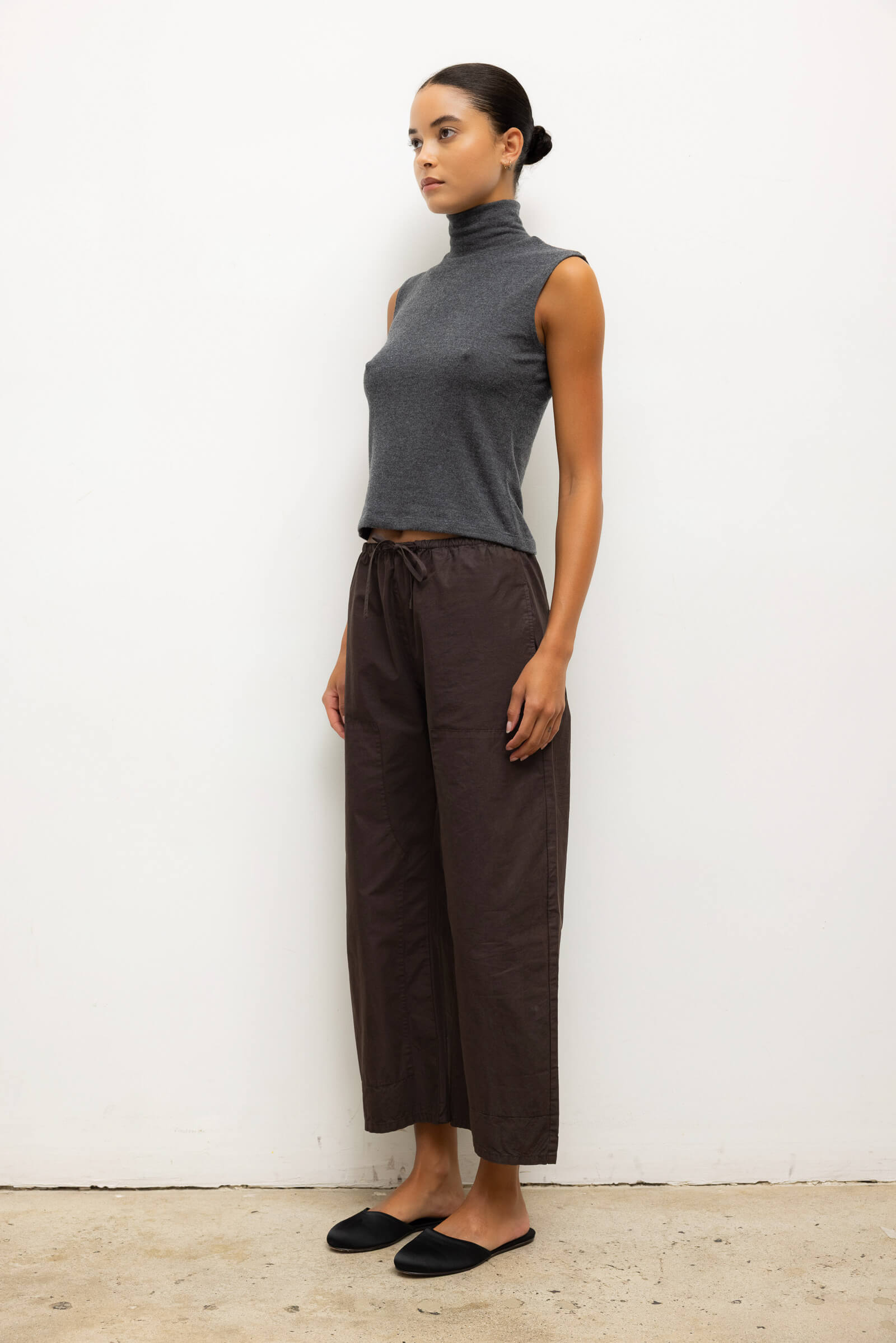 Cut in our garment dyed Kyoto Cotton, The Kyoto Carpenter Pant is a pull-on style pant, featuring a baggy leg silhouette that hits at the ankle, with topstitched utility panels at front, an adjustable waistband, and patch pockets at back. Transition these through the seasons with the matching Kyoto Pocket Button Down or Kyoto Car Coat.