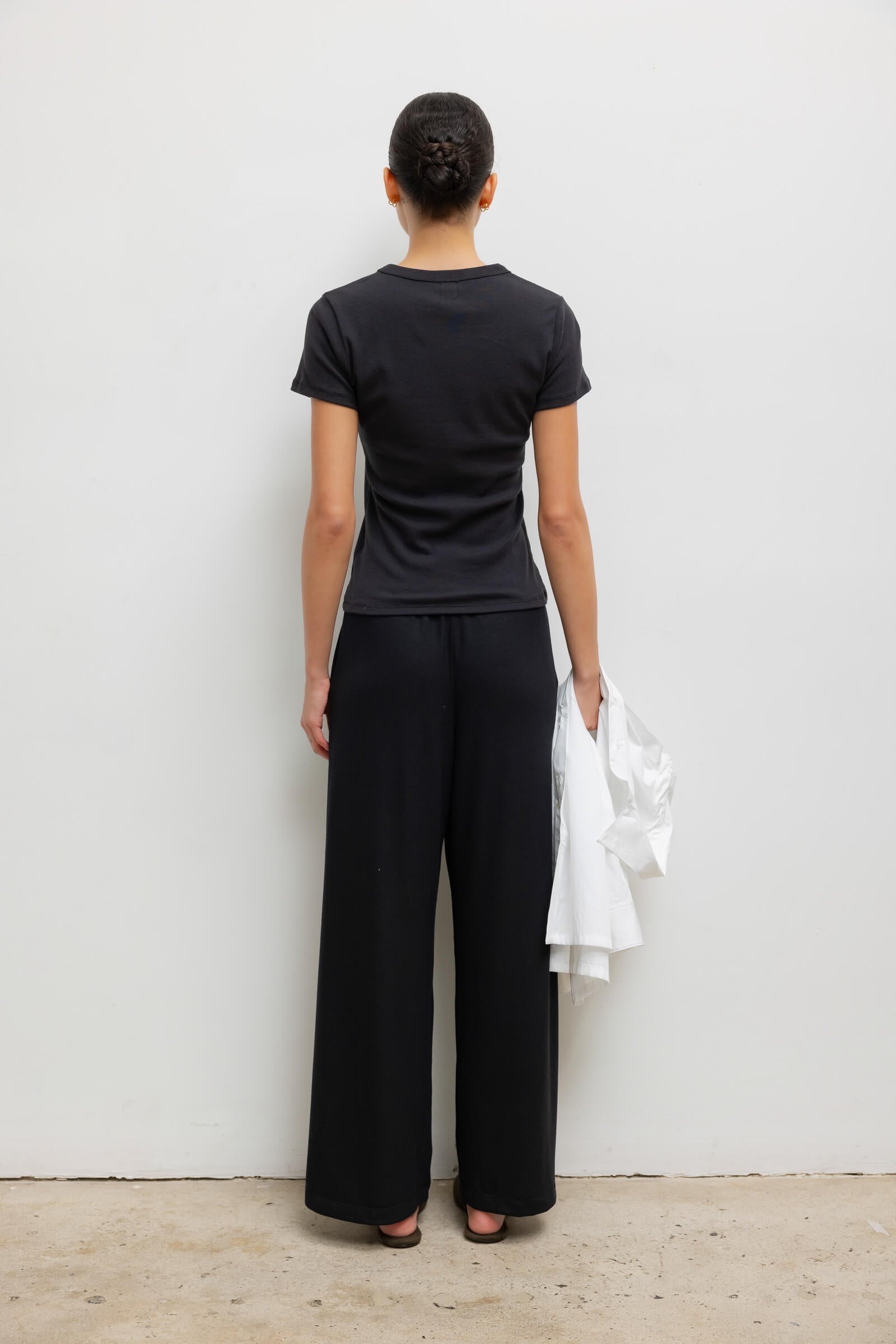 Cut in our buttery soft brushed sweater jersey, The Lauren Crop Pleated Pocket Pant is the little sister to our bestselling Lauren Pleated Pocket Pant. Now with a shorter inseam length, this pull-on style pant features a relaxed wide leg and subtle front pleats. Make it a matching set with The Lauren Ruched Asymmetrical Top.
