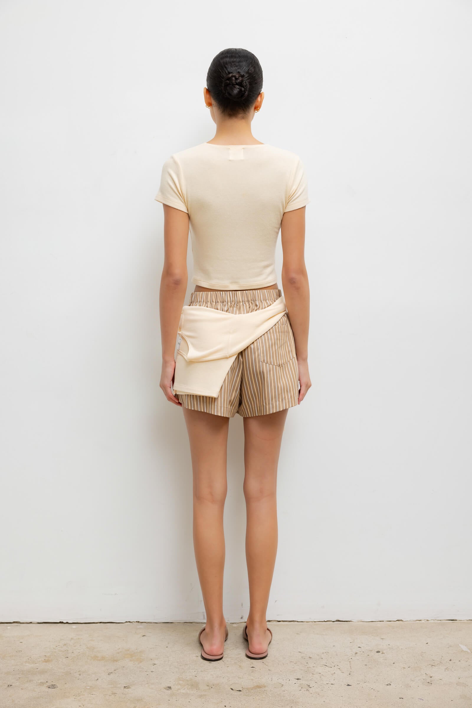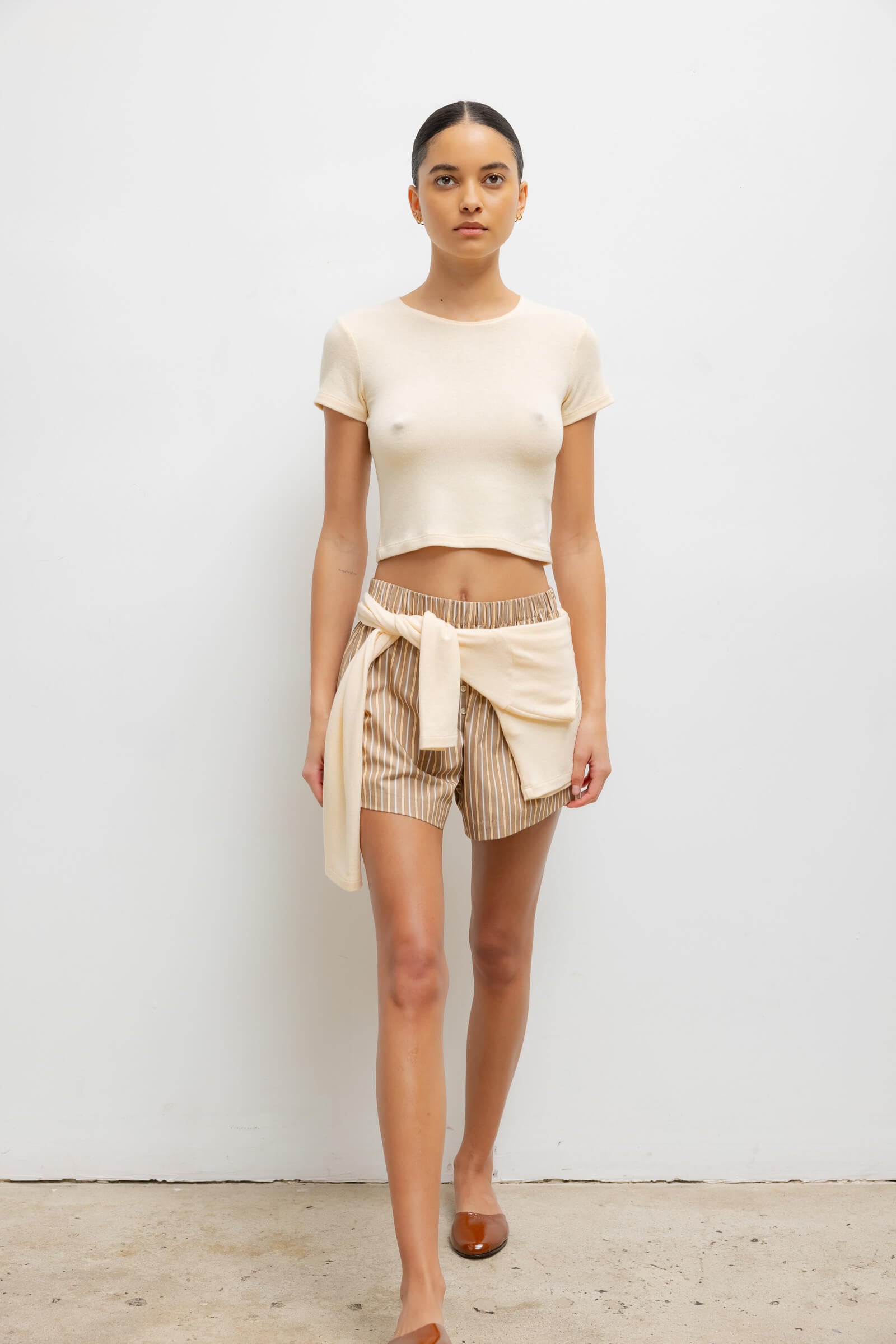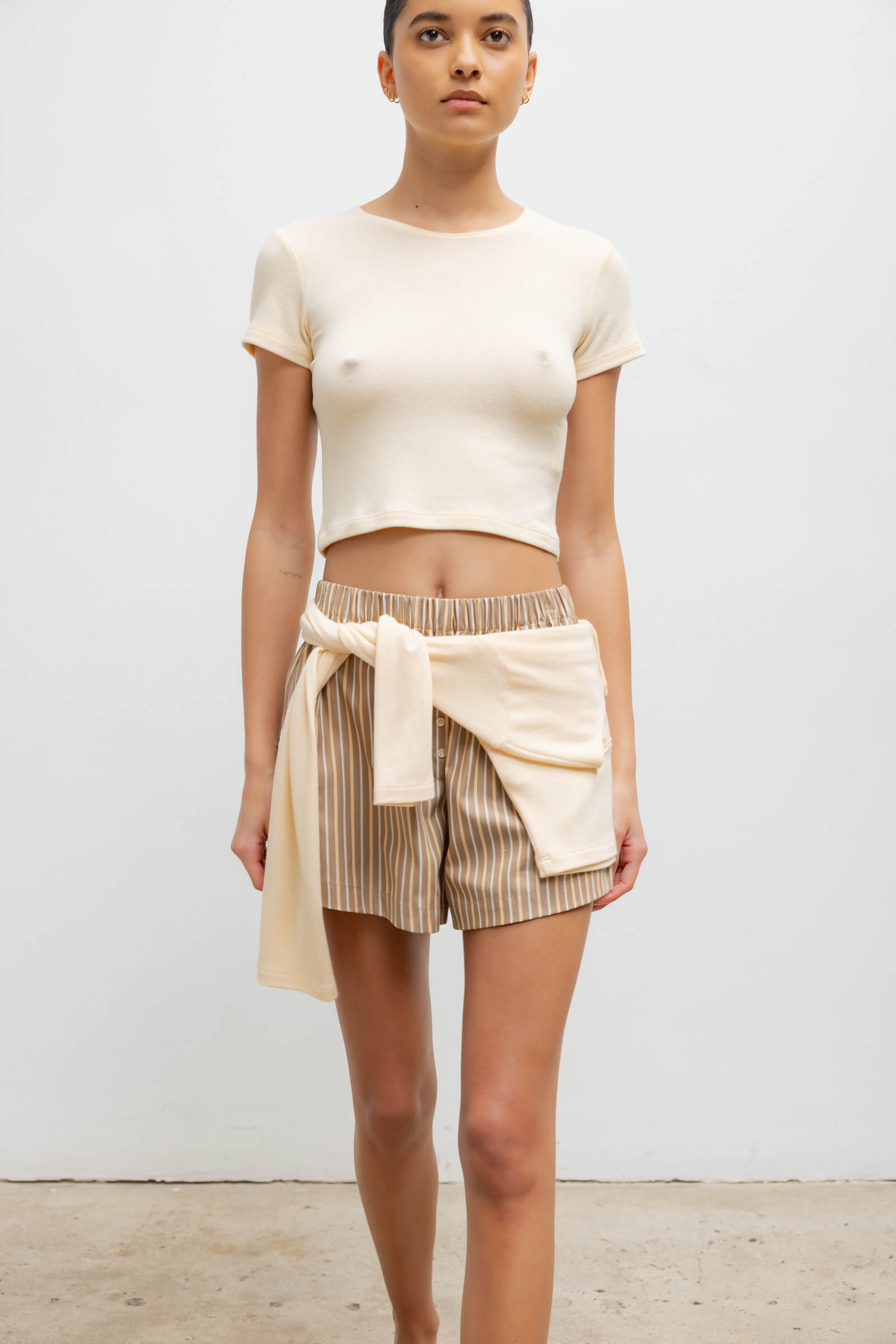 Cut in our buttery soft Lauren Sweater Jersey, the Lauren Crop Slim Fit Tee is a classic crewneck t-shirt cropped at just the right length. Make it a matching set with the Lauren Crop Drawstring Pant.