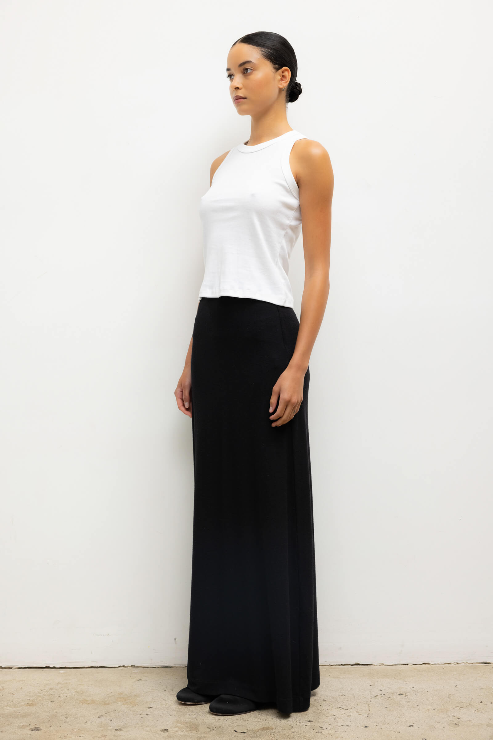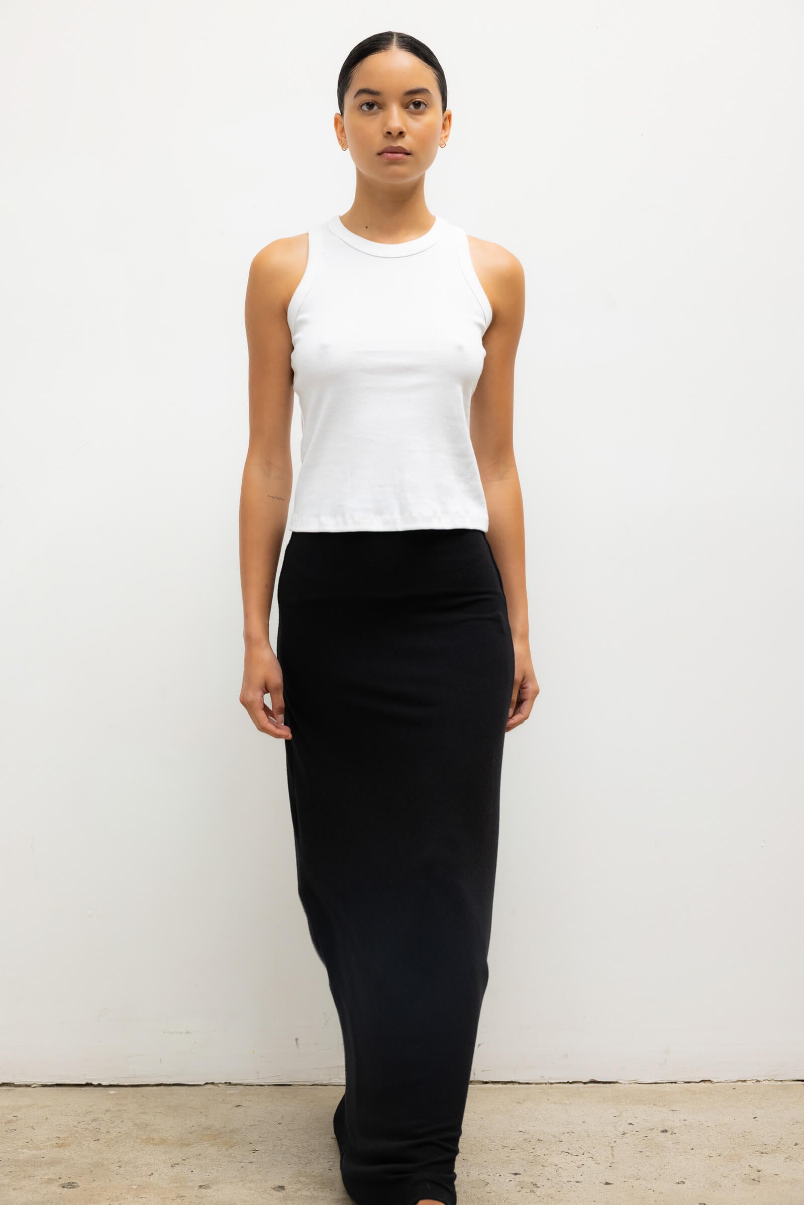 Cut in our buttery soft Lauren Sweater Jersey, The Lauren High Waist Maxi Skirt is a classic, figure-skimming full length silhouette. This soft, high rise waist can also be folded over for versatile styling and comfort.