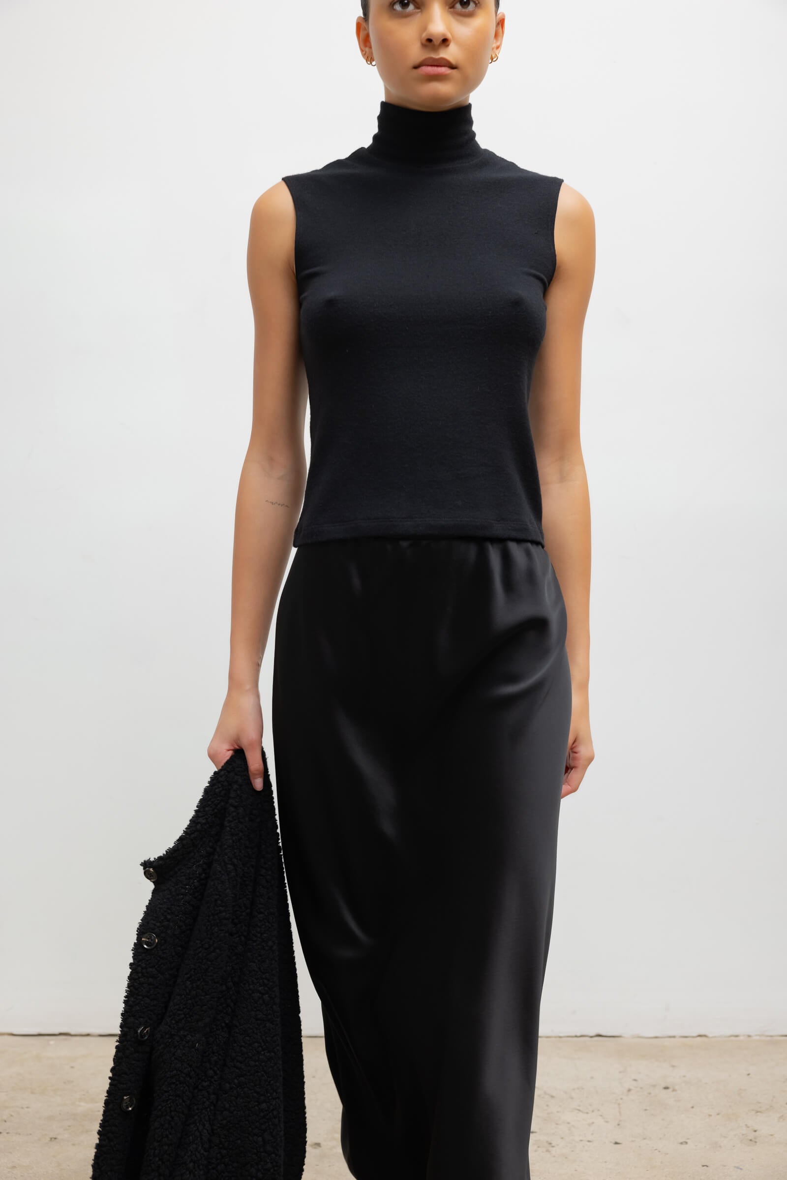 A foundation staple. Cut in our buttery soft brushed sweater jersey, The Lauren Sleeveless Turtleneck features a slightly fitted silhouette and a flexibly styled turtleneck.