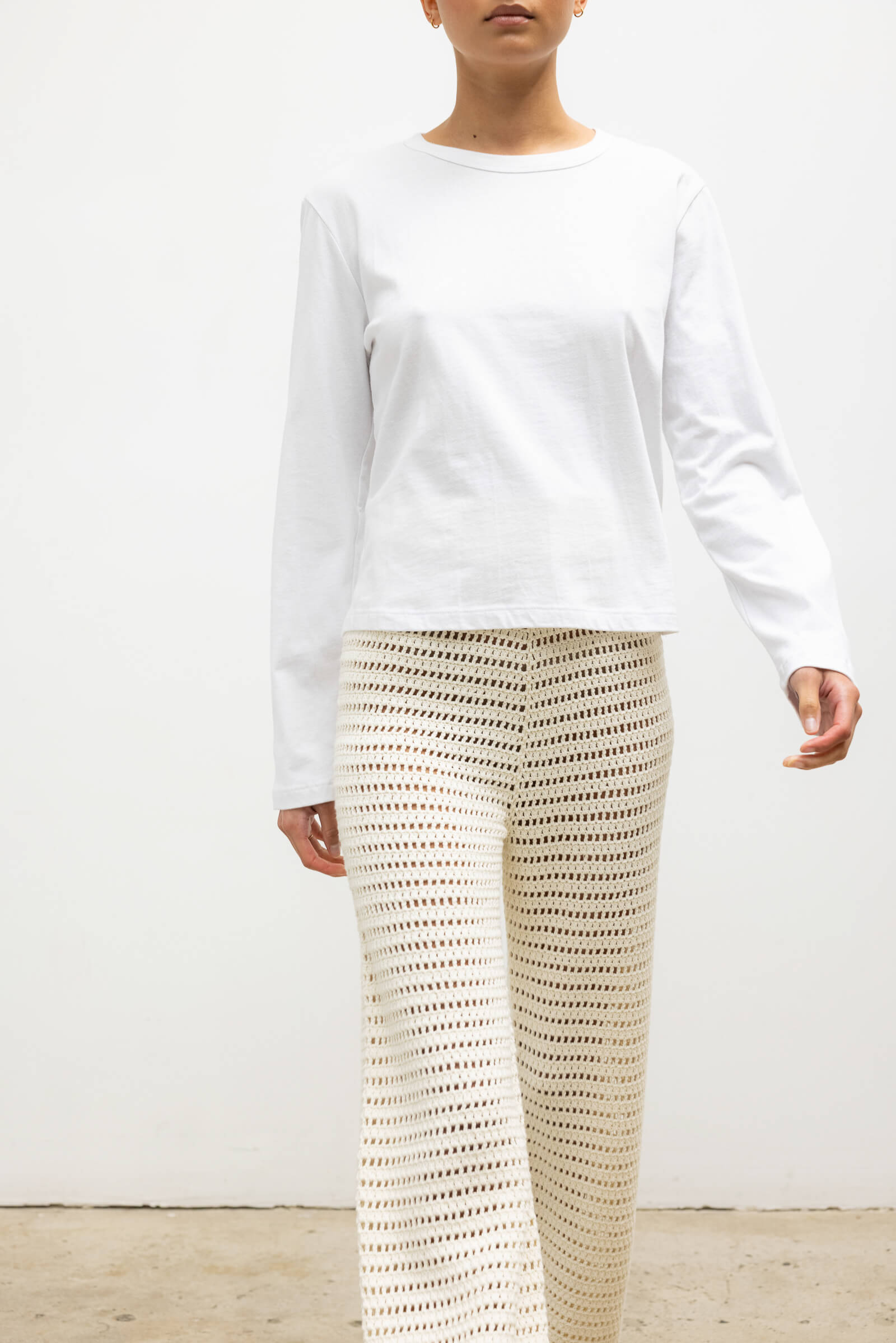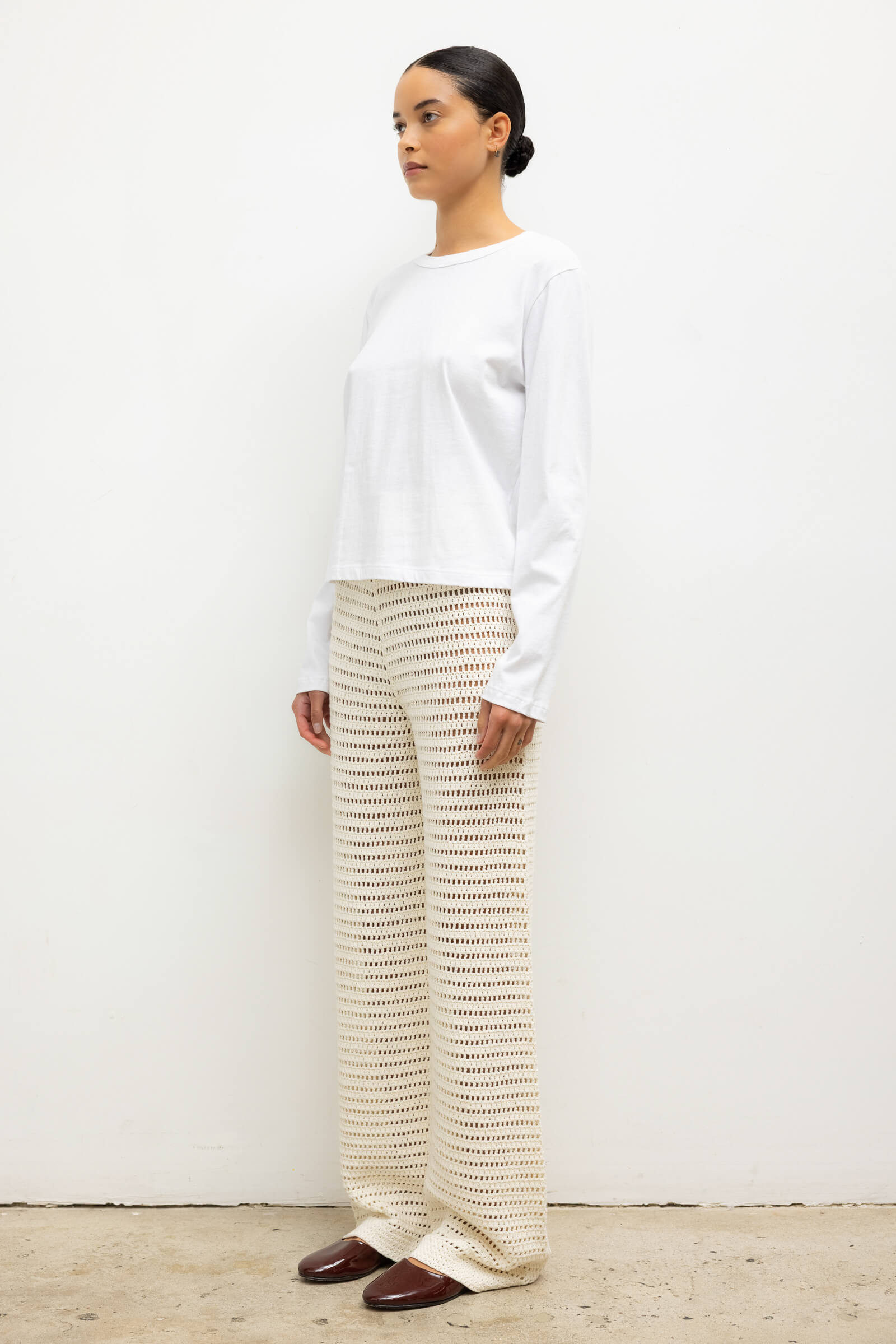 Hand-crocheted in our signature Lucy Cotton Knit, the Lucy Pant is an easy pull-on style pant featuring a mid-rise and straight leg. Make it a matching set with The Lucy Oversized Crew.