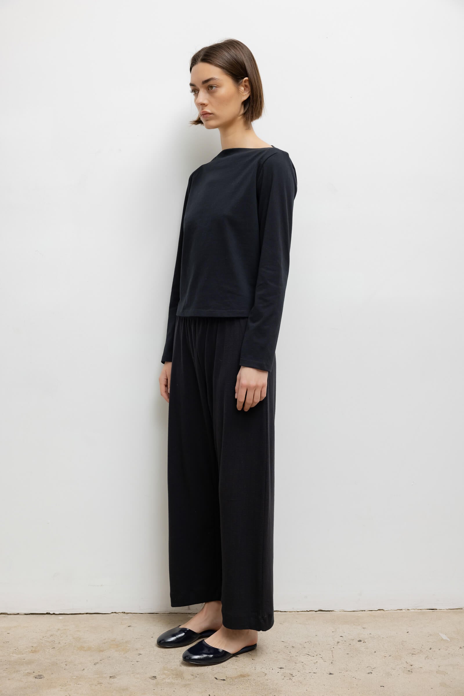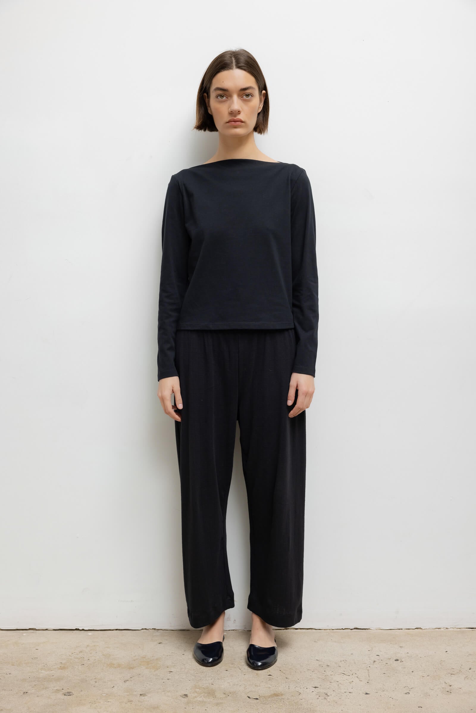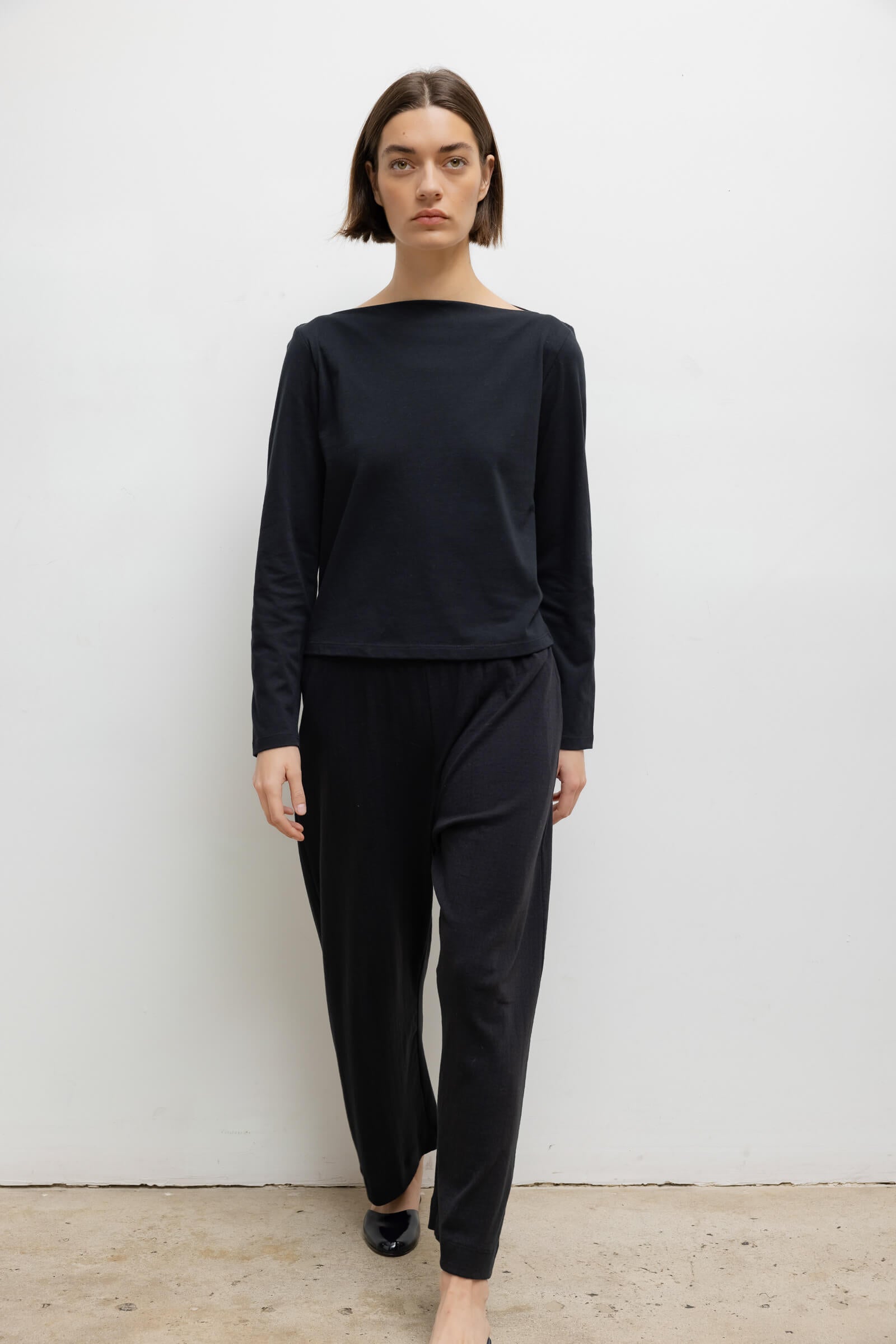 Crafted from our structure-holding Margo Cotton, The Margo Long Sleeve Boatneck is a classic top silhouettes, featuring a straight neckline and long sleeves.