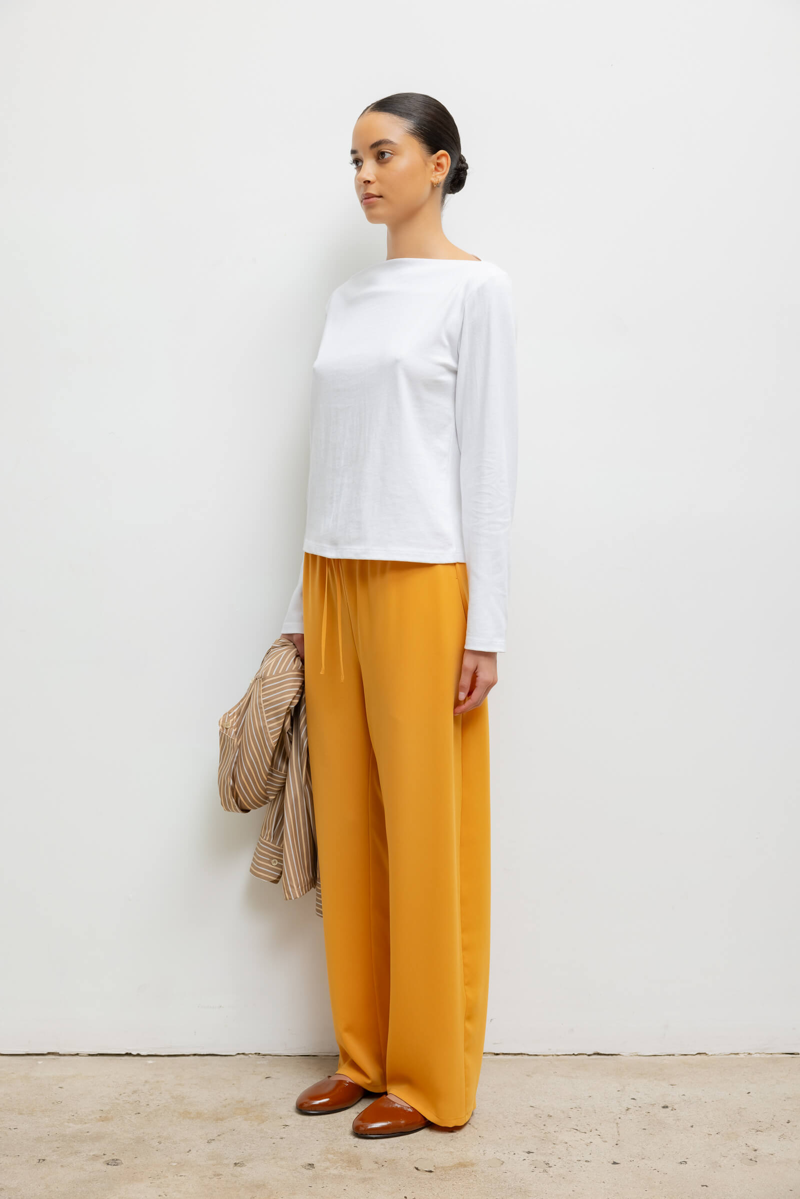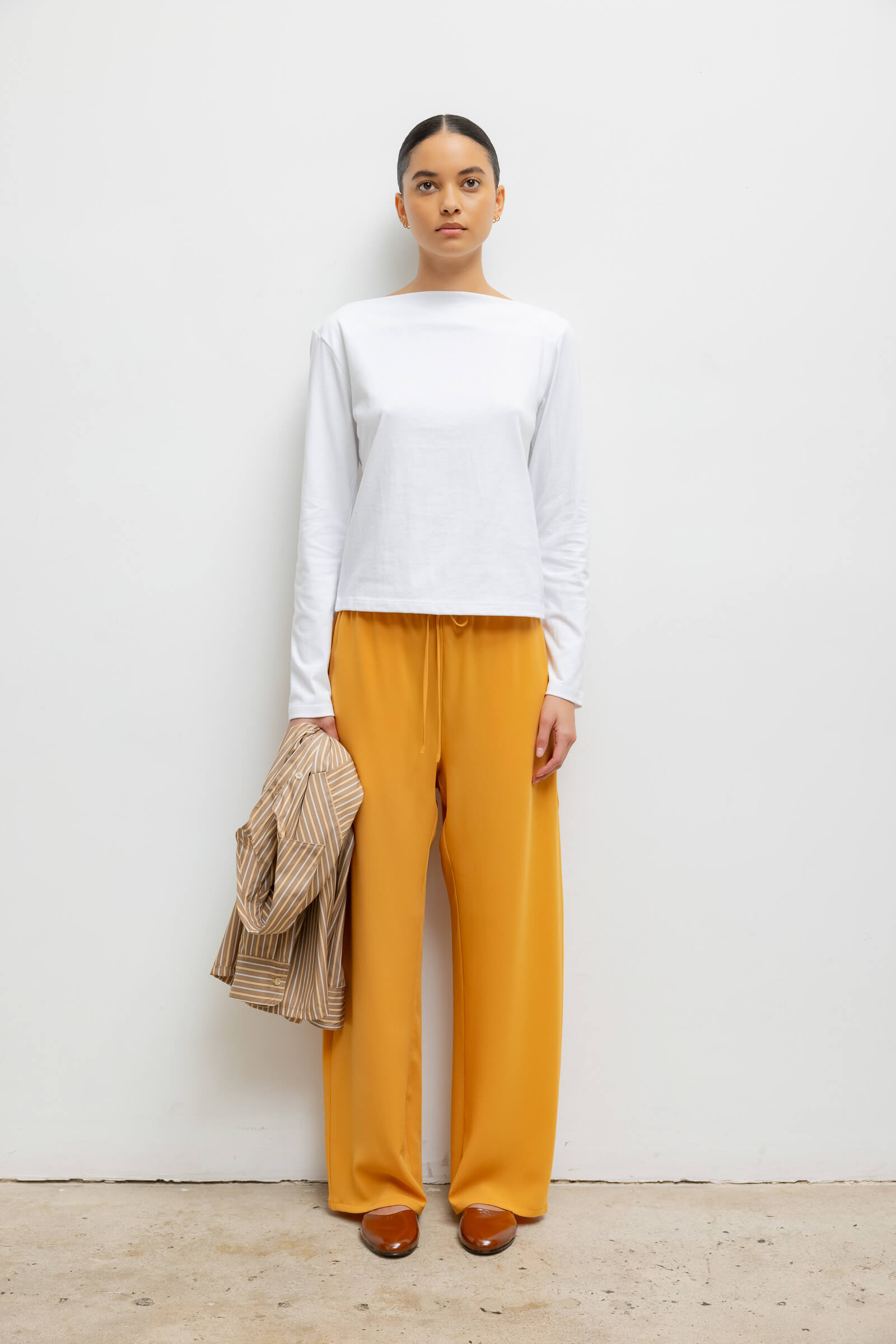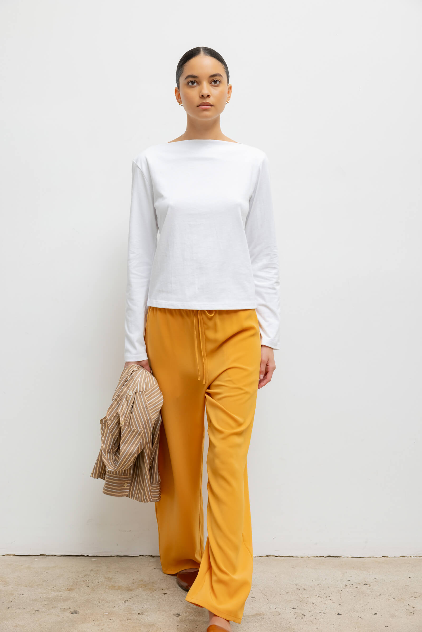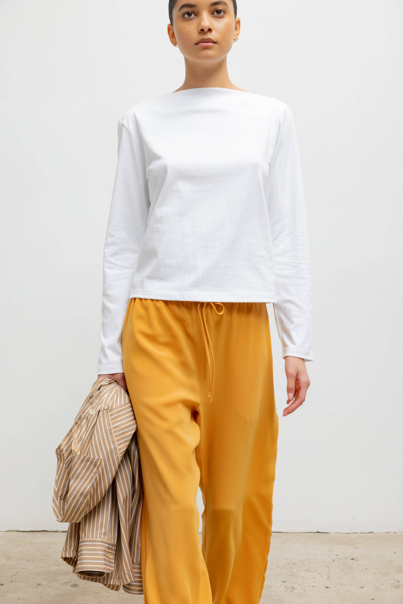 Crafted from our structure-holding Margo Cotton, The Margo Long Sleeve Boatneck is a classic top silhouettes, featuring a straight neckline and long sleeves.