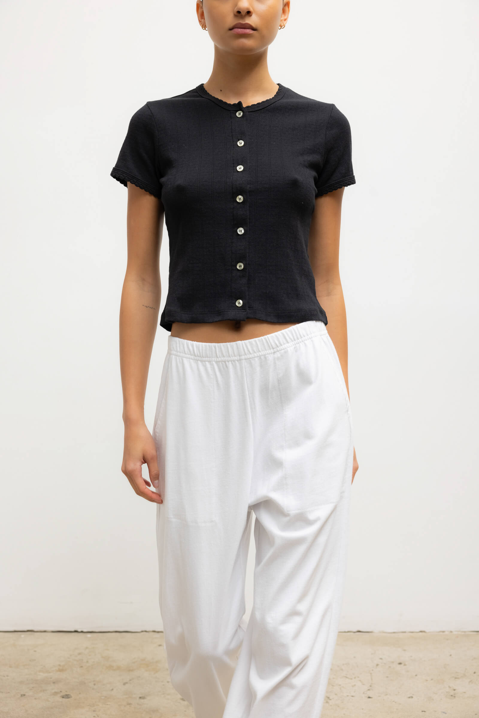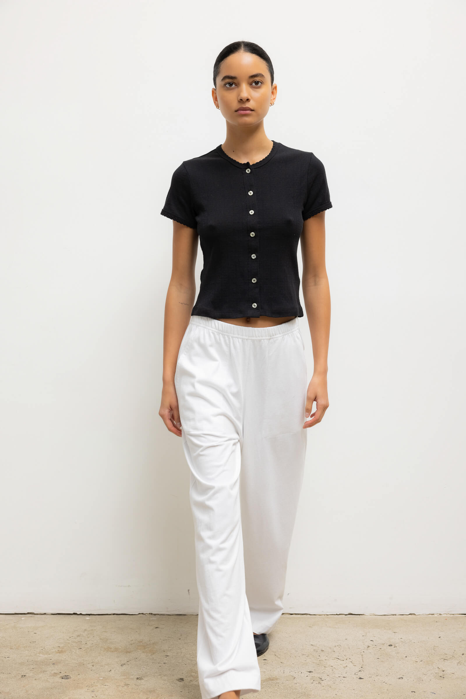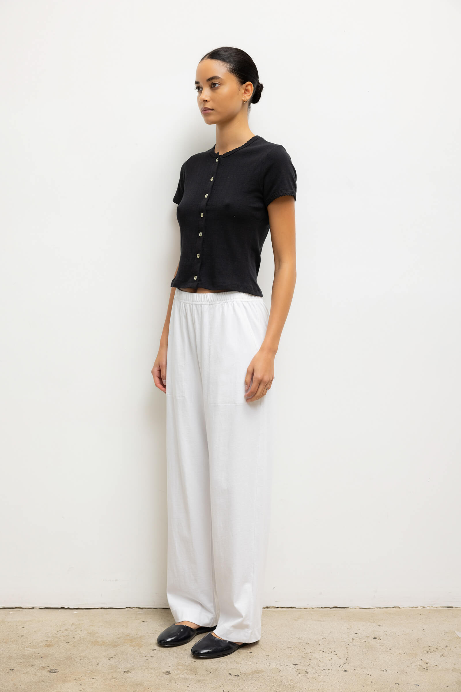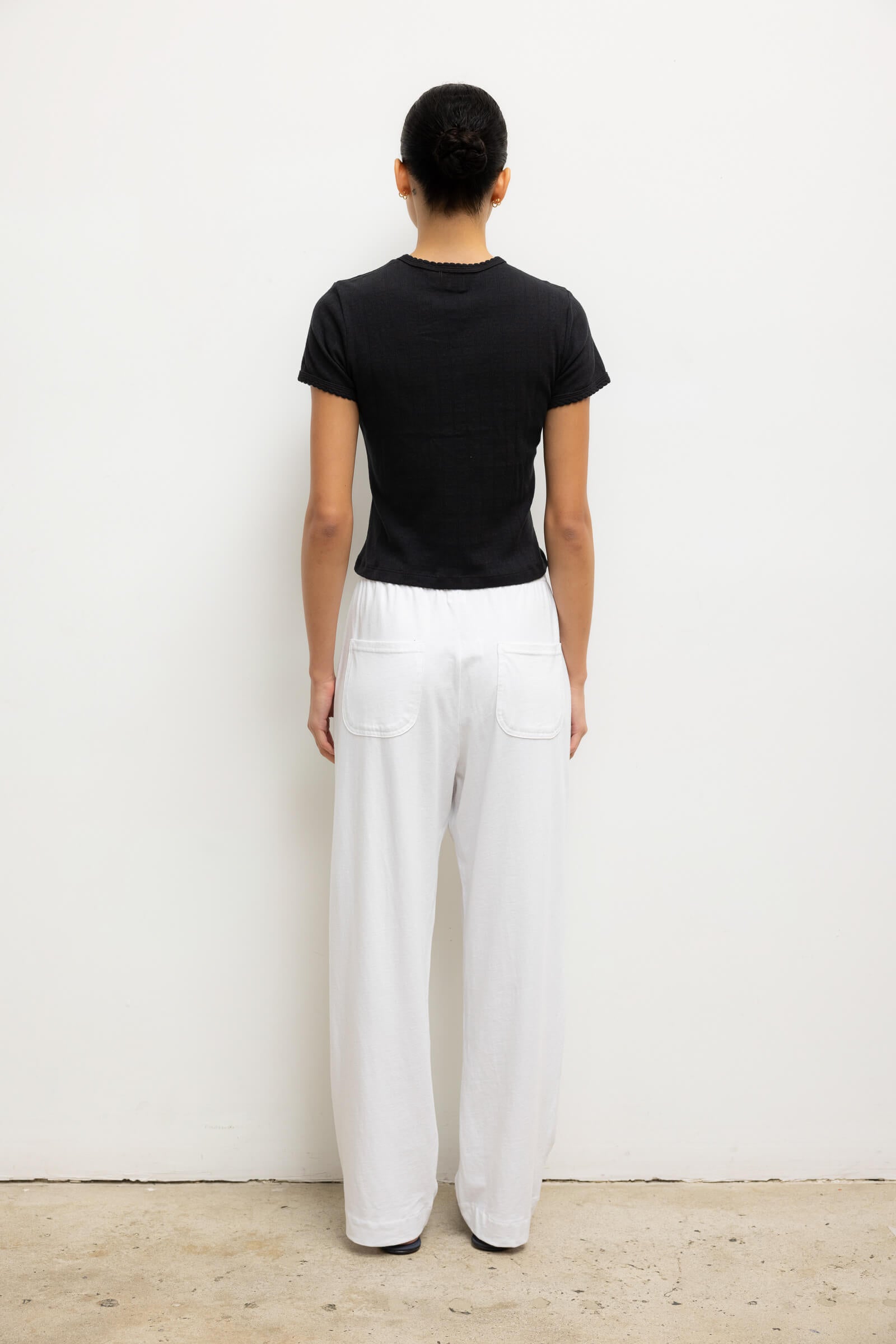 Cut in our shape-holding, 100% cotton, the Margo Tapered Pocket Pant is an easy, pull-on style pant with a straight, relaxed leg and a comfortable elastic waistband. Match it with our best-selling Margo Tee in White.