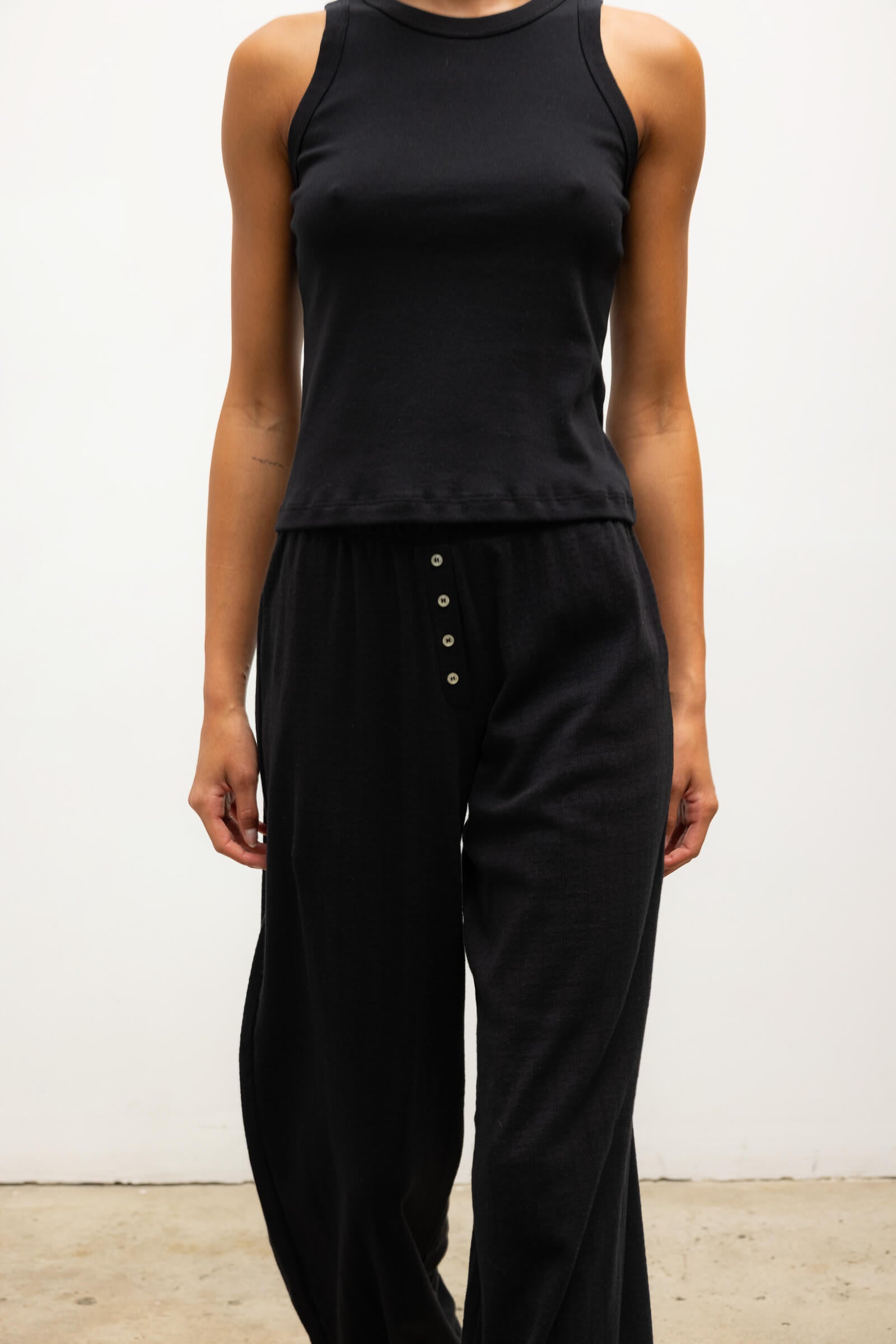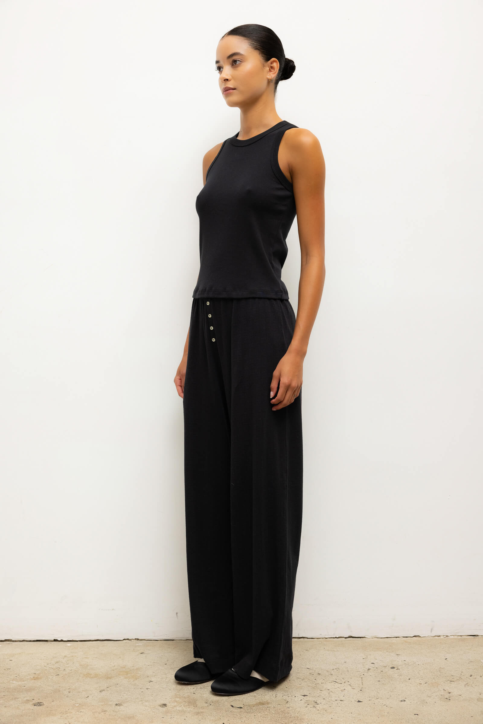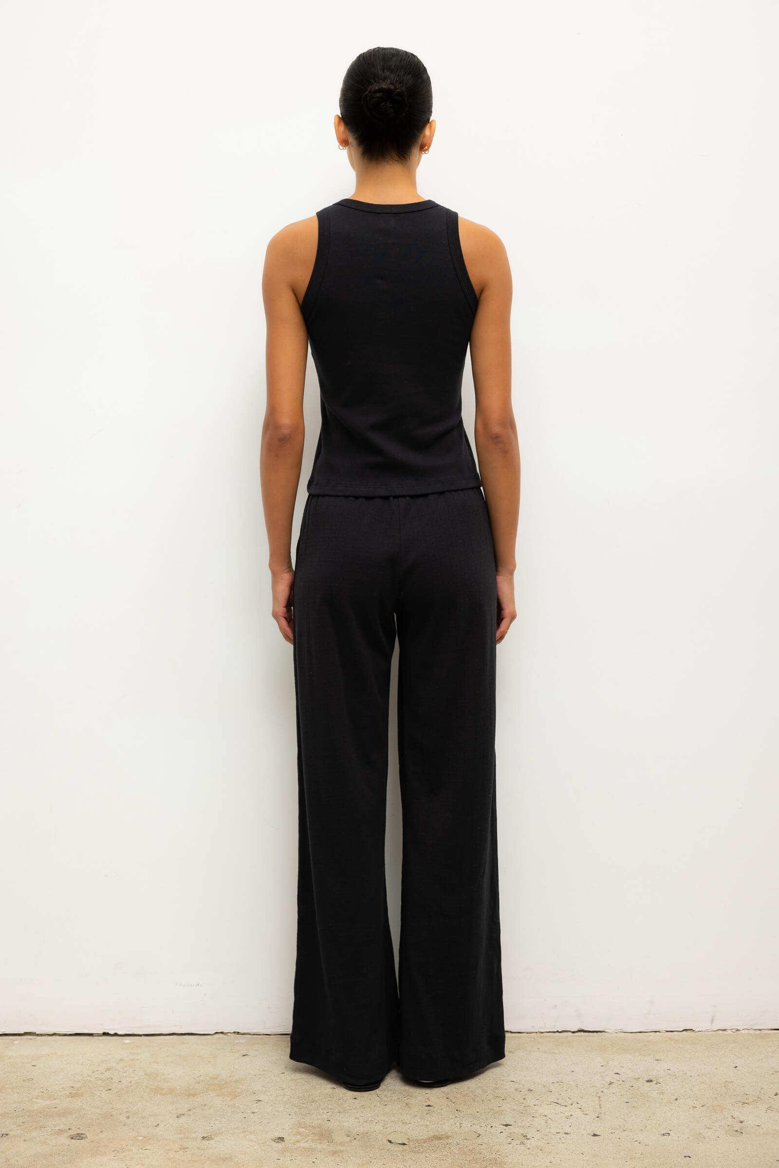 Cut in our body-hugging Nando Baby Rib Cotton, The Nando High Neck Tank features a high, round neckline, sleeveless silhouette, and a full length.