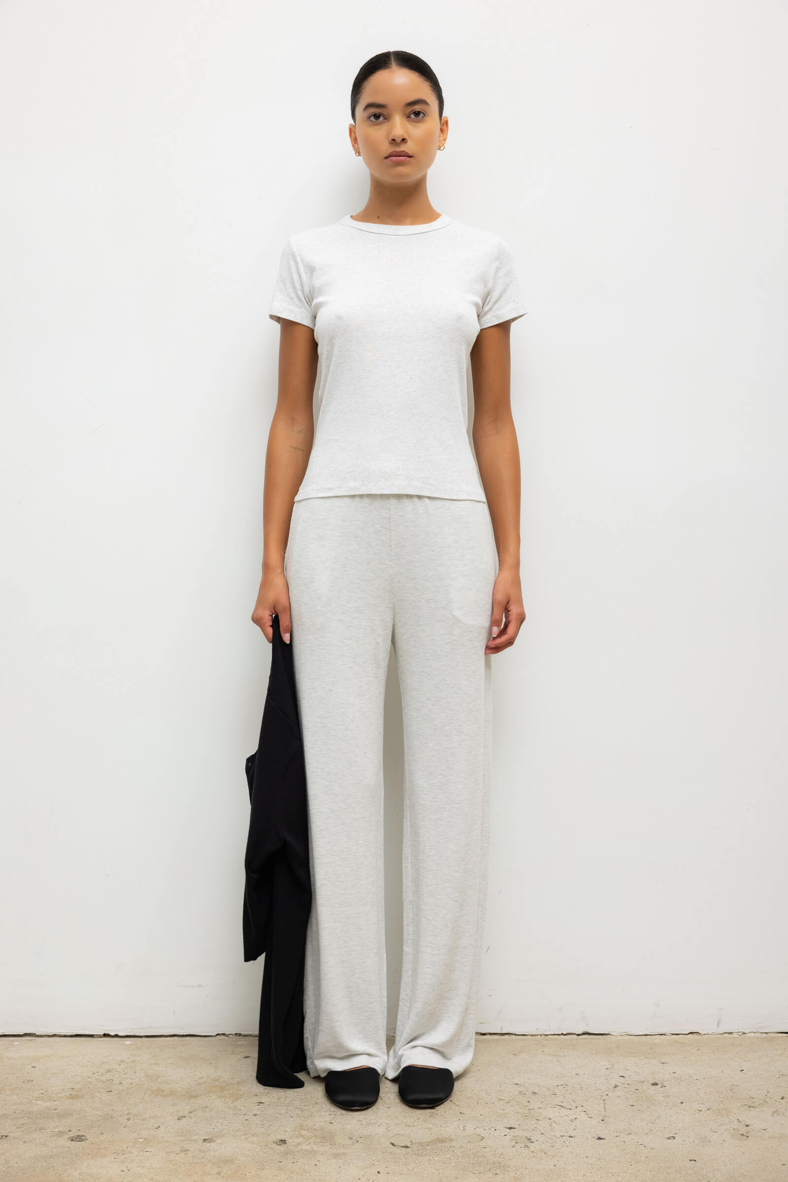 Cut in our body-hugging Nando Baby Rib Cotton, The Nando Slim Fit Tee features a classic crew neckline and fitted short sleeves.