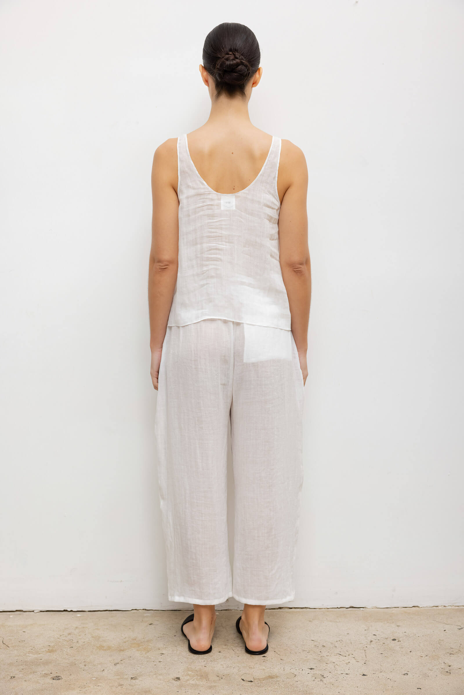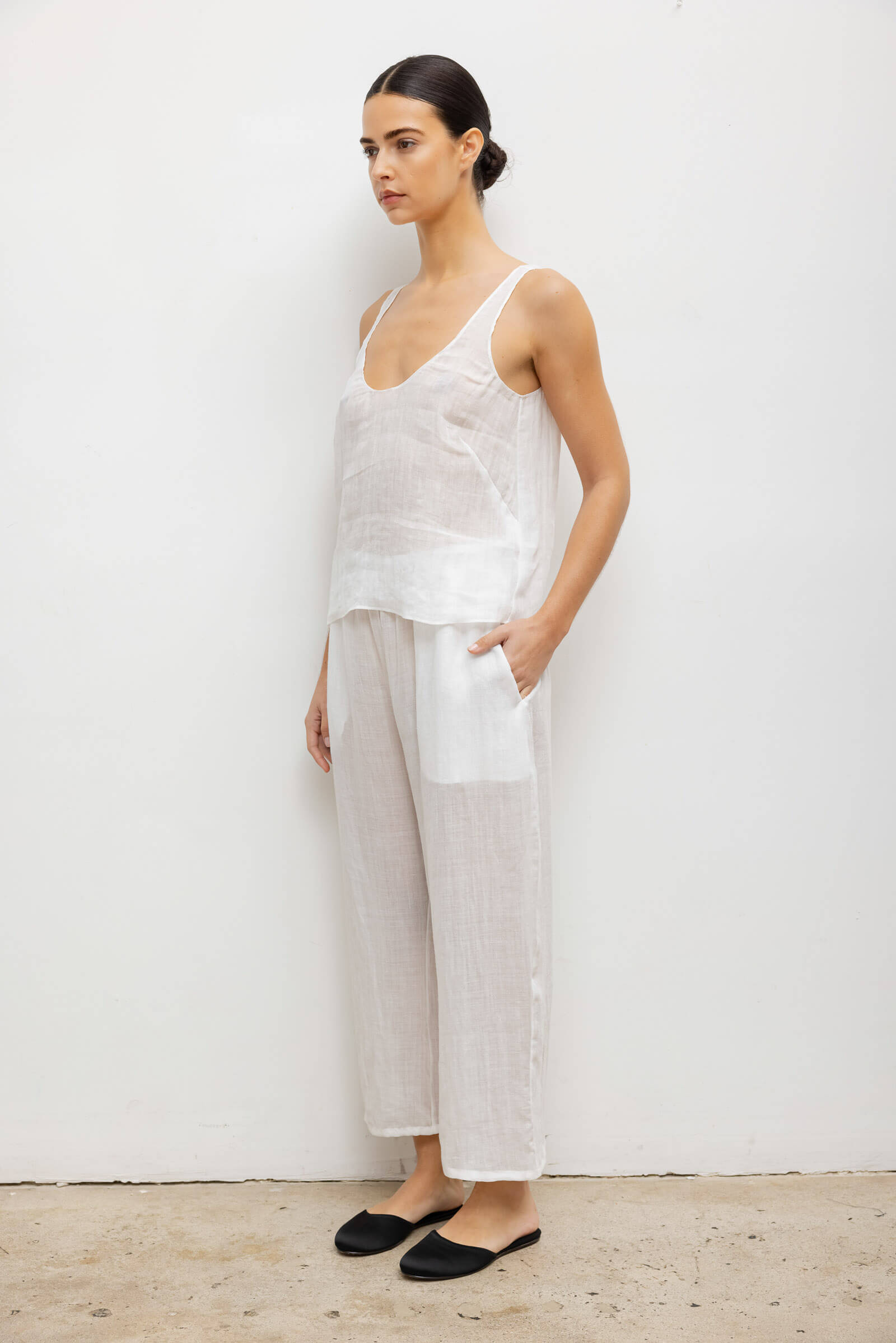 Cut in our feather-light Niko Gauze Linen, The Niko Scoop Tank features a wide scoop neckline, medium width straps, and a perfectly cropped length. Make it a matching set with The Niko Oversized Button Down and The Niko Crop Pocket Pant.