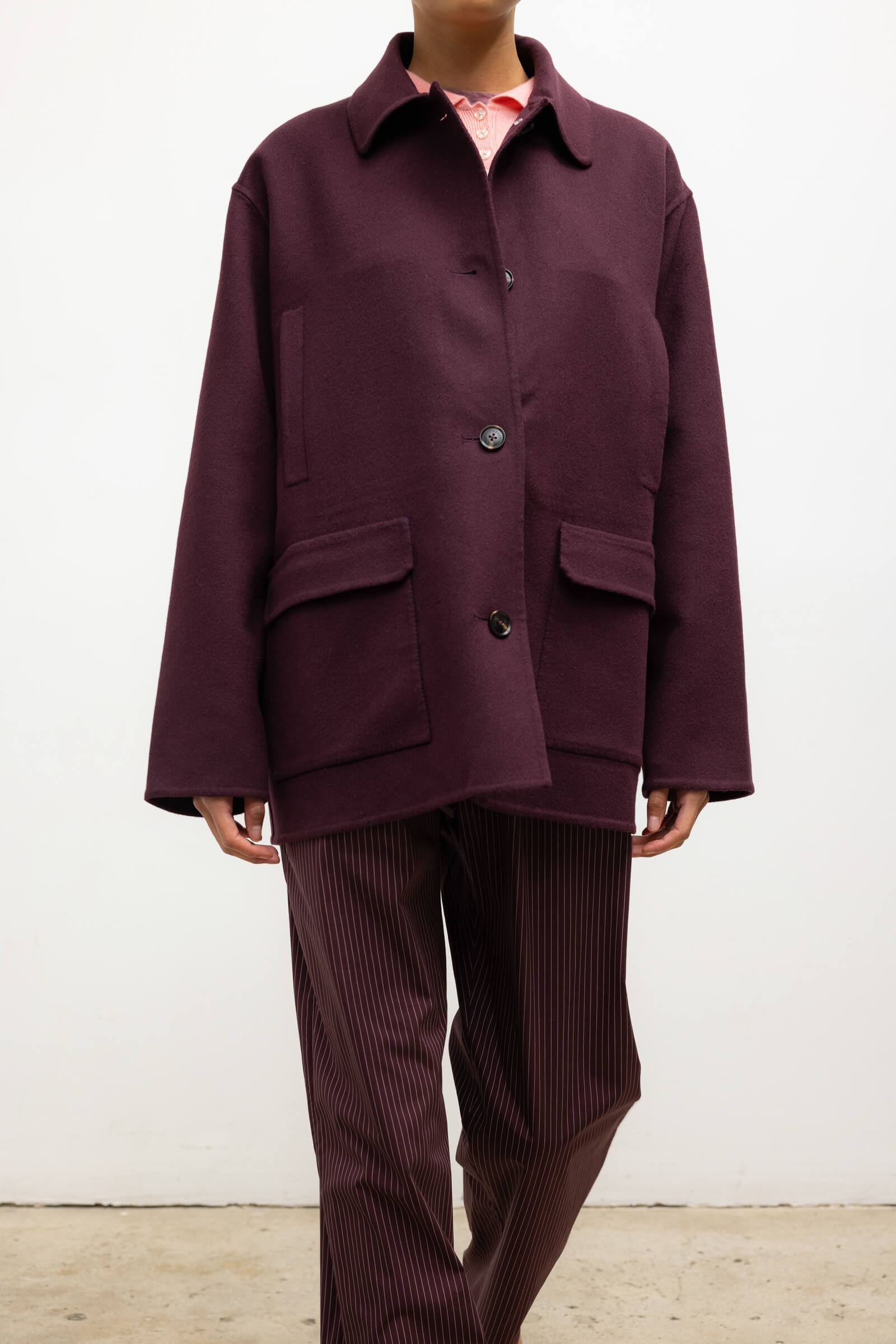 Crafted from our new Noah Wool/Cashmere, The Noah Button Down Jacket is a classic utility silhouette. This coat features a pointed collar, front patch pockets, and horn button closure. Make it a matching set with The Noah Wrap Skirt.
