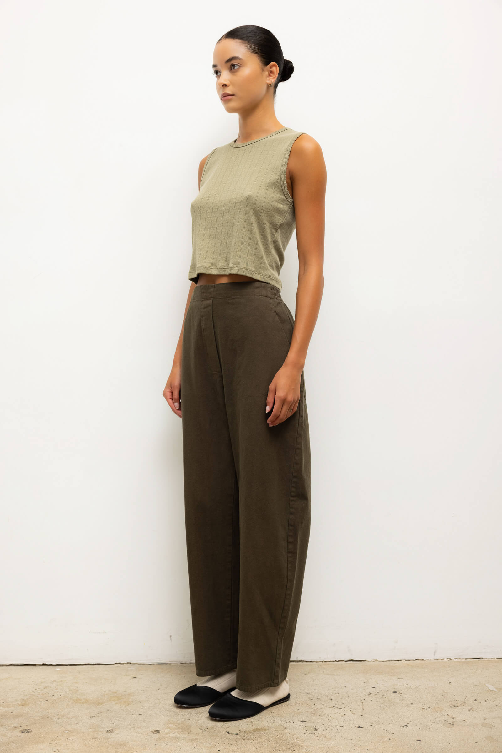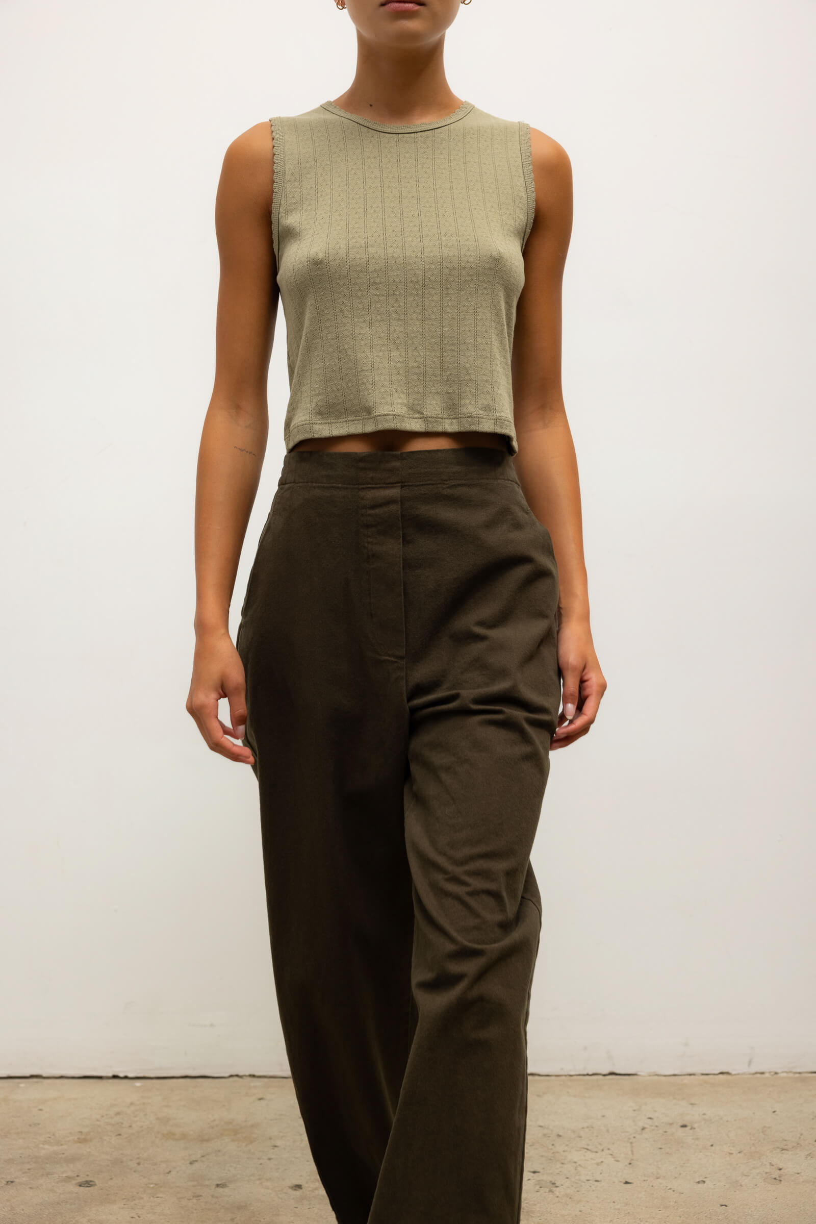 Cut in our nostalgic Pointelle Cotton, The Pointelle Sleeveless Crew is a classic bateau silhouette, featuring our signature pinhole stripes, dainty eyelets, and scalloped edging. Now in limited edition Cypress.