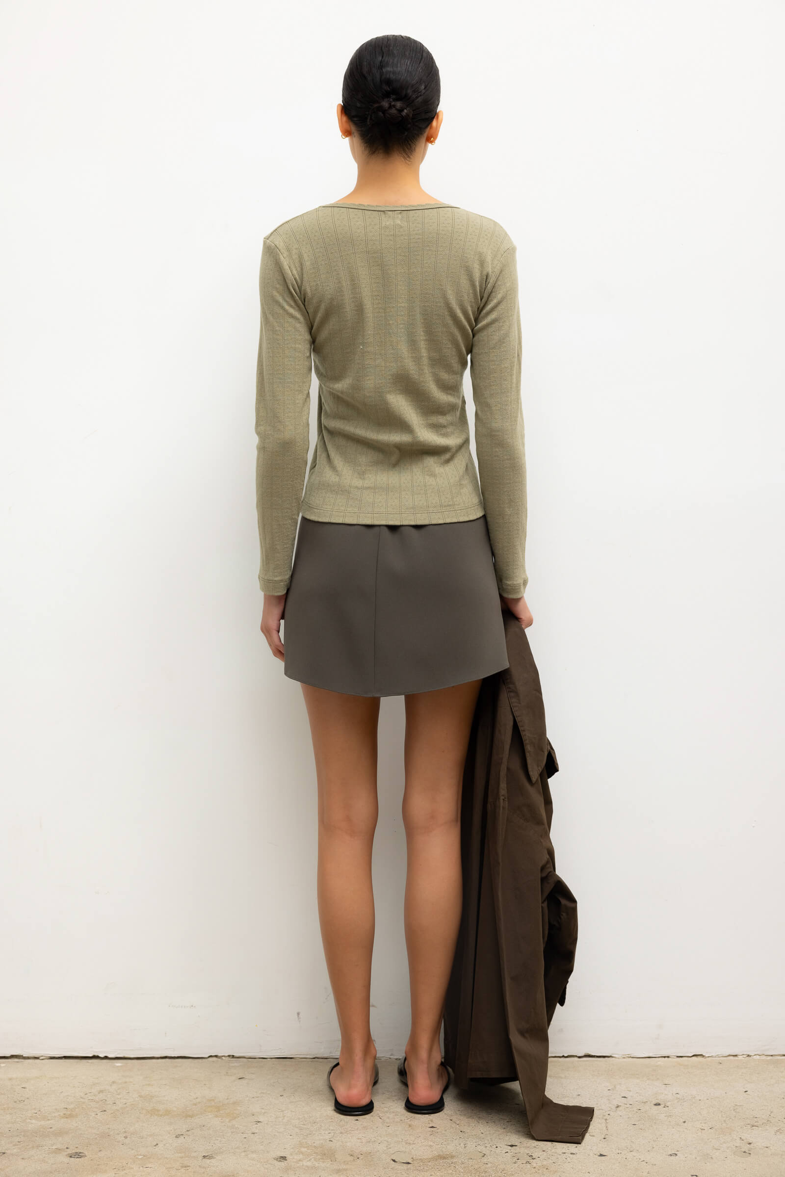 Cut in our nostalgic Pointelle Cotton, The Pointelle Slim Fit Long Sleeve features a classic crew neckline and fitted long sleeves with our signature pinhole stripes, dainty eyelets, and scalloped edging. Now in limited edition Cypress.