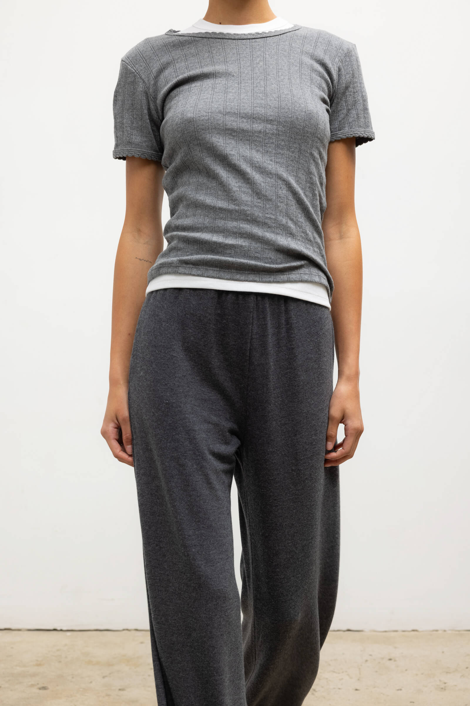 Cut in our nostalgic Pointelle Cotton, The Pointelle Slim Fit Tee features a classic crew neckline and fitted short sleeves with our signature pinhole stripes, dainty eyelets, and scalloped edging.