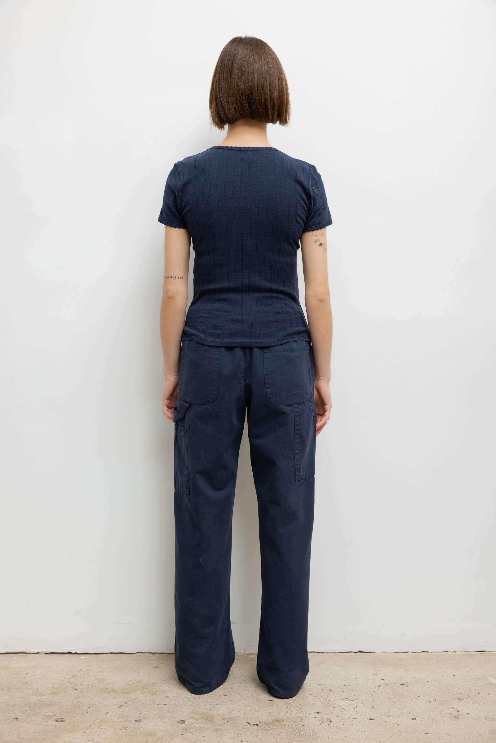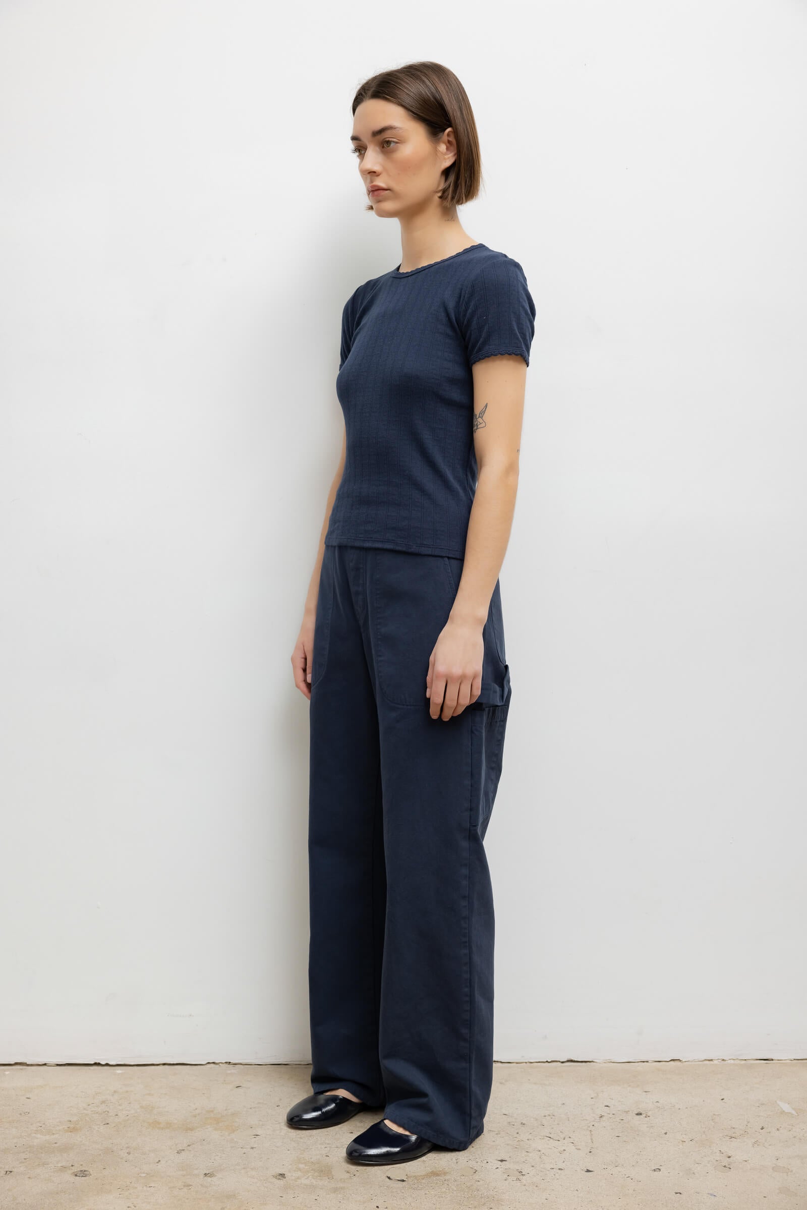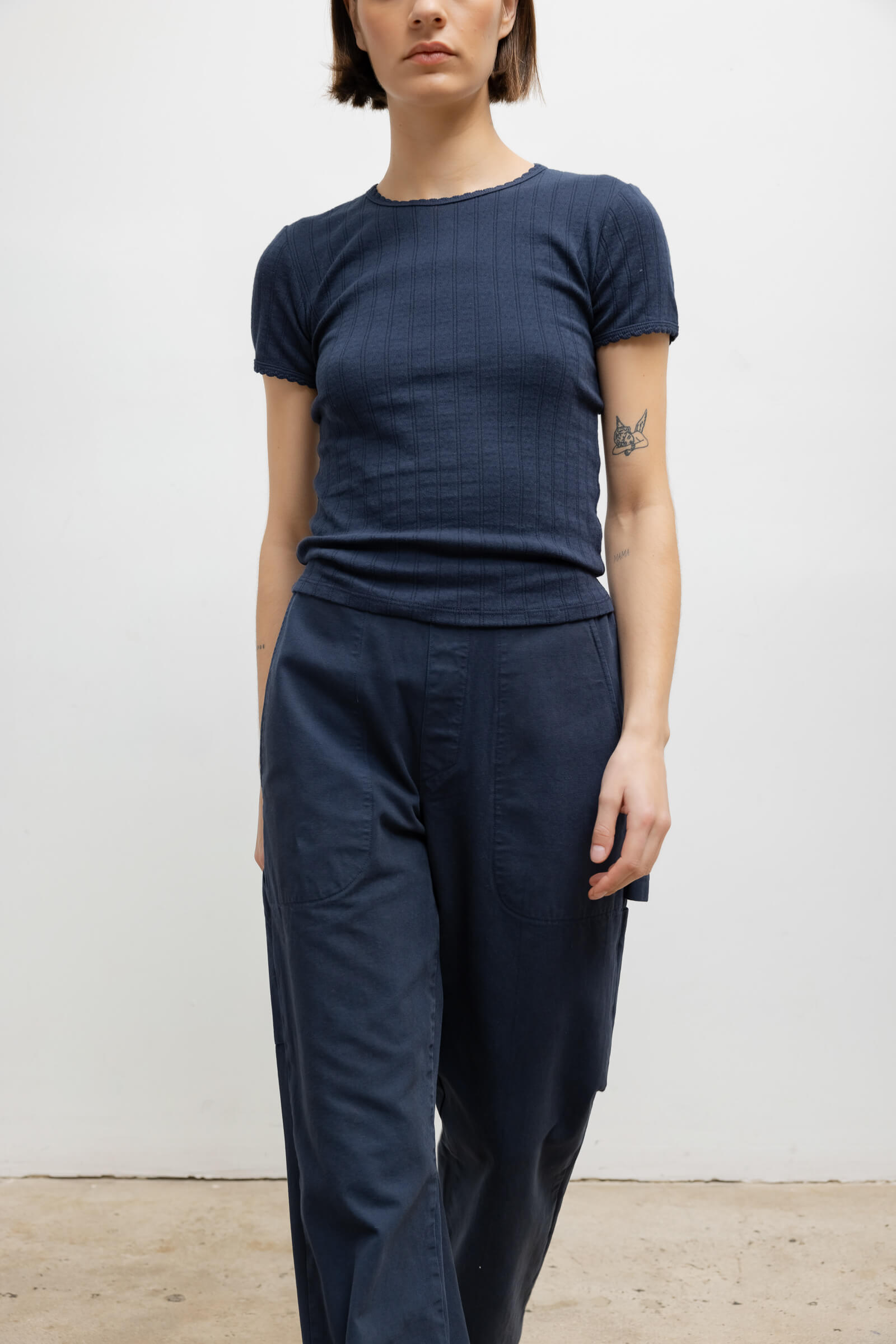 Cut in our nostalgic Pointelle Cotton, The Pointelle Slim Fit Tee features a classic crew neckline with our signature pinhole stripes, dainty eyelets, and scalloped edging.