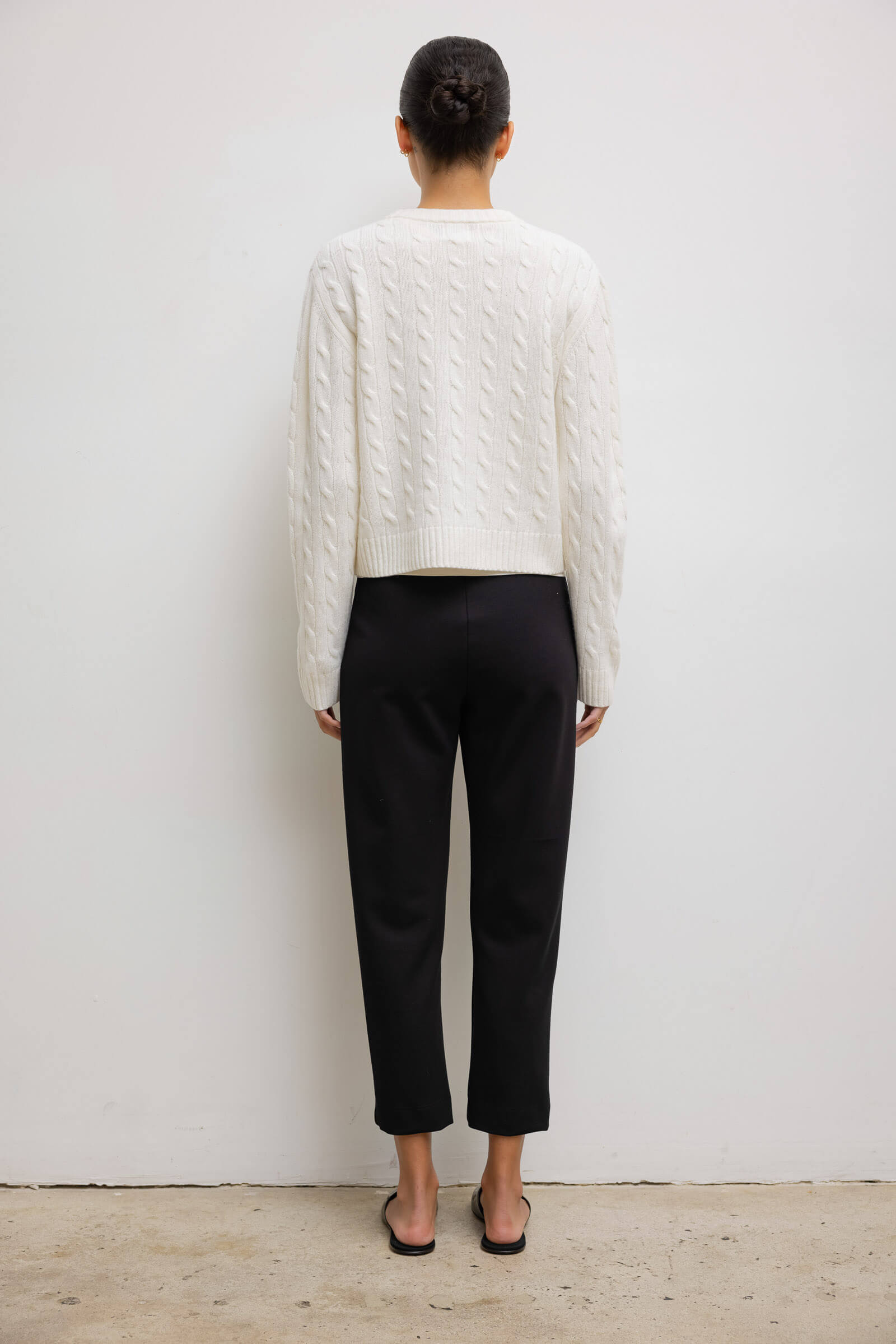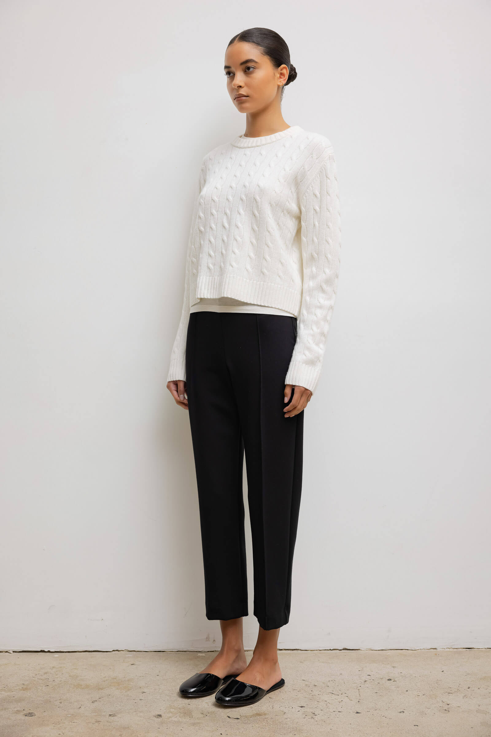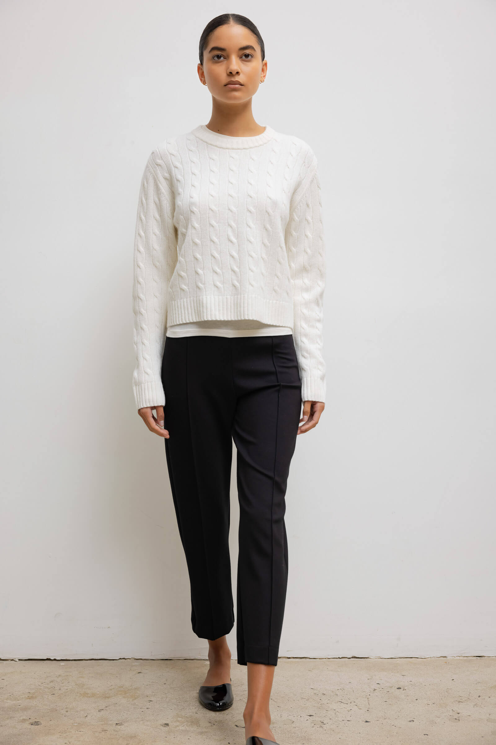 Cut in our figure-cinching Rio Stretch Ponte, The Rio Cigarette Pant combines smart tailoring and wearable comfort. This pull-on style trouser features a soft elastic waistband, subtle front pleats, and a slightly cropped length.