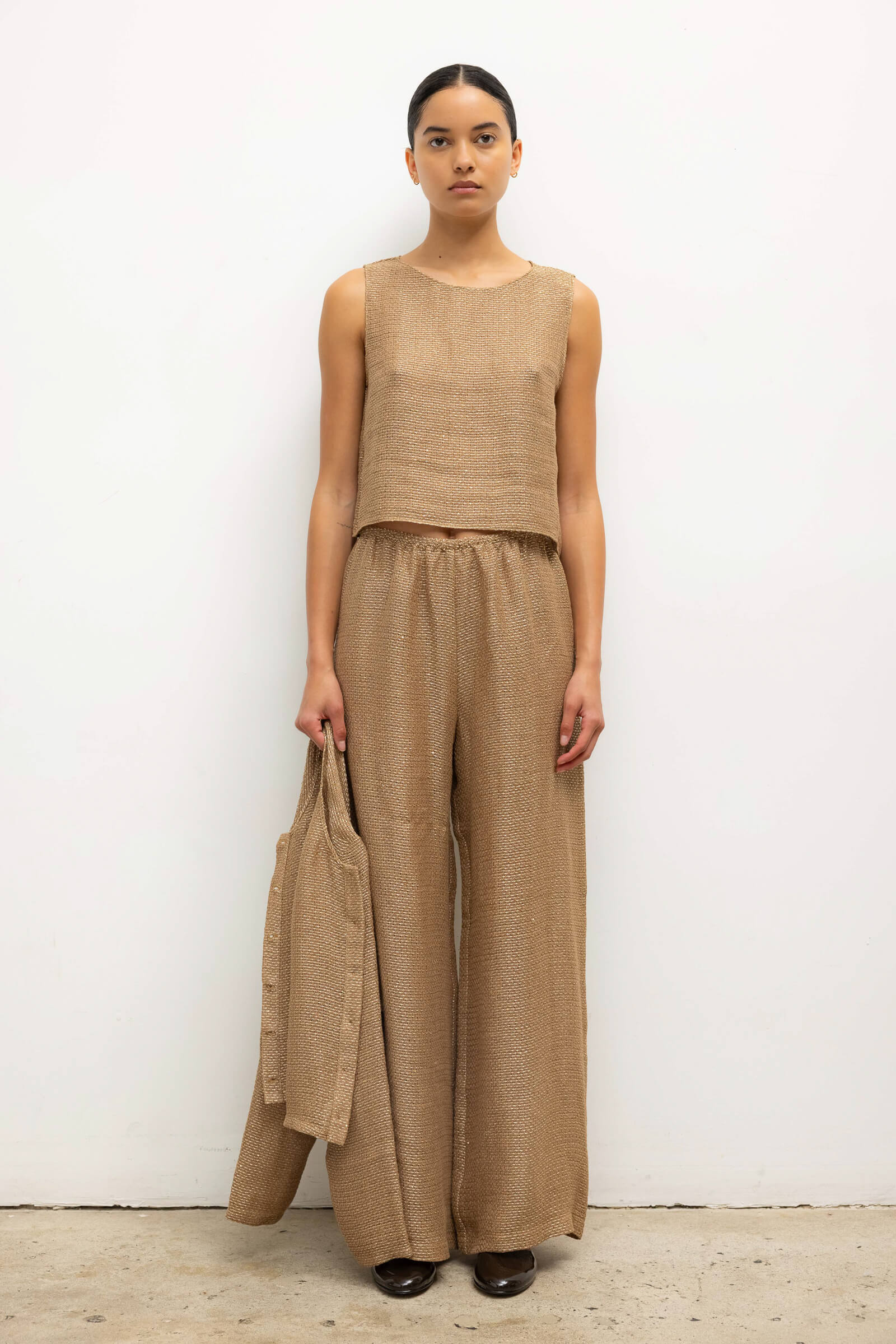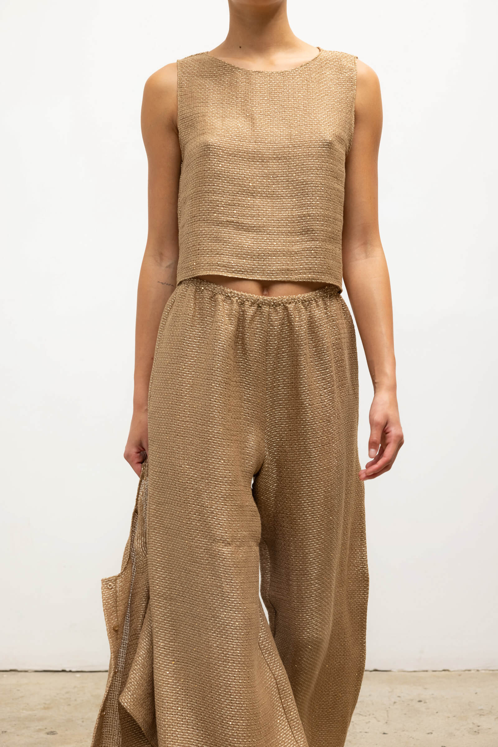 Cut in our subtly sequined Stella Linen, the Stella Crop Sleeveless Crew is a classic shell silhouette cropped at just the right length. Make it a twin set with The Stella Crew Cardigan.