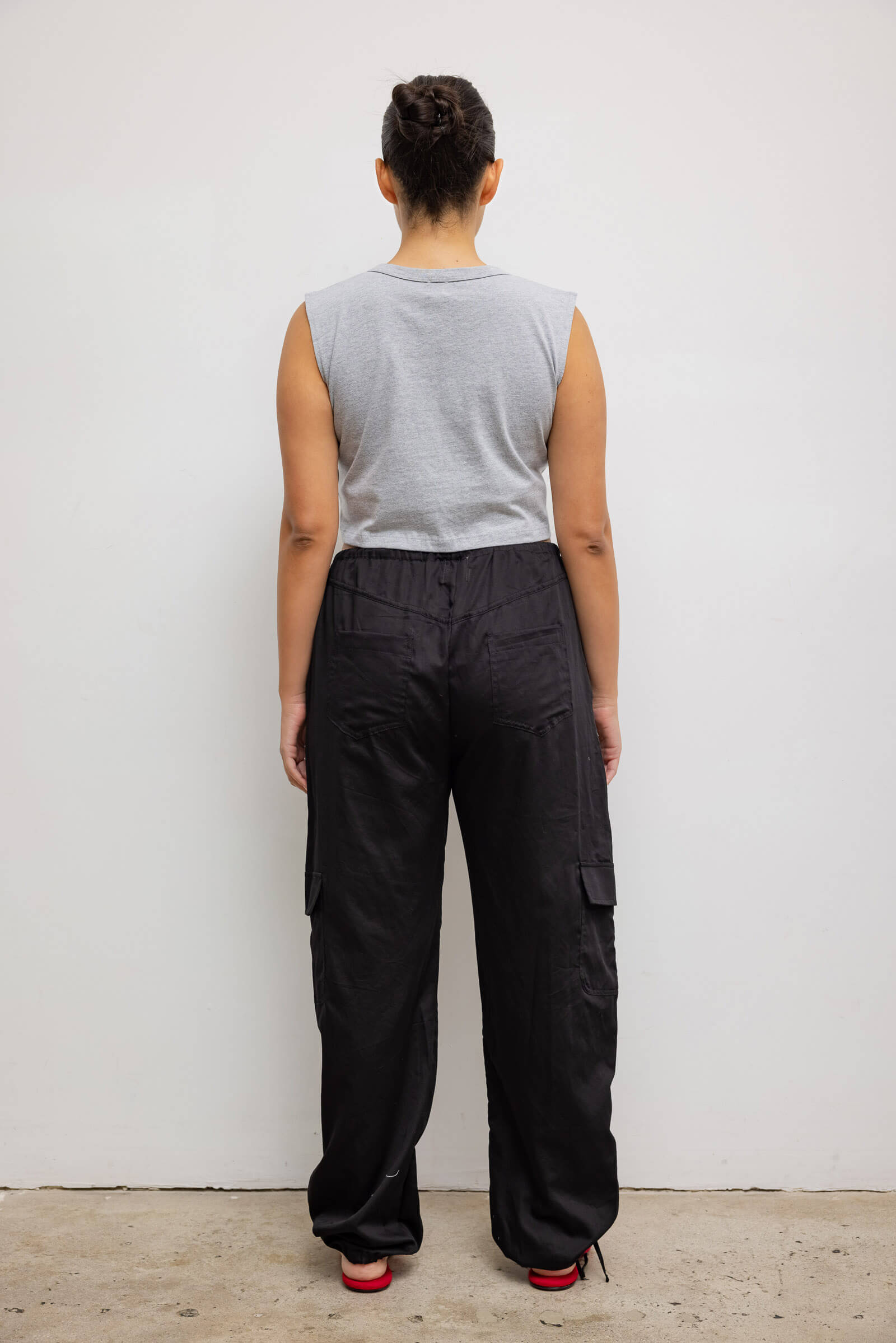 Crafted in our lightweight, crisp cotton, The Yoko Cargo Pant is the ultimate off-duty silhouette. Features adjustable drawstring waistband and cuffs, side and patch pockets.