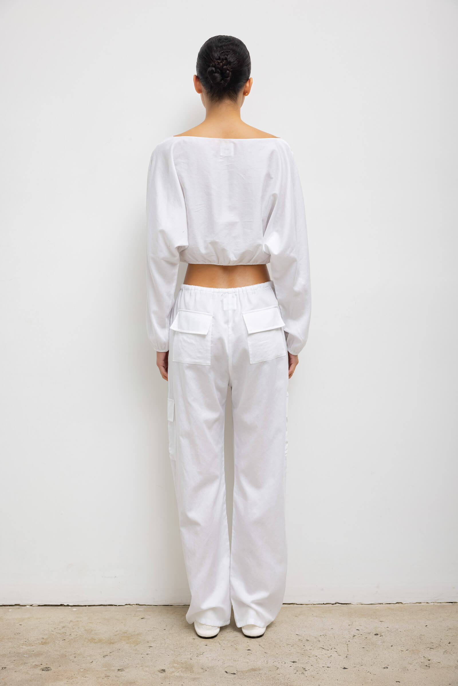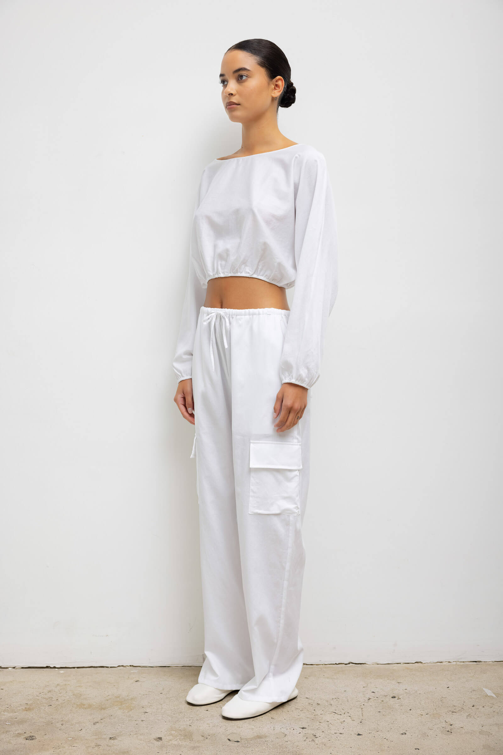 Cut in our bed sheet feel Yoko Cotton, The Yoko Drawstring Pant is a classic off-duty silhouette featuring an adjustable drawstring waist, patch side pockets, and a straight leg. Make it a matching set with The Yoko Long Sleeve Blouson Top.