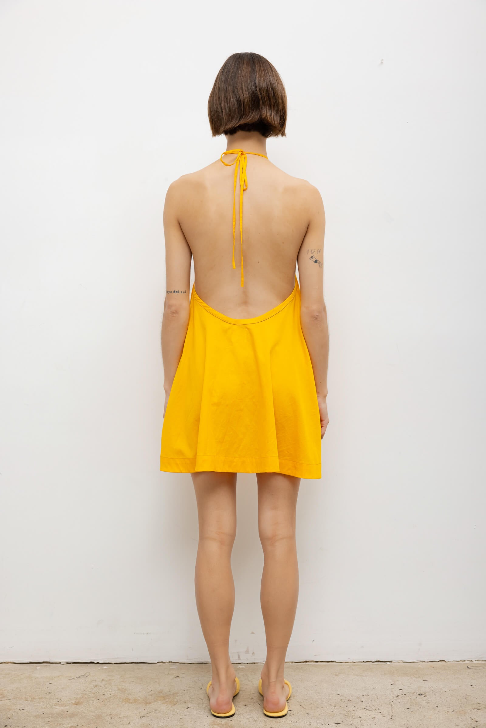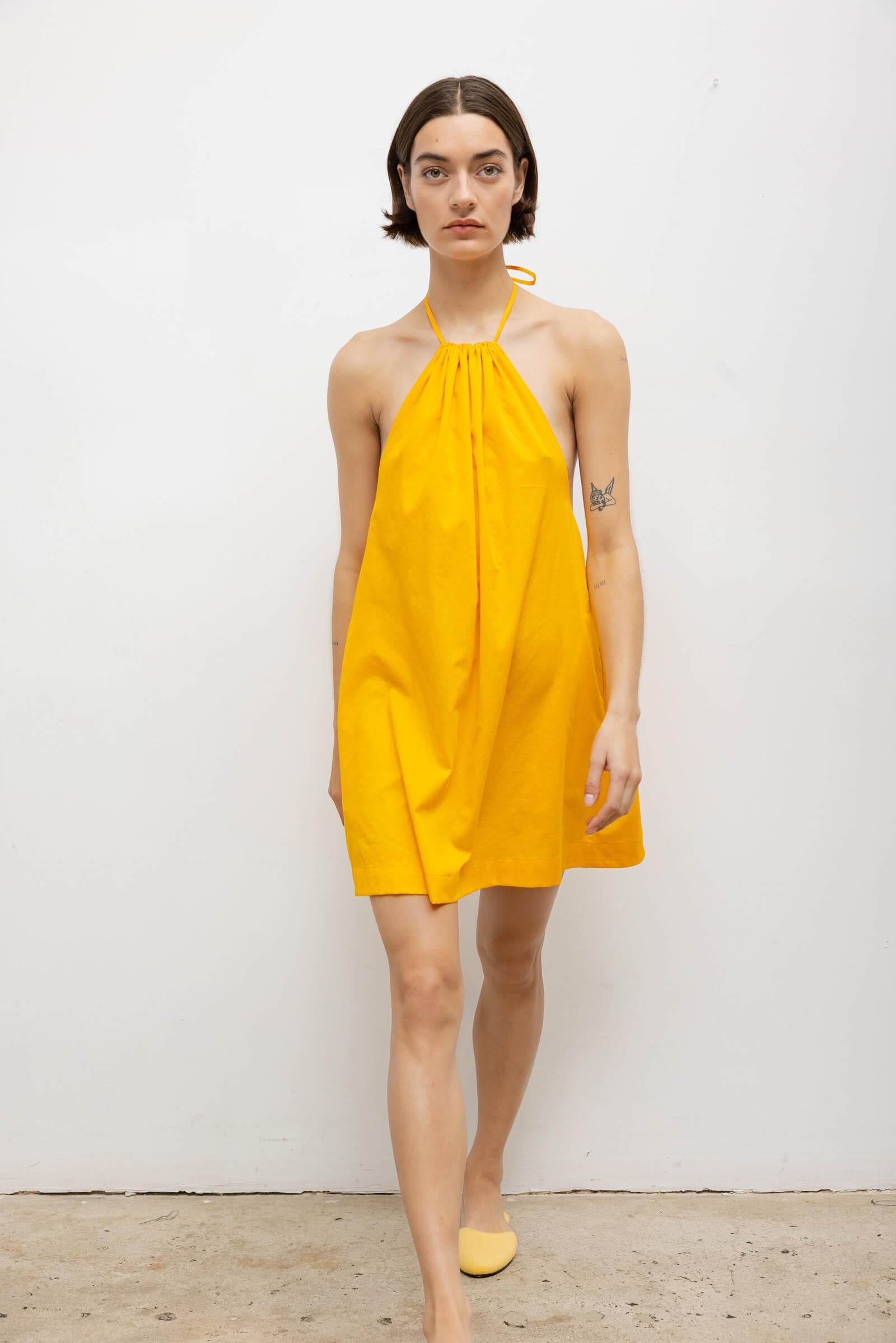 Cut in our bed sheet feel Yoko Cotton, The Yoko Halter Mini Dress features an adjustable, gathered halter neckline, low back, and a swinging mini length.