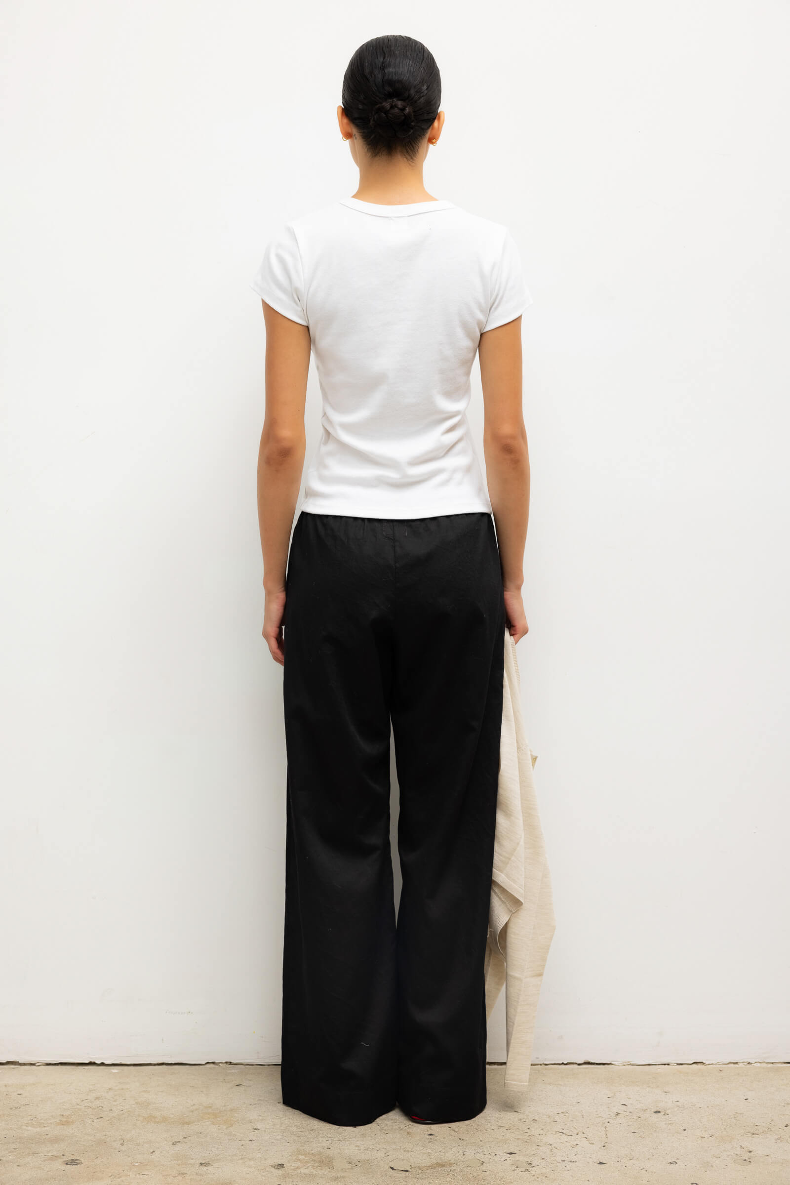 Cut in our bed sheet feel Yoko Cotton, The Yoko Pocket Pant is a pull-on style pant, featuring a relaxed leg silhouette and side slit pockets. Make it a matching set with any Yoko top. As seen on Kendall Jenner.