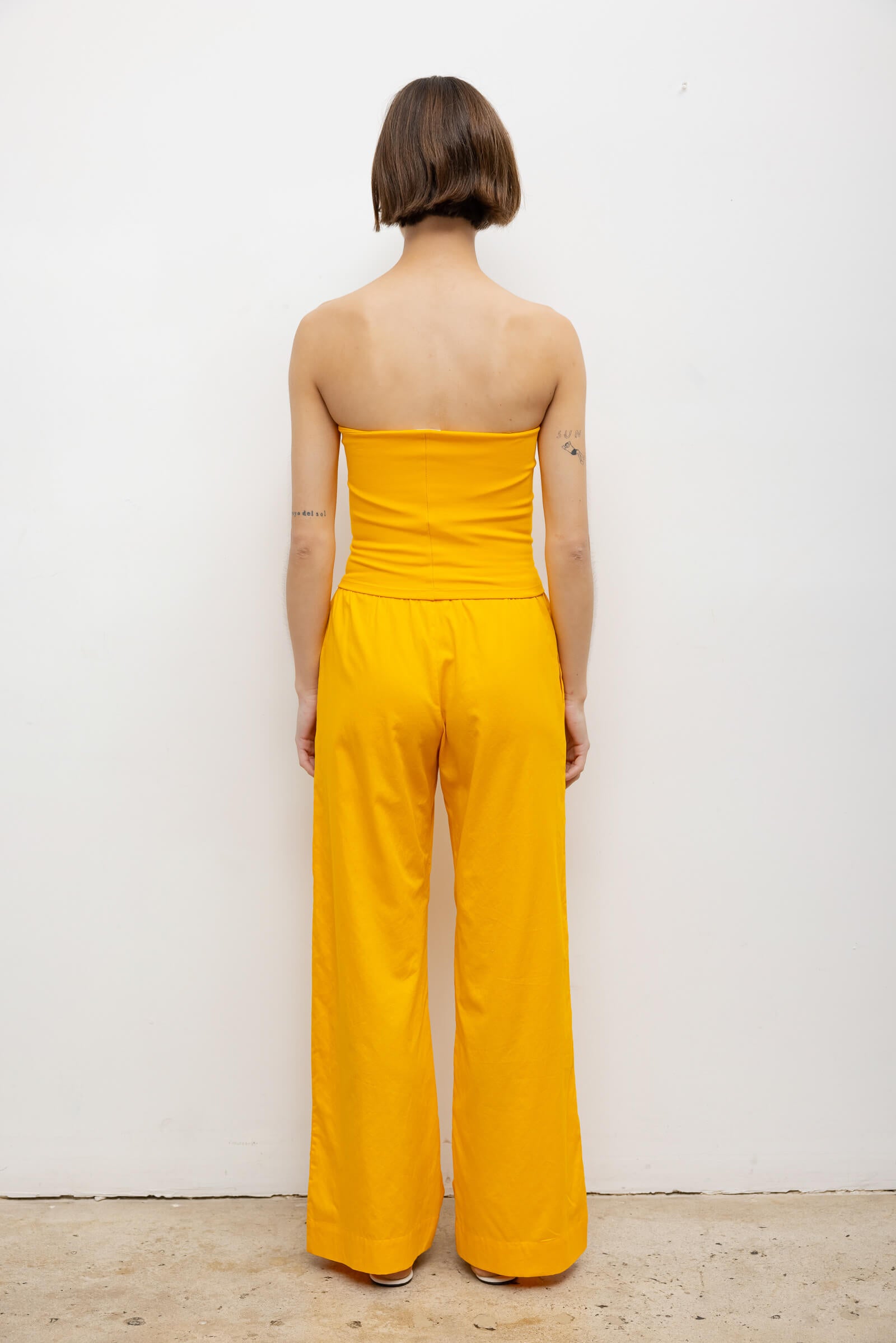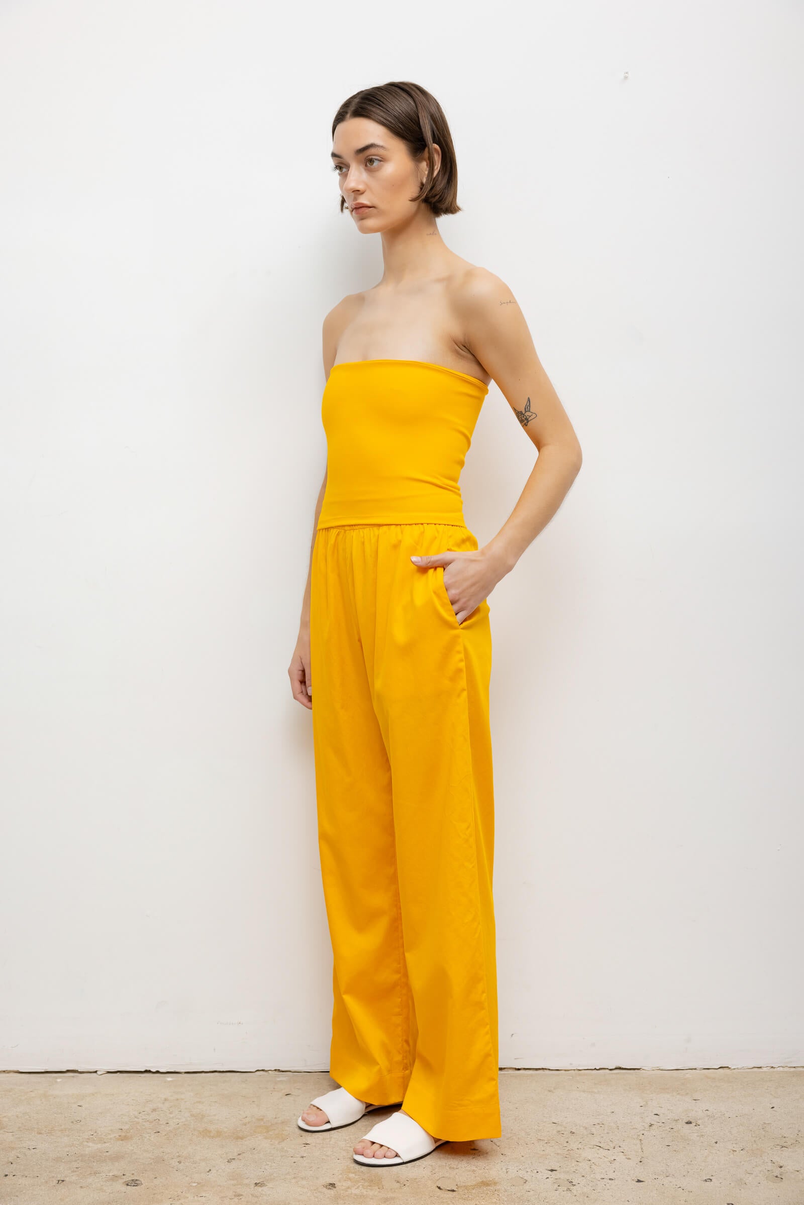 Cut in our bed sheet feel Yoko Cotton, The Yoko Pocket Pant is a pull-on style pant, featuring a relaxed leg silhouette and side slit pockets. Make it a matching set with any Yoko top. As seen on Kendall Jenner.