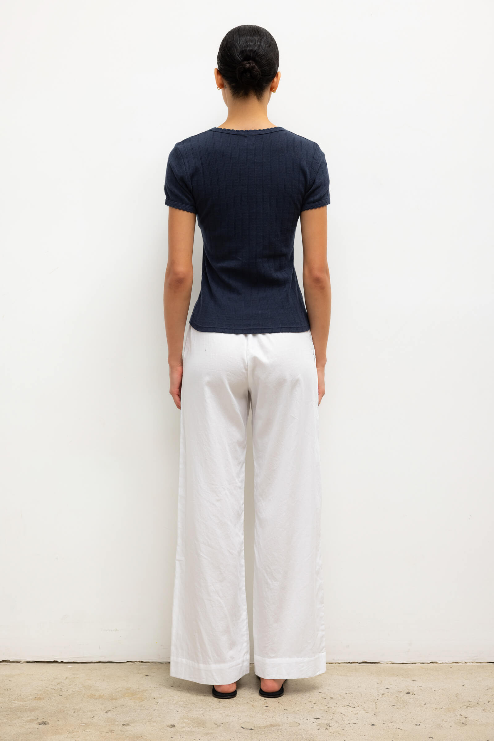 Cut in our bed sheet feel Yoko Cotton, The Yoko Pocket Pant is a pull-on style pant, featuring a relaxed leg silhouette and side slit pockets. Make it a matching set with any Yoko top. As seen on Kendall Jenner.