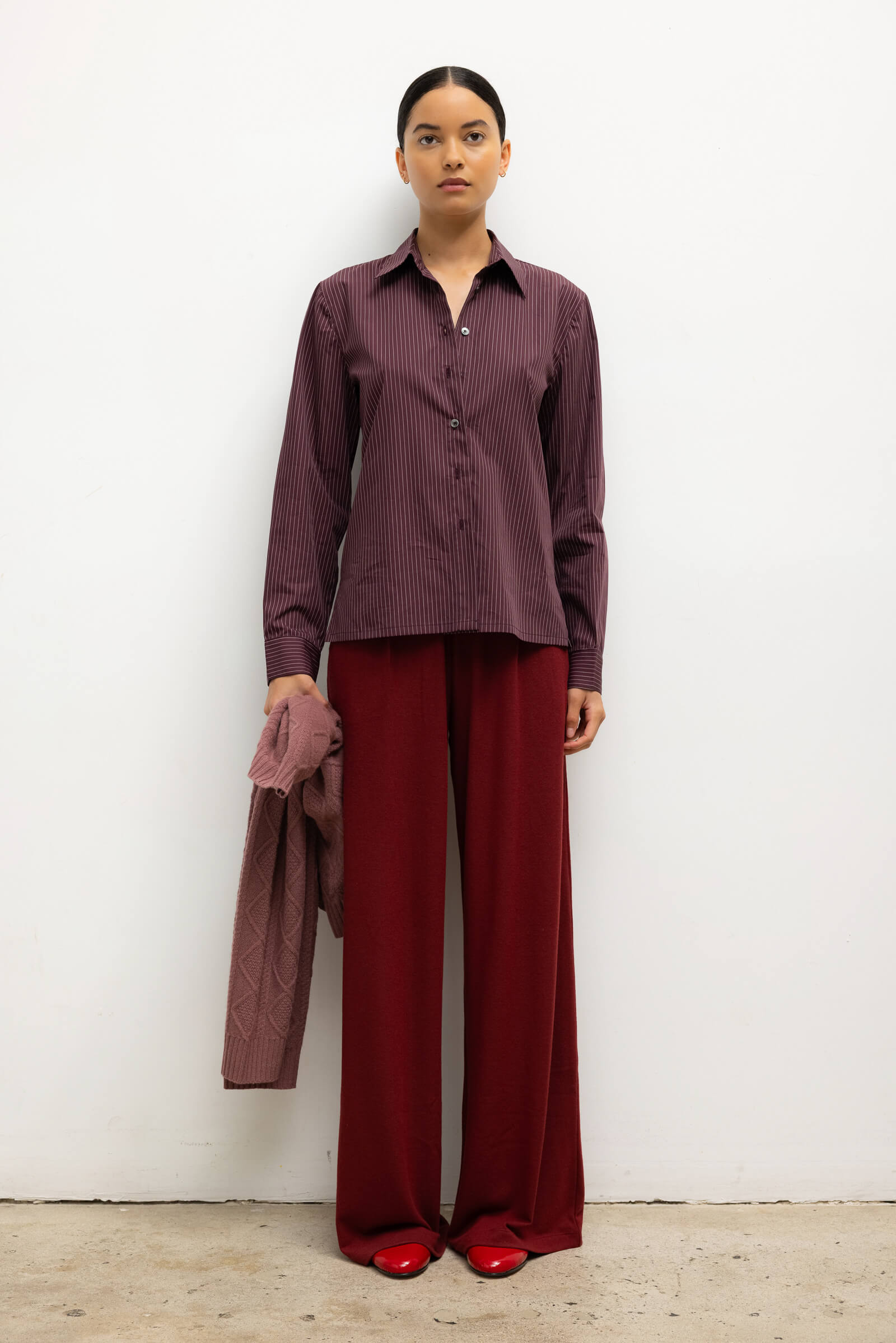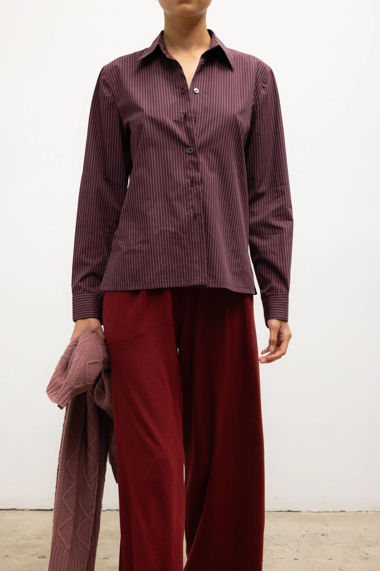 Cut in our Yoshi Cotton Twill, The Yoshi Slim Fit Button Down features a classic pointed collar, close fitting silhouette, and a button front closure. Make it a matching set with The Yoshi Stripe Classic Tie Pant or layered over sleeveless turtlenecks for added warmth this season.