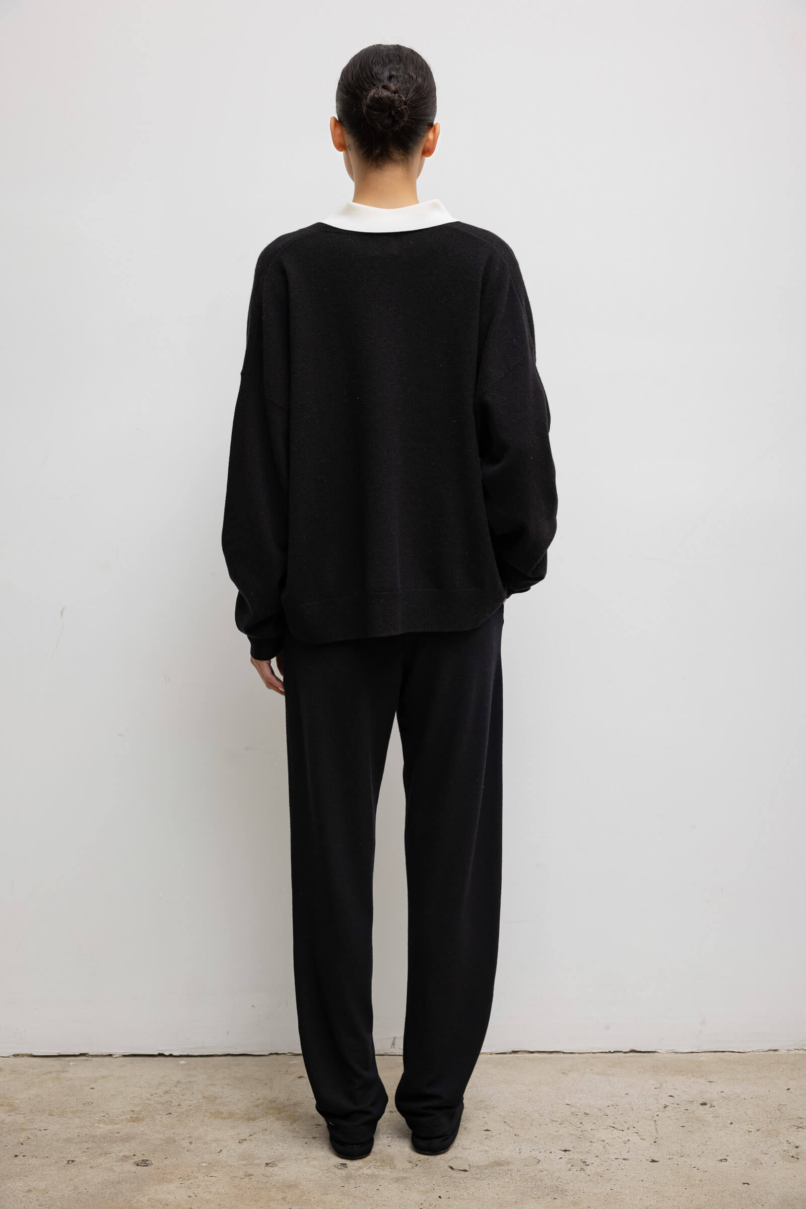 Knit in our plush Zoe Wool/Cashmere Knit, The Zoe V Neck is this season’s perfect knit layer. Featuring a clean V neckline, slightly dropped shoulders, and full length sleeves. We’re wearing this over our favorite Margo Tee and lighter knits, like The James.