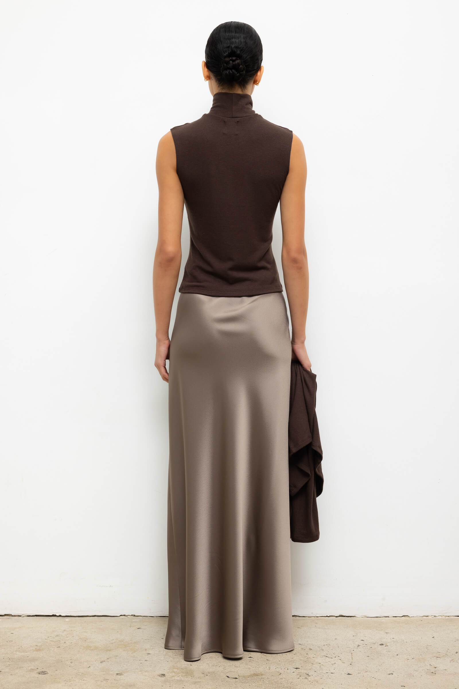 A foundation staple. Cut in our buttery soft brushed sweater jersey, The Lauren Sleeveless Turtleneck features a slightly fitted silhouette and a flexibly styled turtleneck. We're styling this underneath weightier knits, like The Zoe and Jesse - and as a matching set, of course, with the Lauren bottoms in Chocolate.